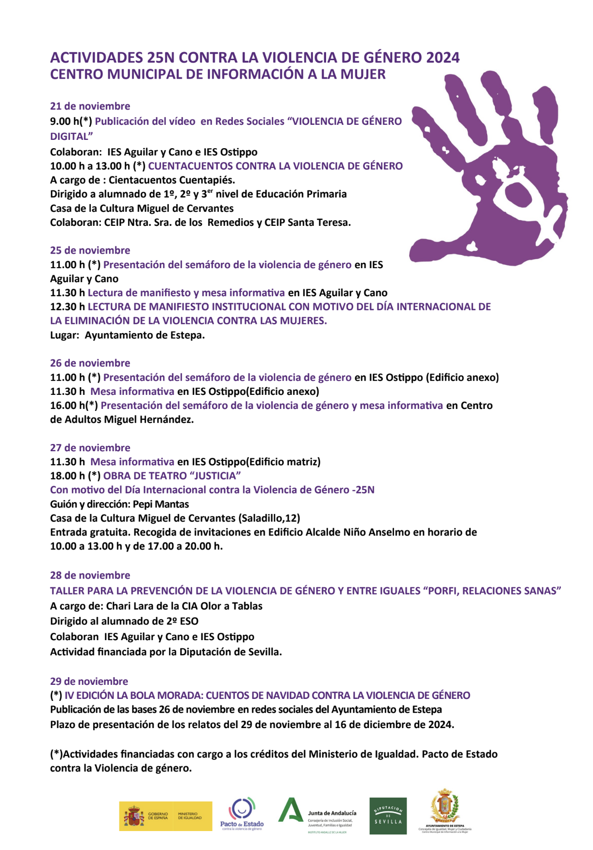 (*)Actividades financiadas con cargo a los créditos del Ministerio de Igualdad. Pacto de Estado