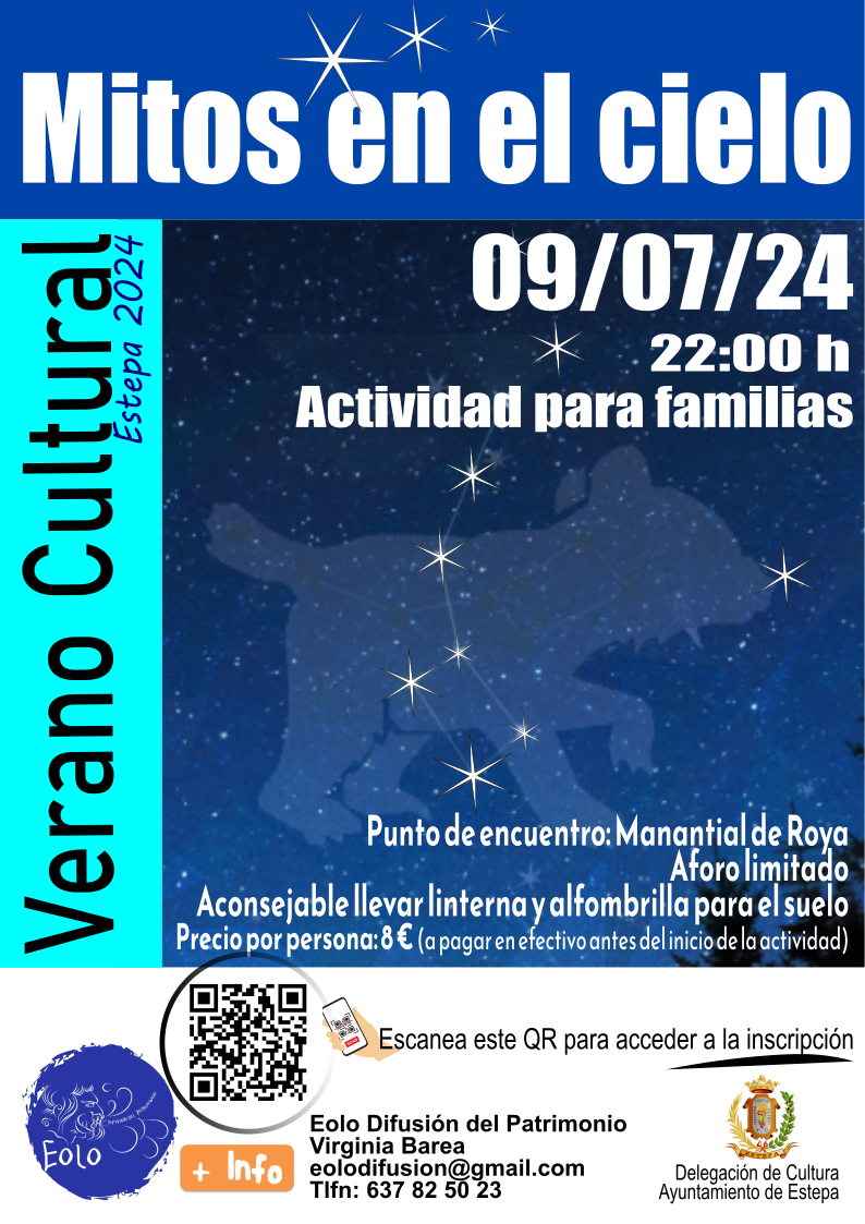 Rodeados del entorno natural de Roya y la sierra de Estepa, nos centraremos en la MITOLOGÍA, identificando las principales constelaciones propias del cielo de verano.
