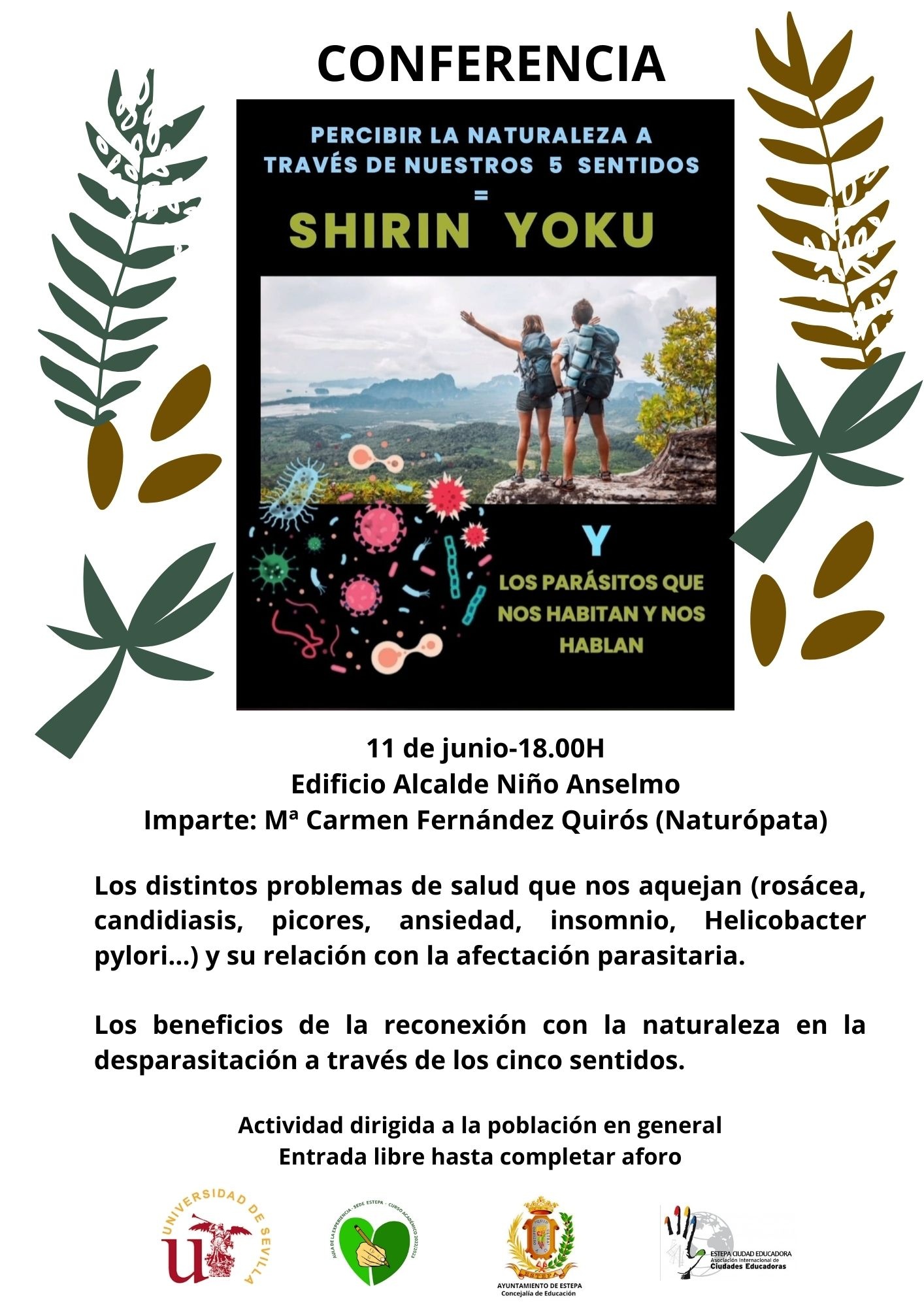 El próximo martes 11 de junio, tendrá lugar a las 18.00 horas en el Edificio Alcalde Niño Anselmo la conferencia SHIRIN YOKU Y LOS PARÁSITOS QUE NOS HABITAN Y HABLAN.