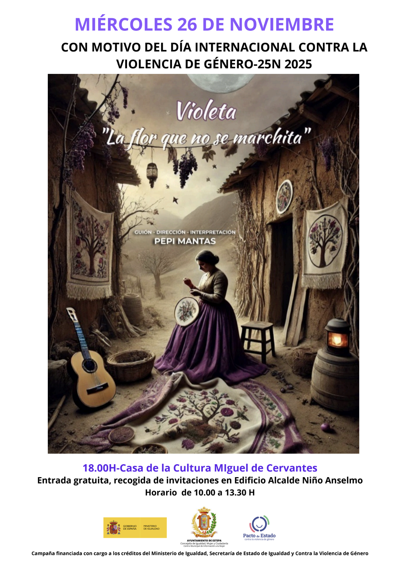 El próximo miércoles 26 de noviembre tendrá lugar la representación teatral de la obra VIOLETA "La flor que no se marchita".