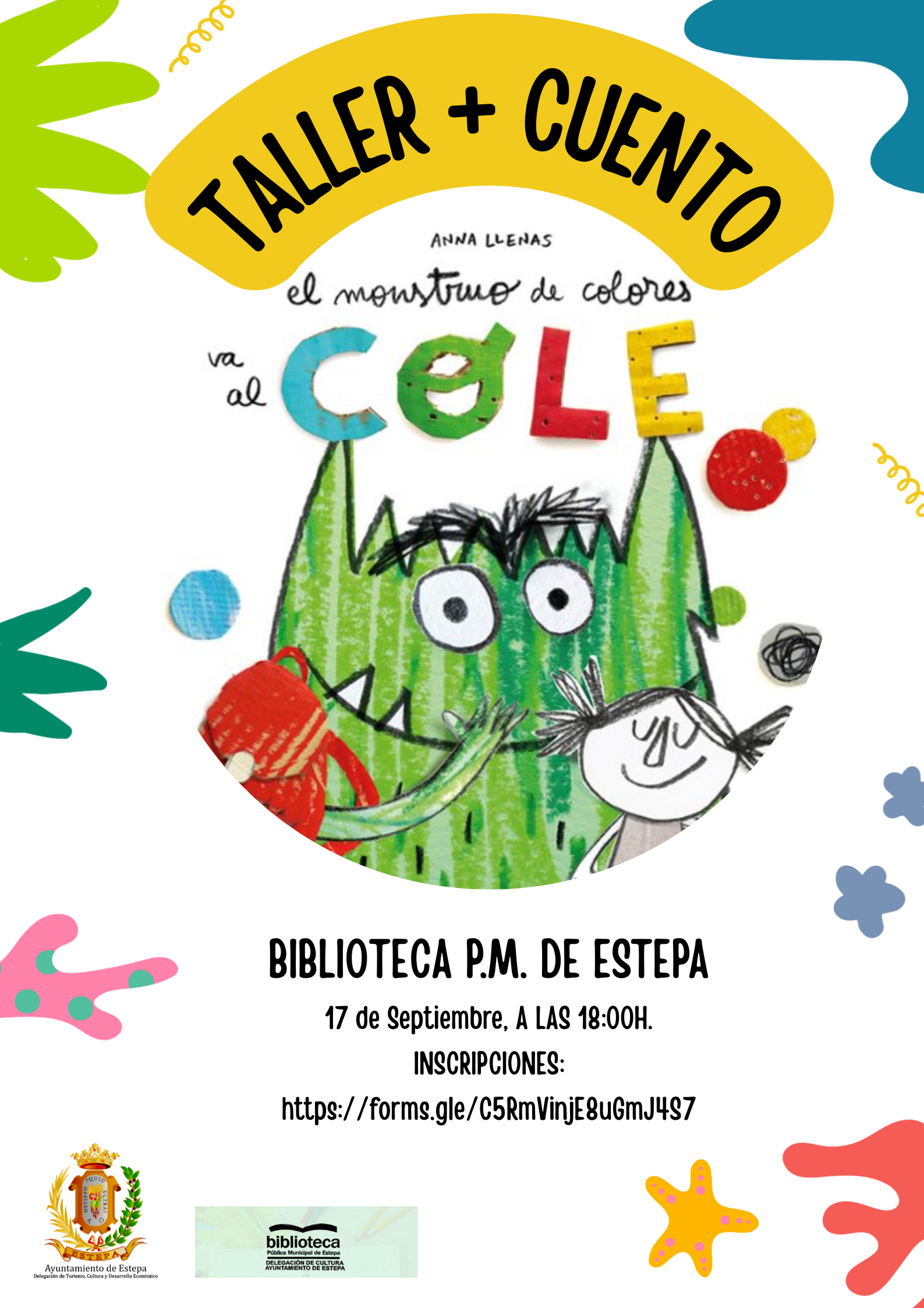 Desde la Delegación de Cultura y Biblioteca de Estepa, después de las vacaciones de verano, comenzamos con actividades de animación a la lectura infantil, en esta ocasión contaremos el cuento “El Monstruo de Colores va al Cole”, de Anna Llenas, Editorial Flamboyant, una historia donde los más pequeños/as aprenderán muchas de las actividades que se realizan en el colegio y lo divertido que es conocer nuevos compañeros/as de clase.