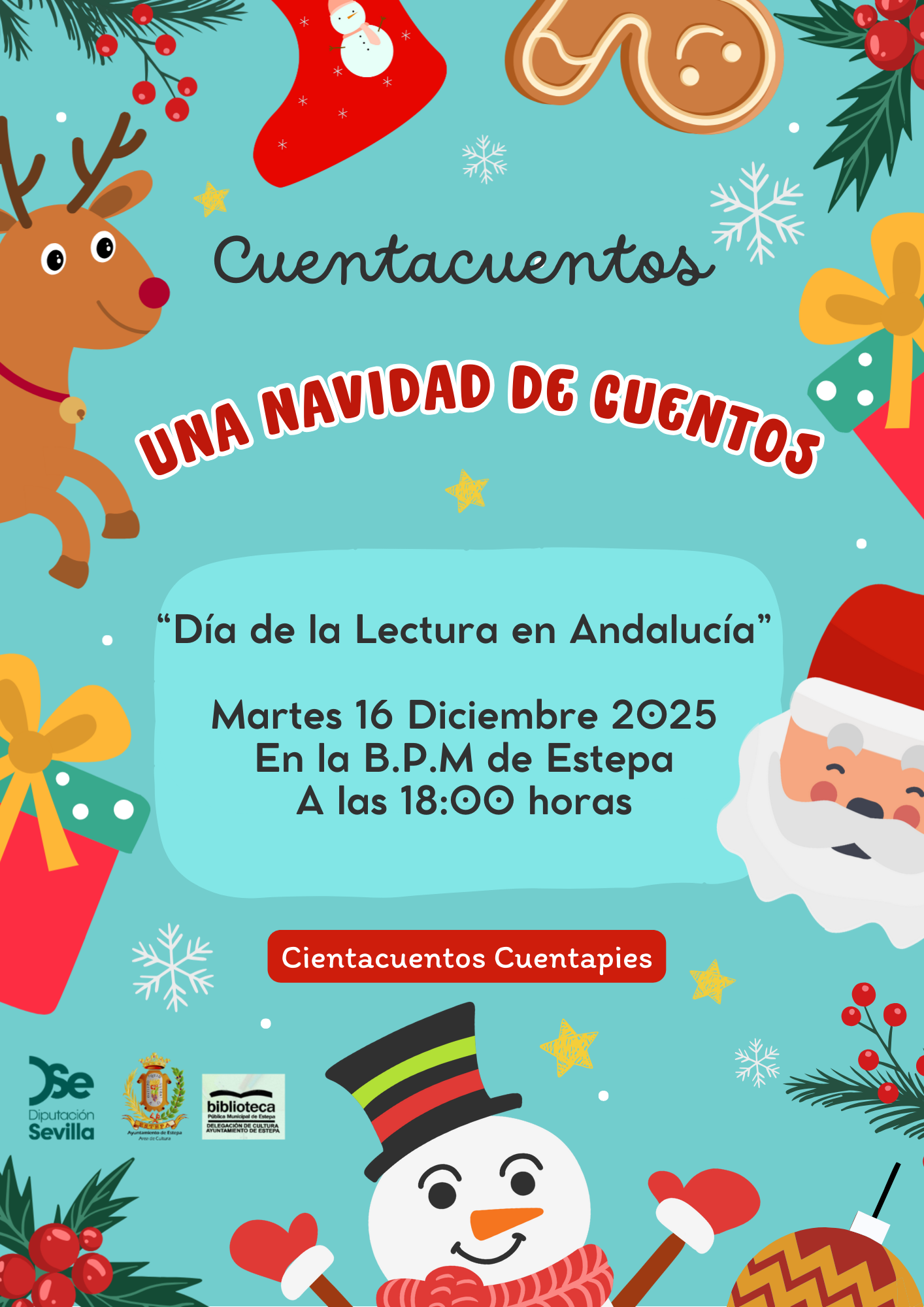 Desde la Delegación de Cultura, dentro del Programa Actividades Culturales de la Diputación de Sevilla, la Biblioteca P.M. de Estepa, ha organizado una actividad de animación a la lectura infantil a través de diferentes cuentos de Temática Navideña por el Día de la Lectura en Andalucía, denominado: