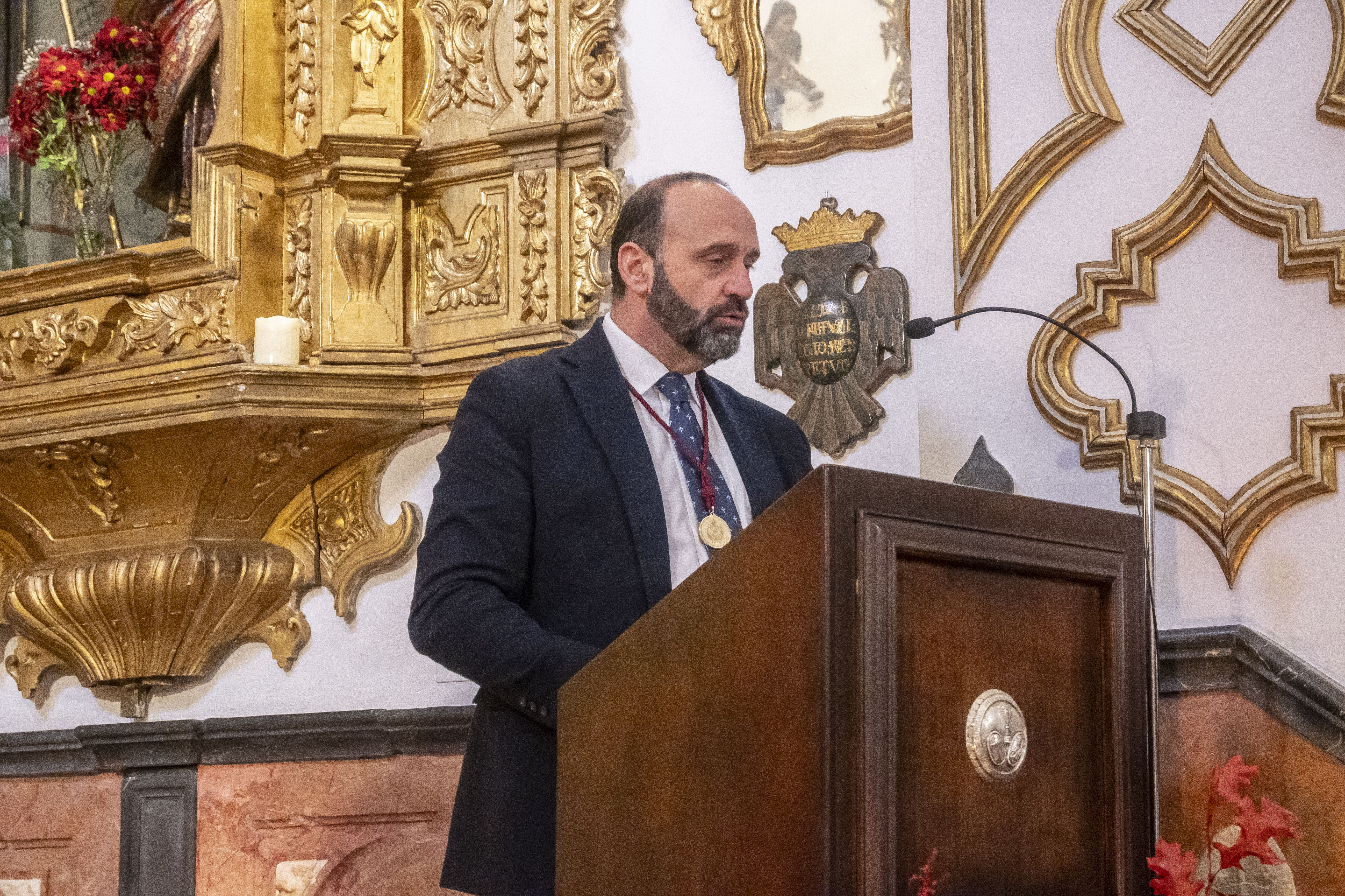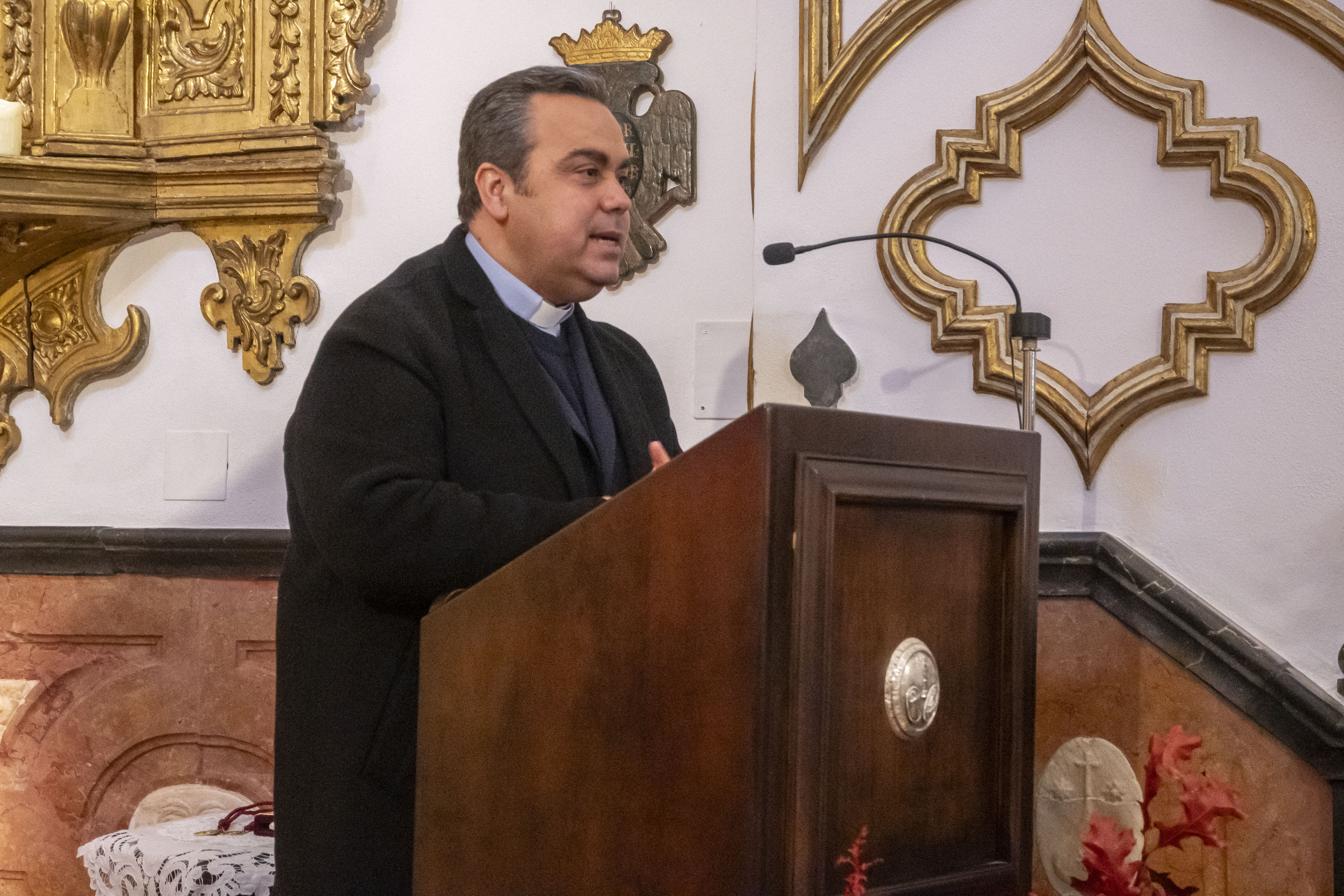 El acto ha estado presidido por el párroco de Estepa y director espiritual del Consejo, el Rvdo. Sr. Manuel Ávalos Fernández, y el alcalde de Estepa, Antonio Jesús Muñoz Quirós. En primer lugar, ha tomado la palabra el Rvdo. Sr. Manuel Ávalos Fernández, párroco de Santa María y San Sebastián, quien ha dado paso a la intervención del presidente del Consejo de Hermandades, Antonio Bustos Cabello.
