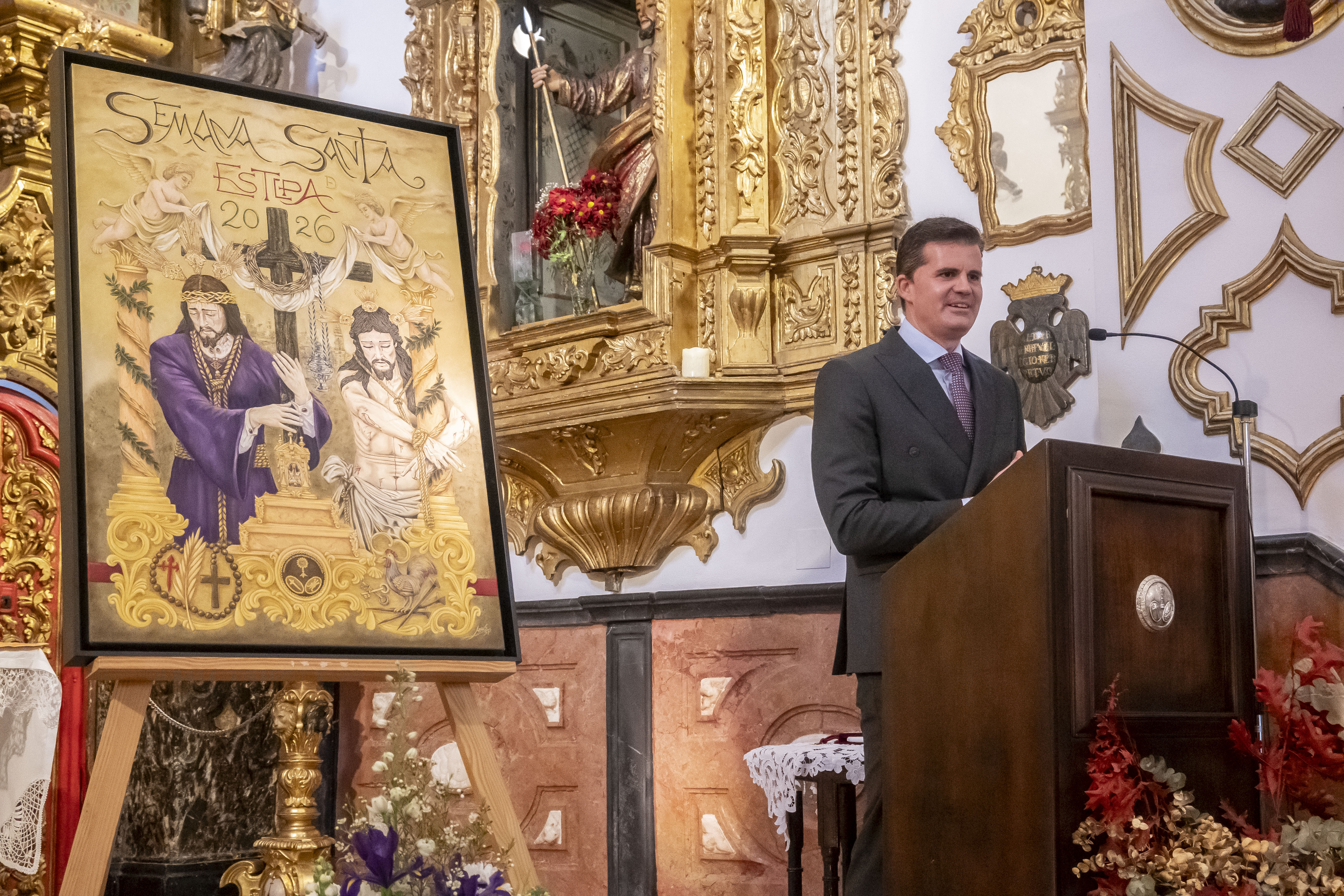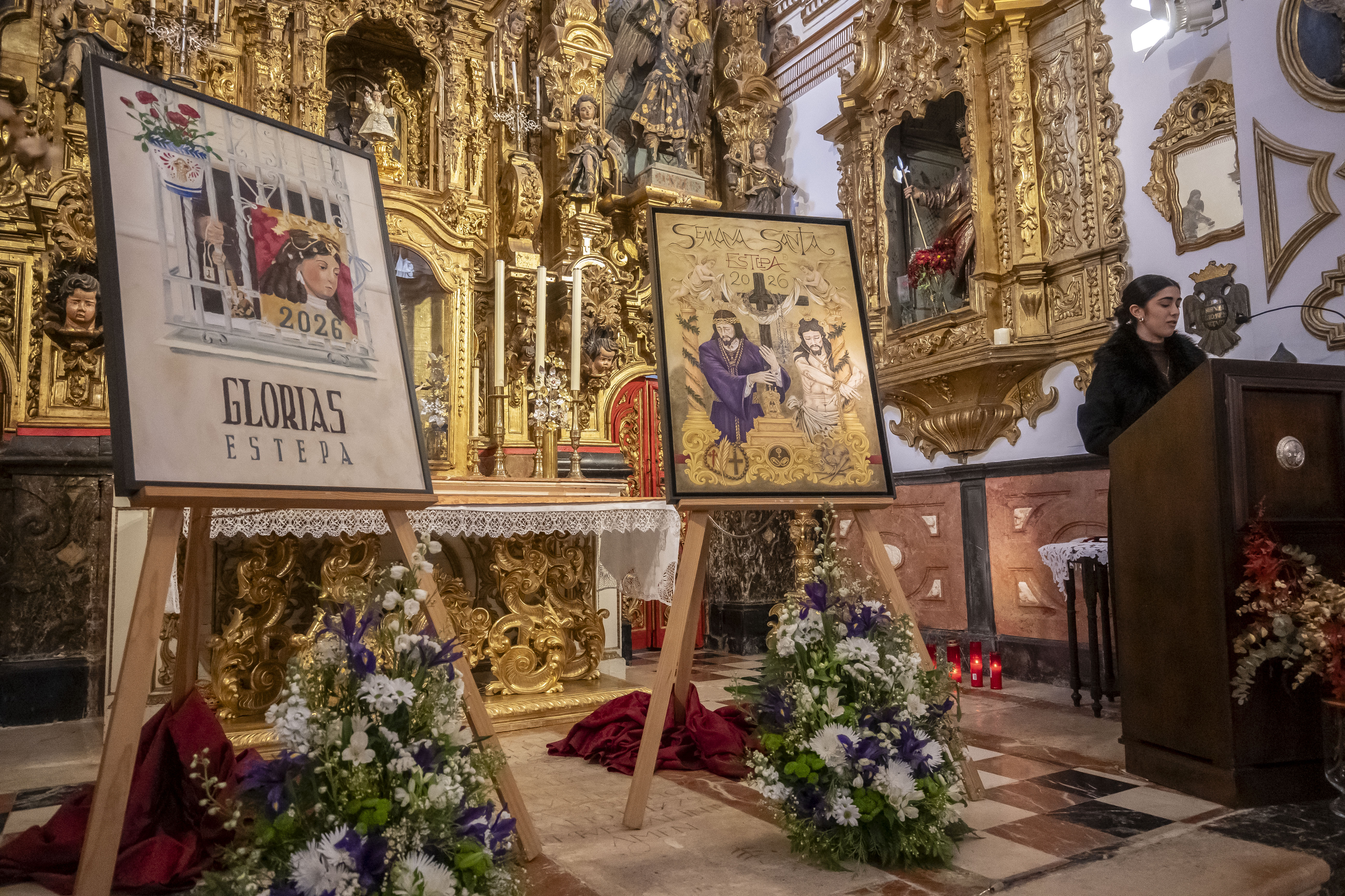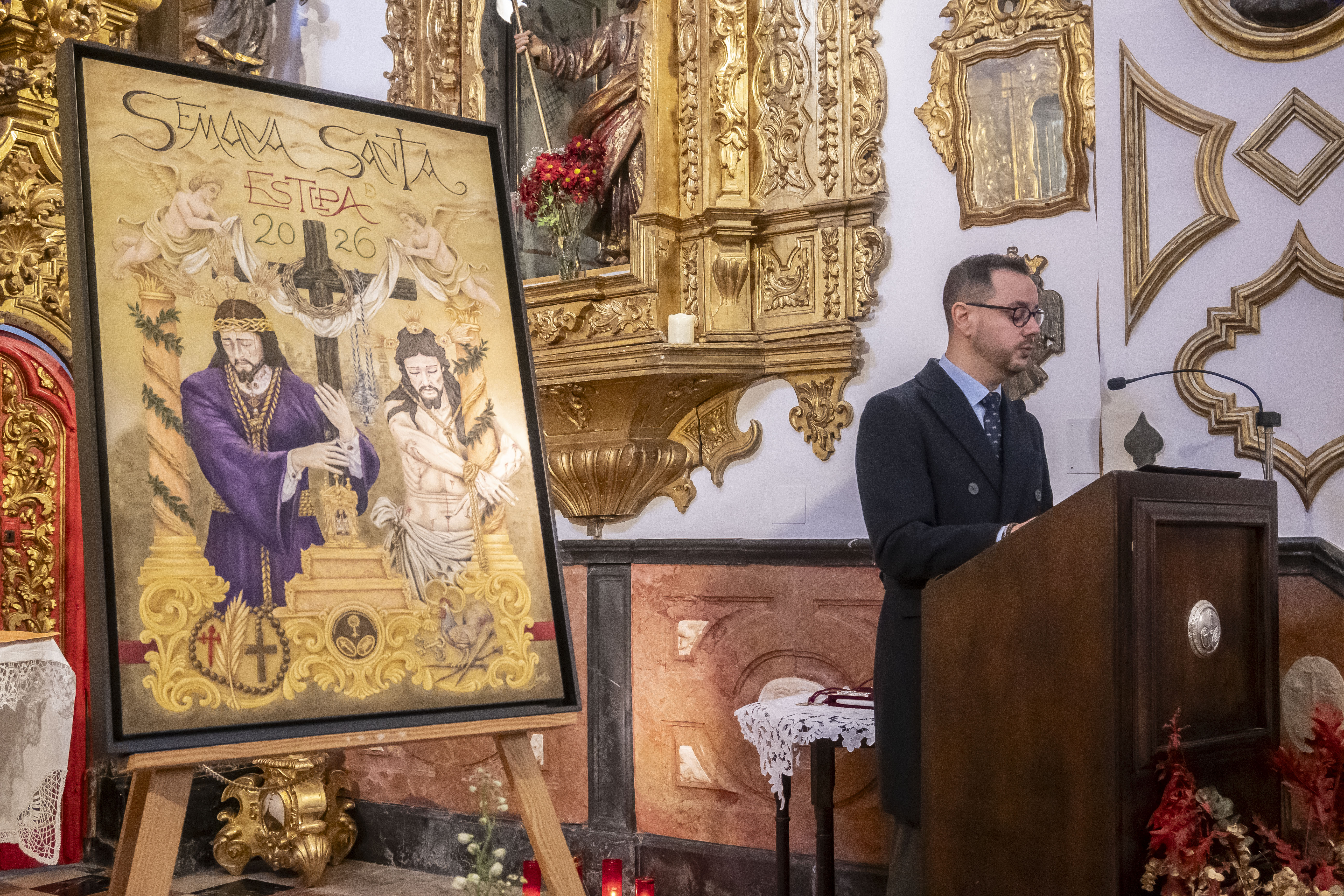 La iglesia del Carmen de Estepa ha acogido hoy el acto de presentación de los carteles anunciadores de la Semana Santa de Estepa 2026 y de Las Glorias, organizados por el Consejo General de Hermandades y Cofradías, en una cita que marca el inicio del camino hacia las principales celebraciones religiosas de la ciudad.