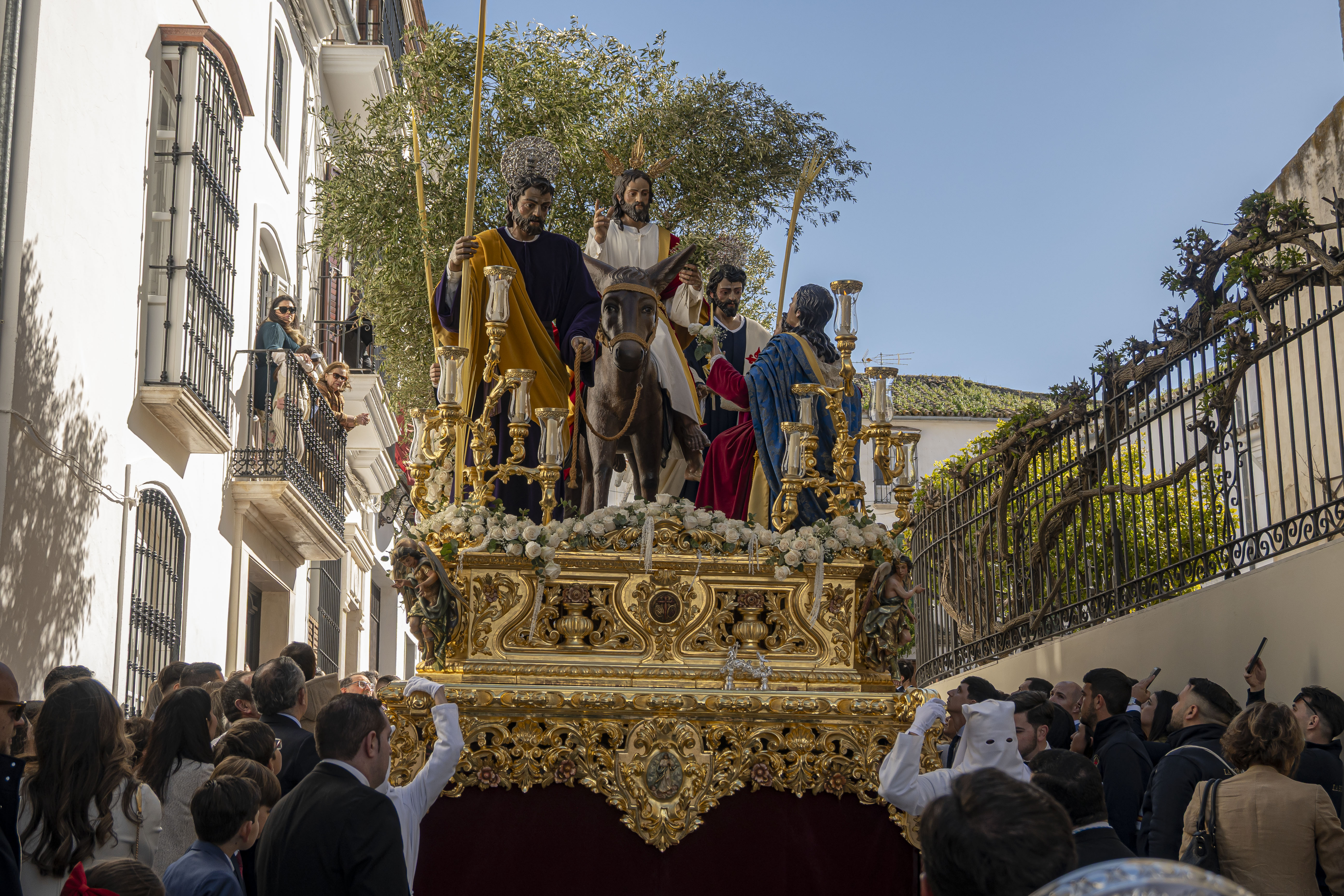 Pasos: Uno. 35 costaleros llevan el paso de La Borriquita