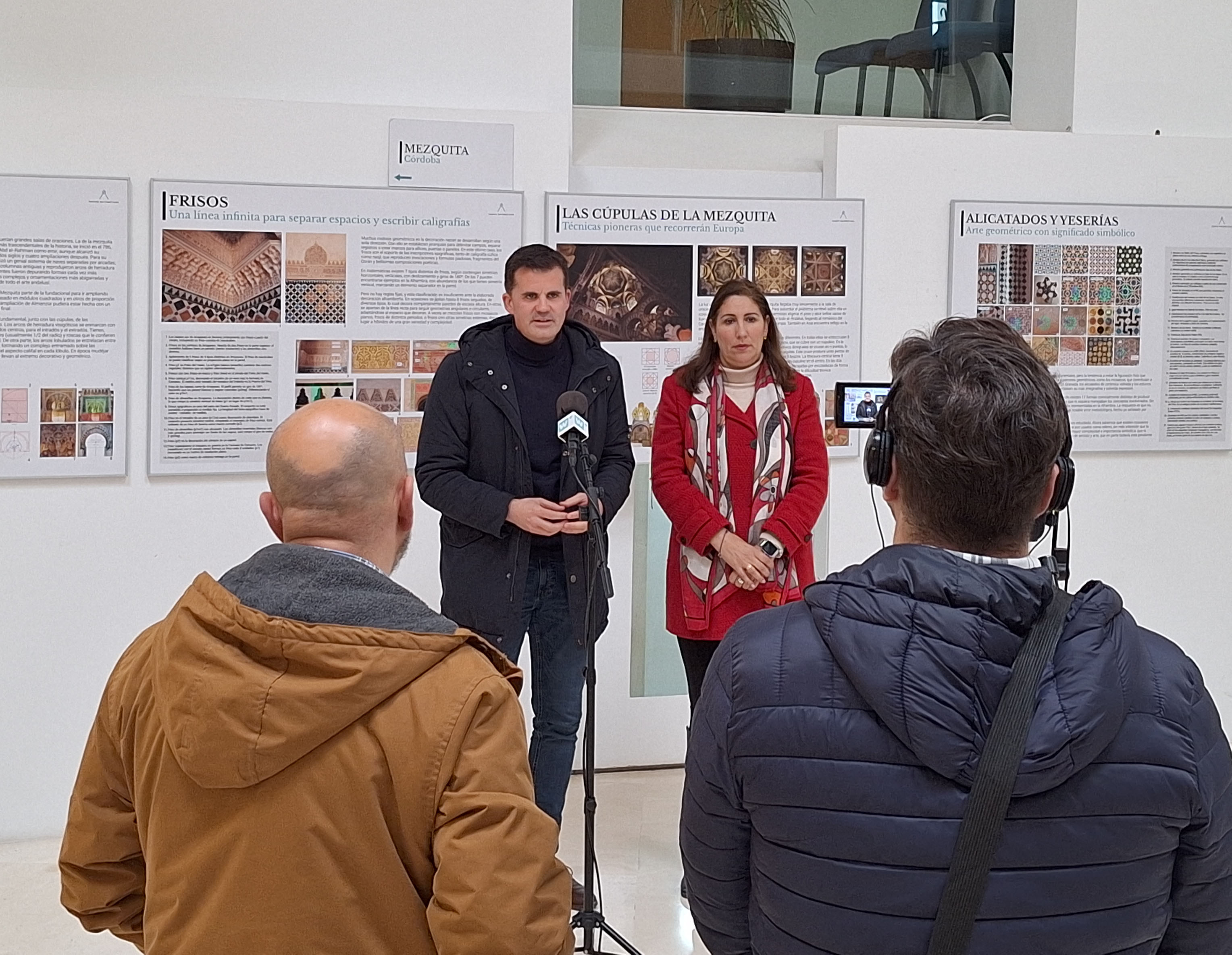 El alcalde de Estepa, Antonio Jesús Muñoz y la concejala de Cultura, Ascen Castillo inauguraron ayer la exposición "Paseo Matemático Al-Ándalus, que se podrá visitar en el hall del Ayuntamiento hasta el 30 de abril.
