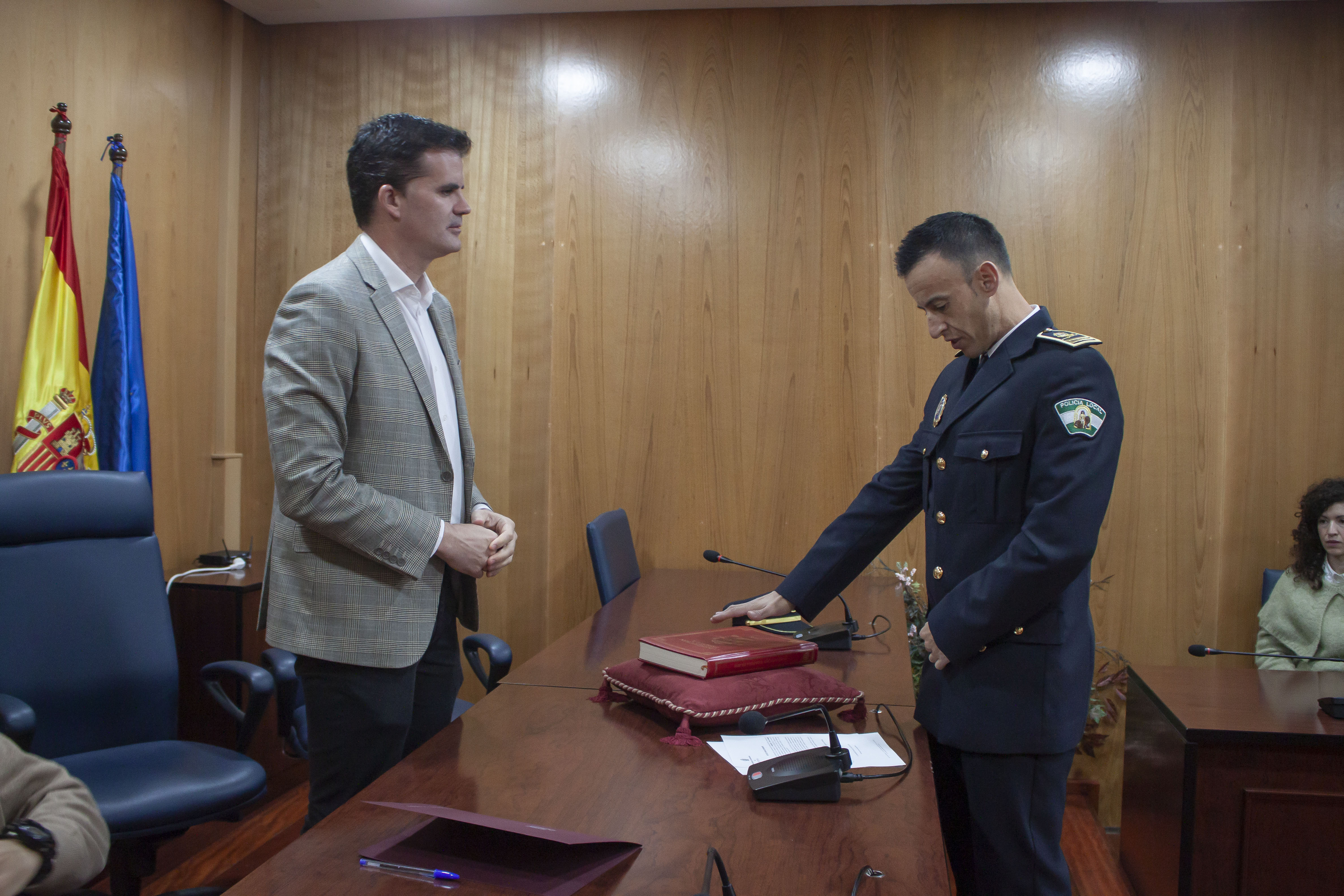 El alcalde ha dirigido una palabras al nuevo subinspector y a familiares y amigos del agente que se han dado cita en el salón de Plenos del Ayuntamiento de Estepa. El alcalde ha resaltado la labor de la Policía Local en general y en particular ha agradecido al nuevo subinspector su vocación por el puesto.