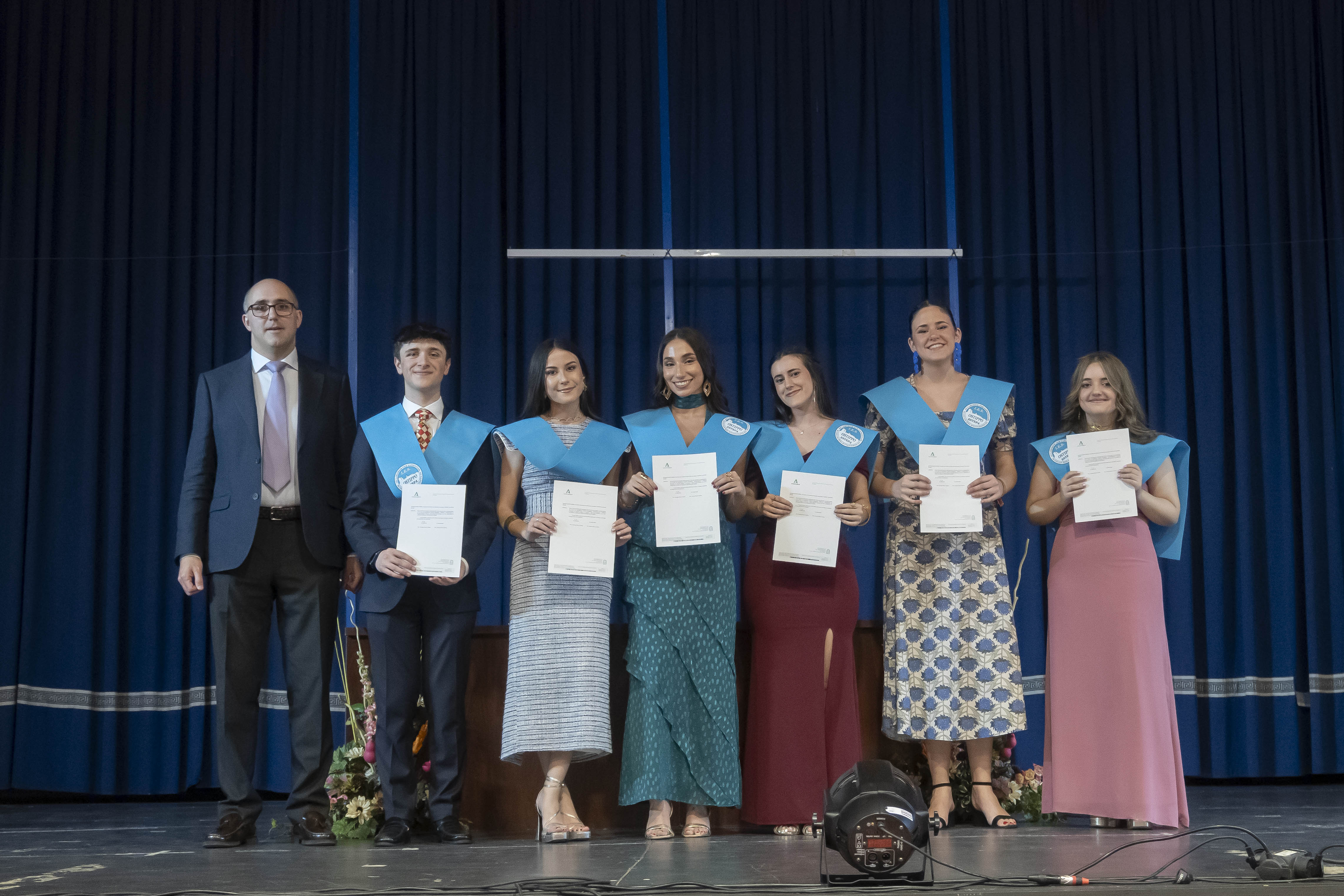 Finalmente se han entregado los títulos y bandas a todas las alumnas y alumnos y se ha cerrado el acto con la entrega de las Matrículas de Honor a seis alumnos: Sofía Sonia Carnerero, Margarita Borrego Márquez, Jesús María Pérez, Isabel Corona Álvarez, Fátima Sánchez Sánchez y Elia Pérez Díaz.