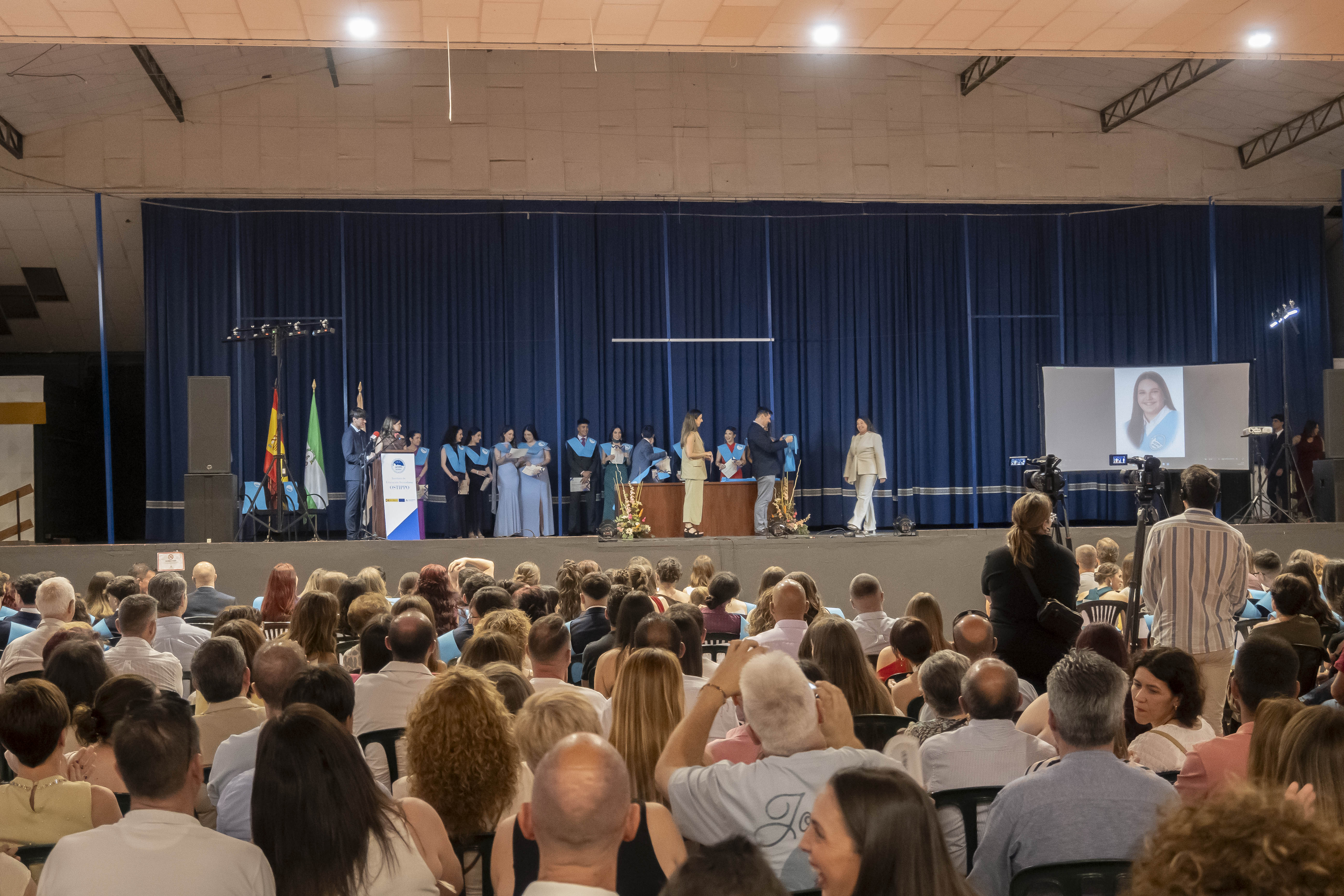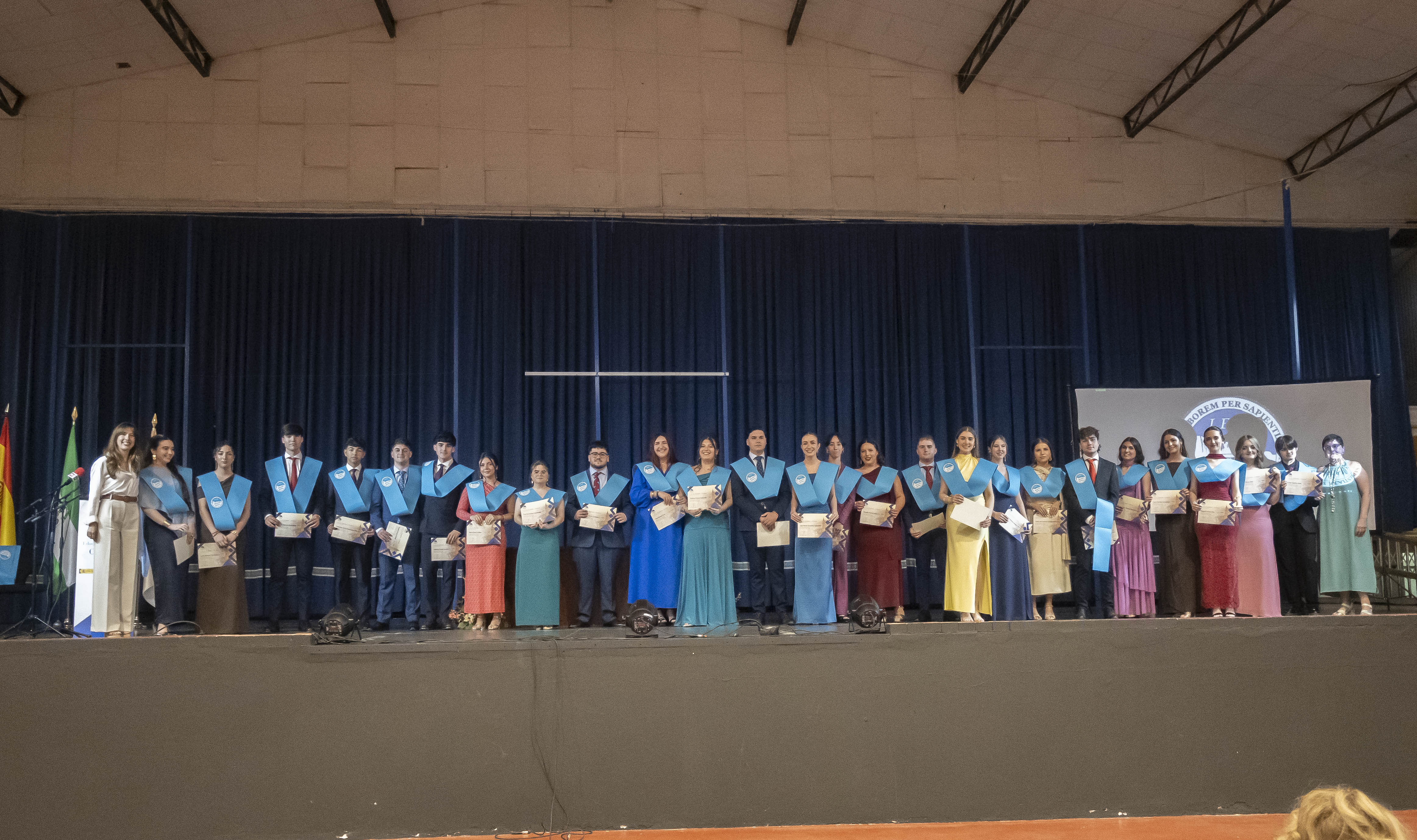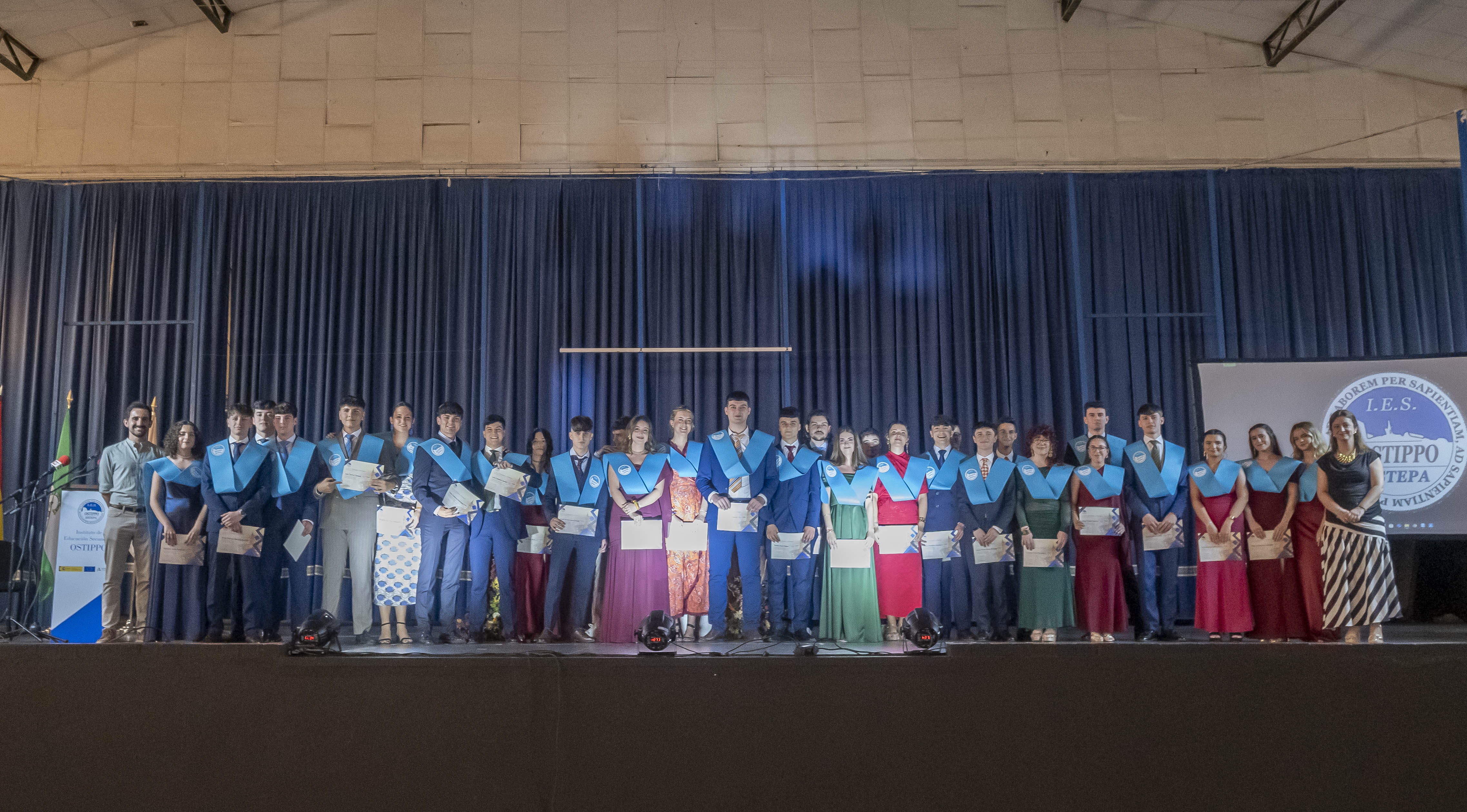 Hoy ha comenzado esta serie de actos oficiales con la Graduación de Bachillerato del IES Ostippo. Cuatro grupos han conseguido hoy sus bandas y títulos que les acredita los dos años que han cursado en Bachillerato.