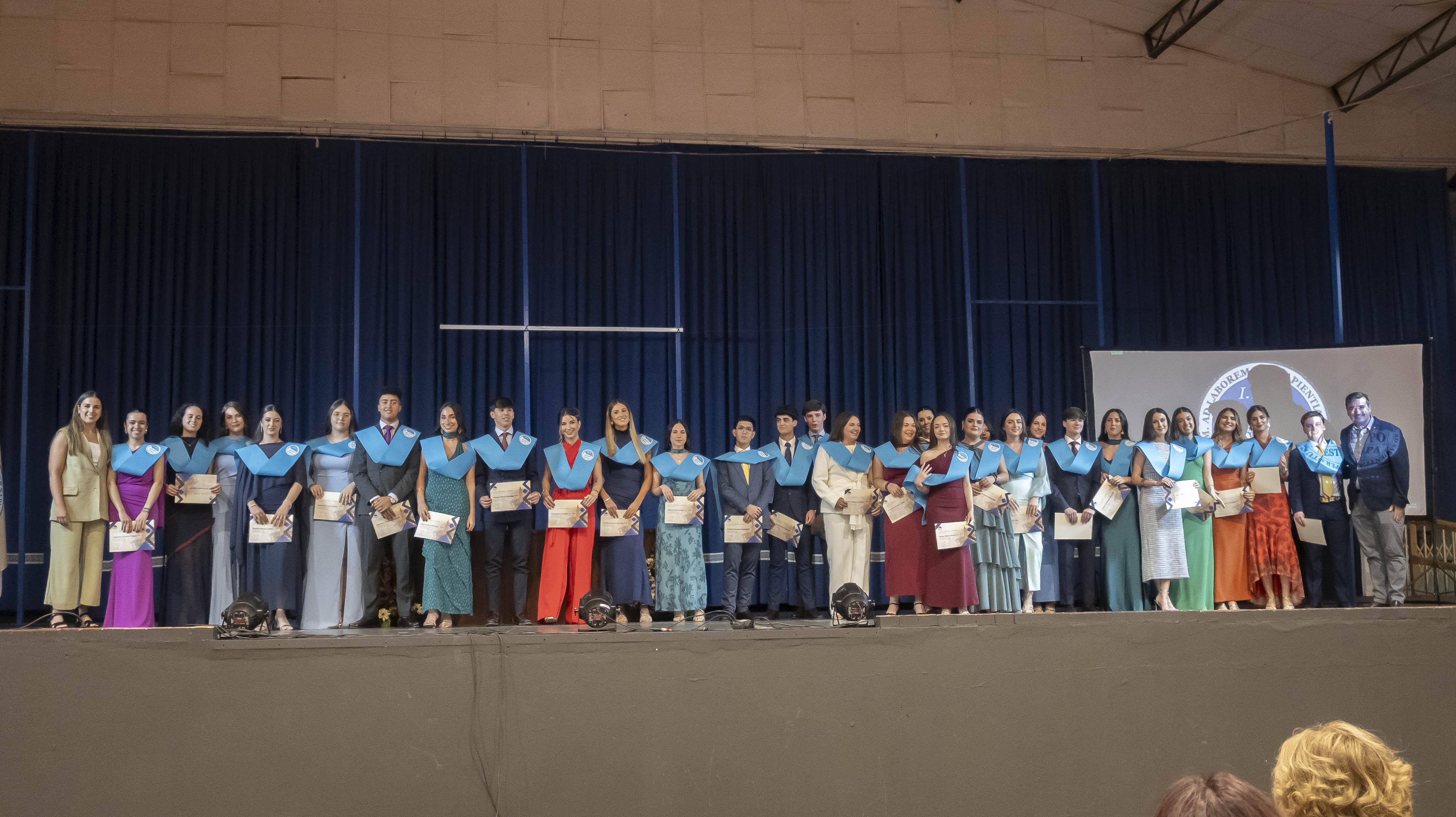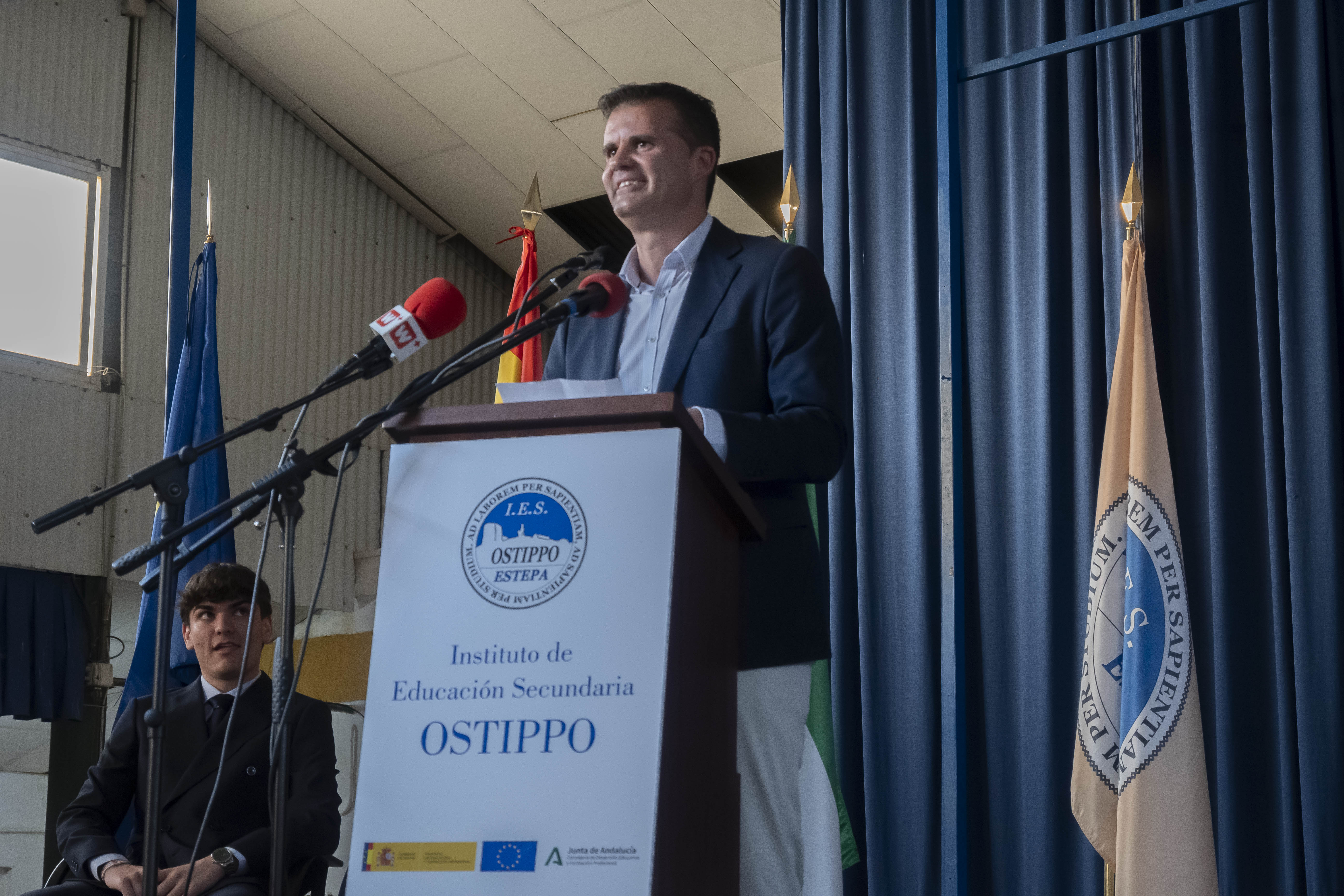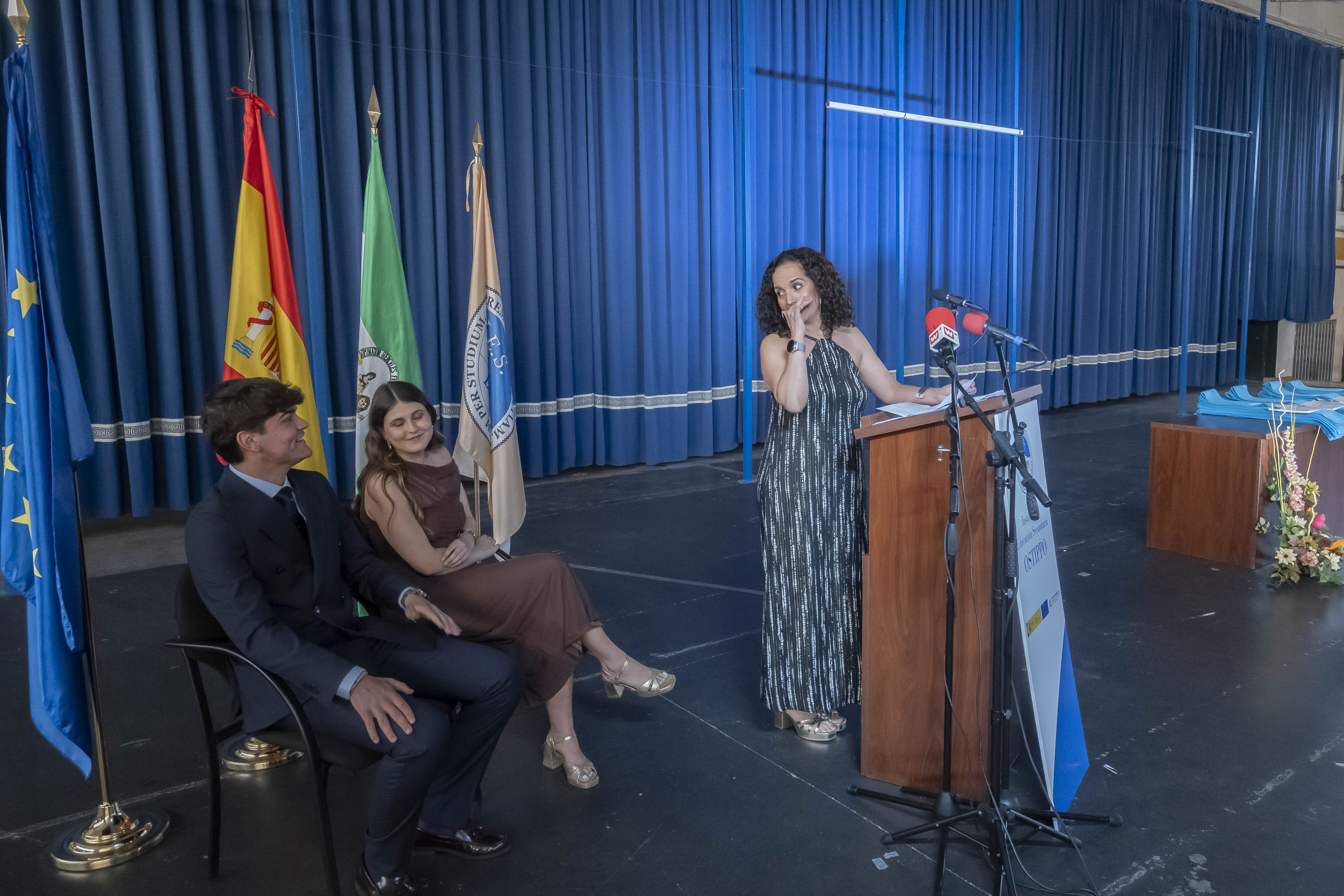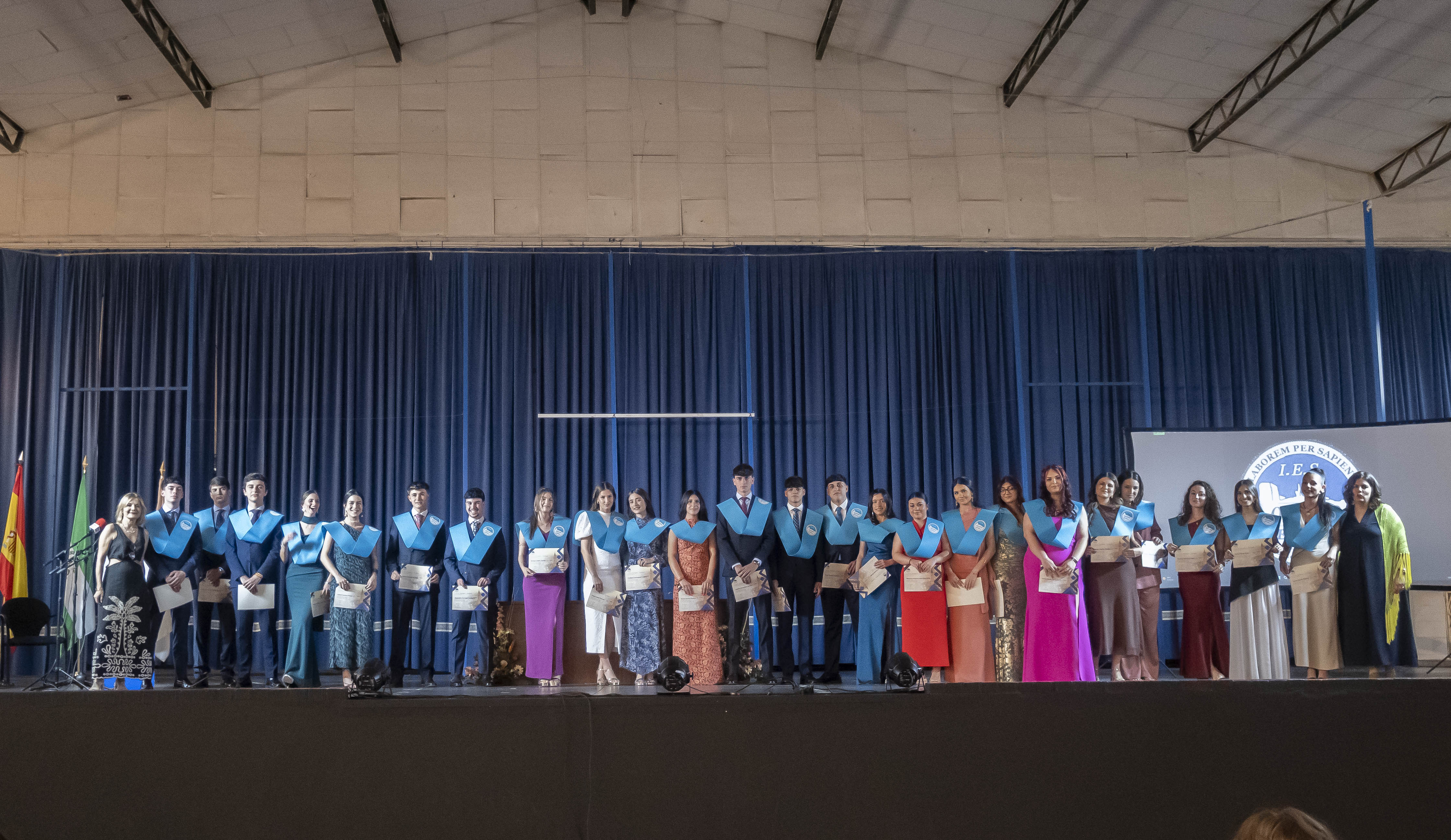 Hoy ha comenzado esta serie de actos oficiales con la Graduación de Bachillerato del IES Ostippo. Cuatro grupos han conseguido hoy sus bandas y títulos que les acredita los dos años que han cursado en Bachillerato.