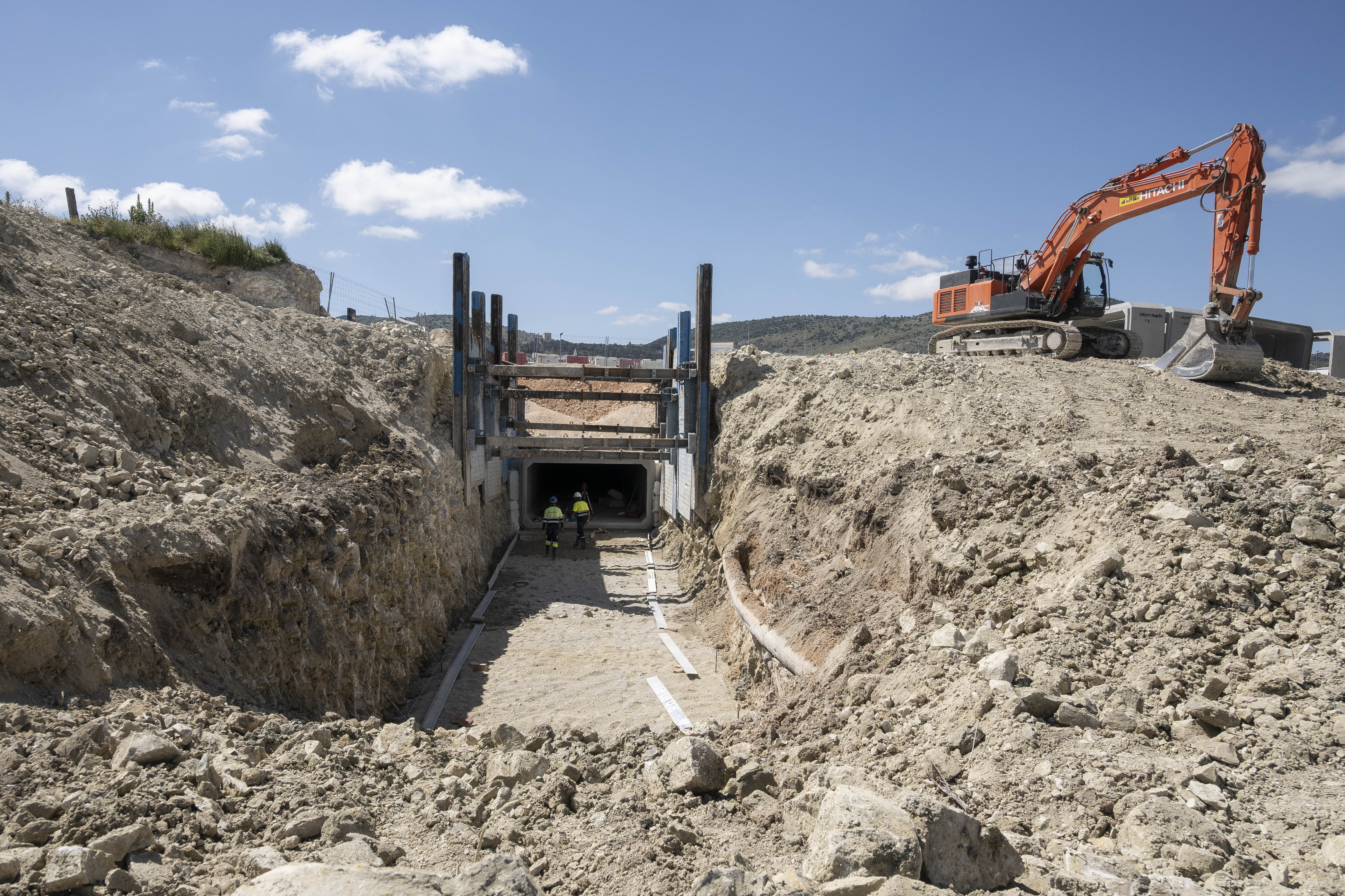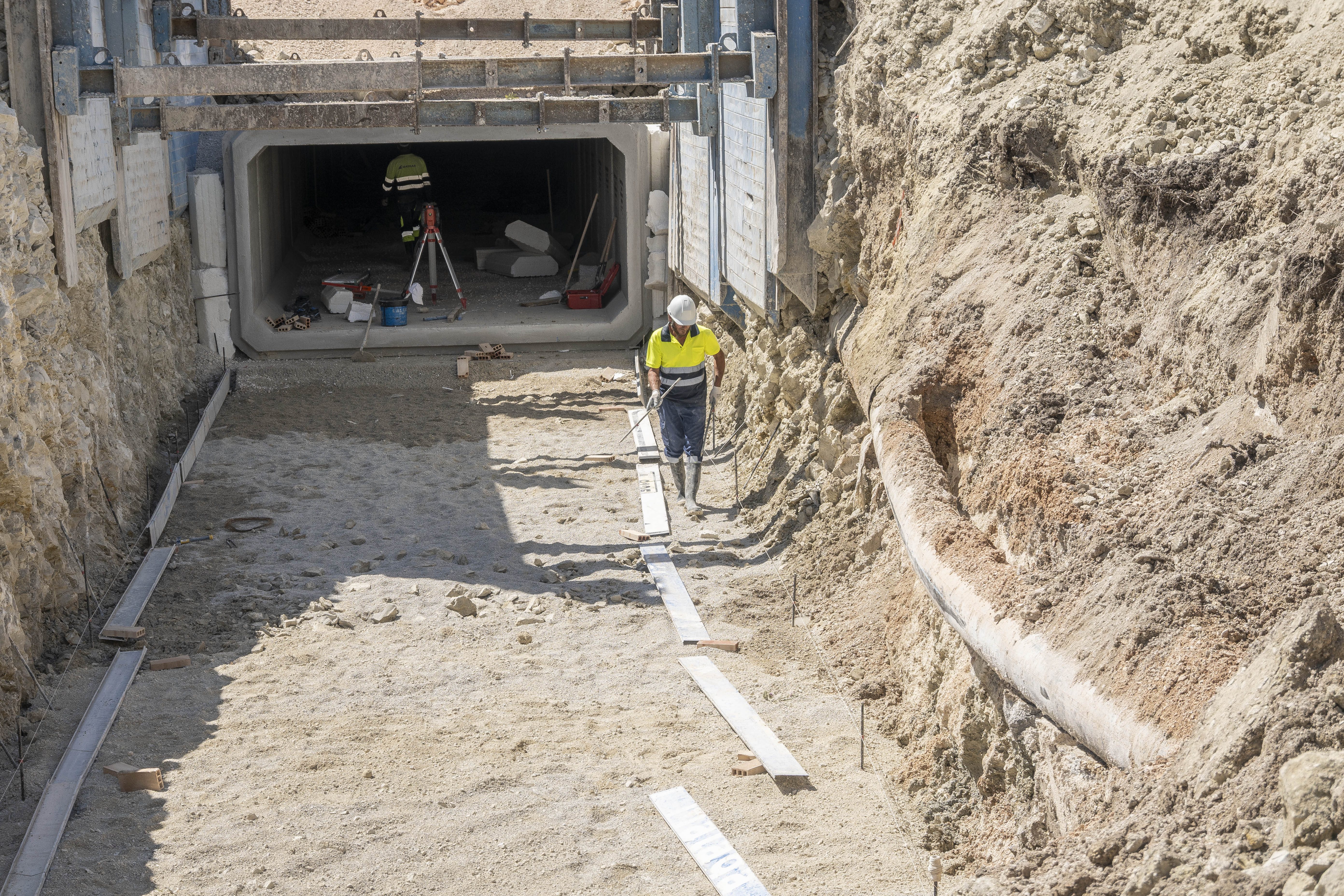 La entibación del paso subterráneo de la autovía es la acción que ocupa estos días a los operarios de Maygar, la empresa que está acometiendo la obra.
