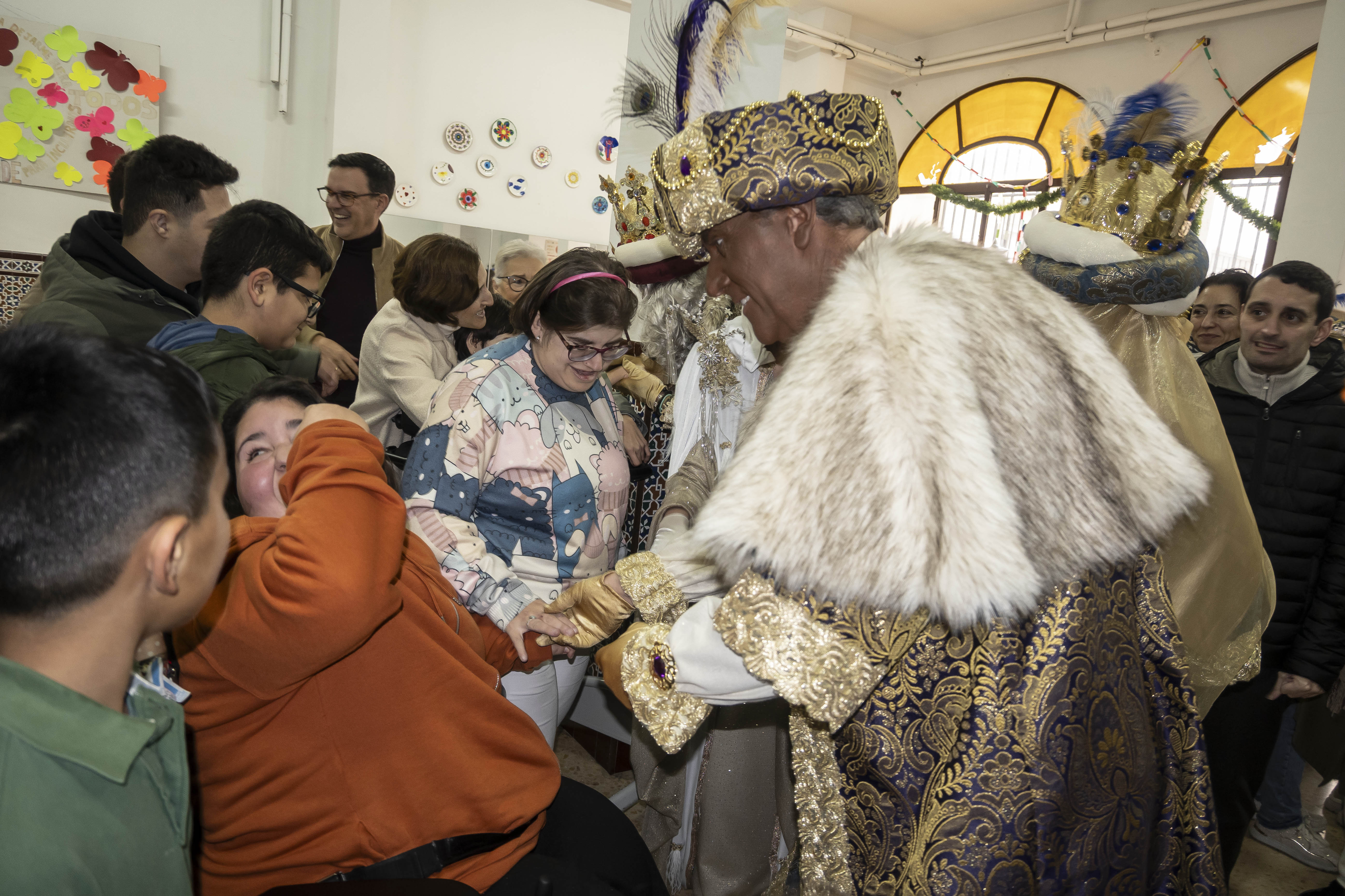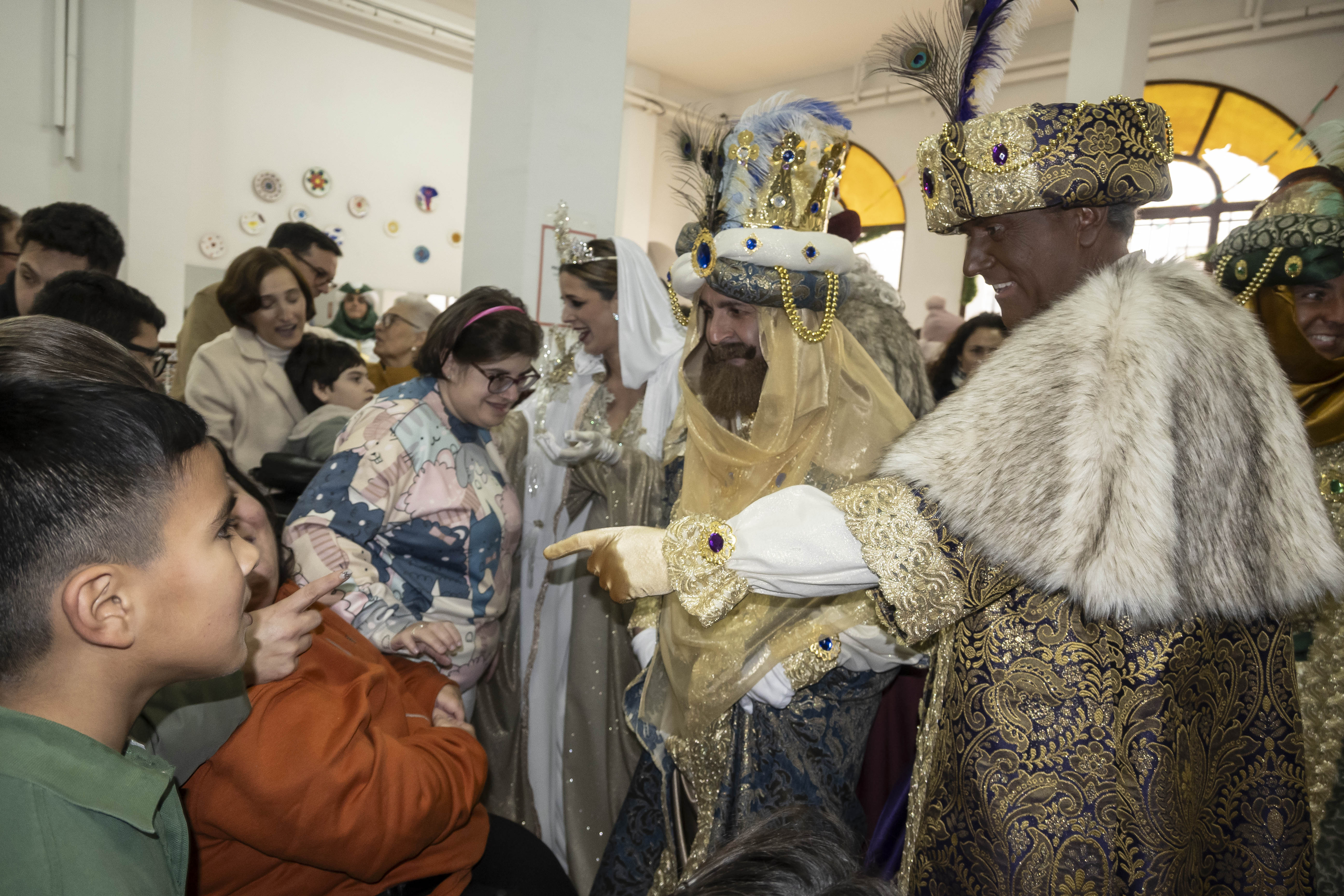 Melchor, Gaspar y Baltasar, junto a La Estrella de la Ilusión y el Heraldo Real, llegaron esta mañana a Estepa y en su recorrido han pasado a visitar el convento de las Hermanas de La Cruz y el centro de Asemi Estepa