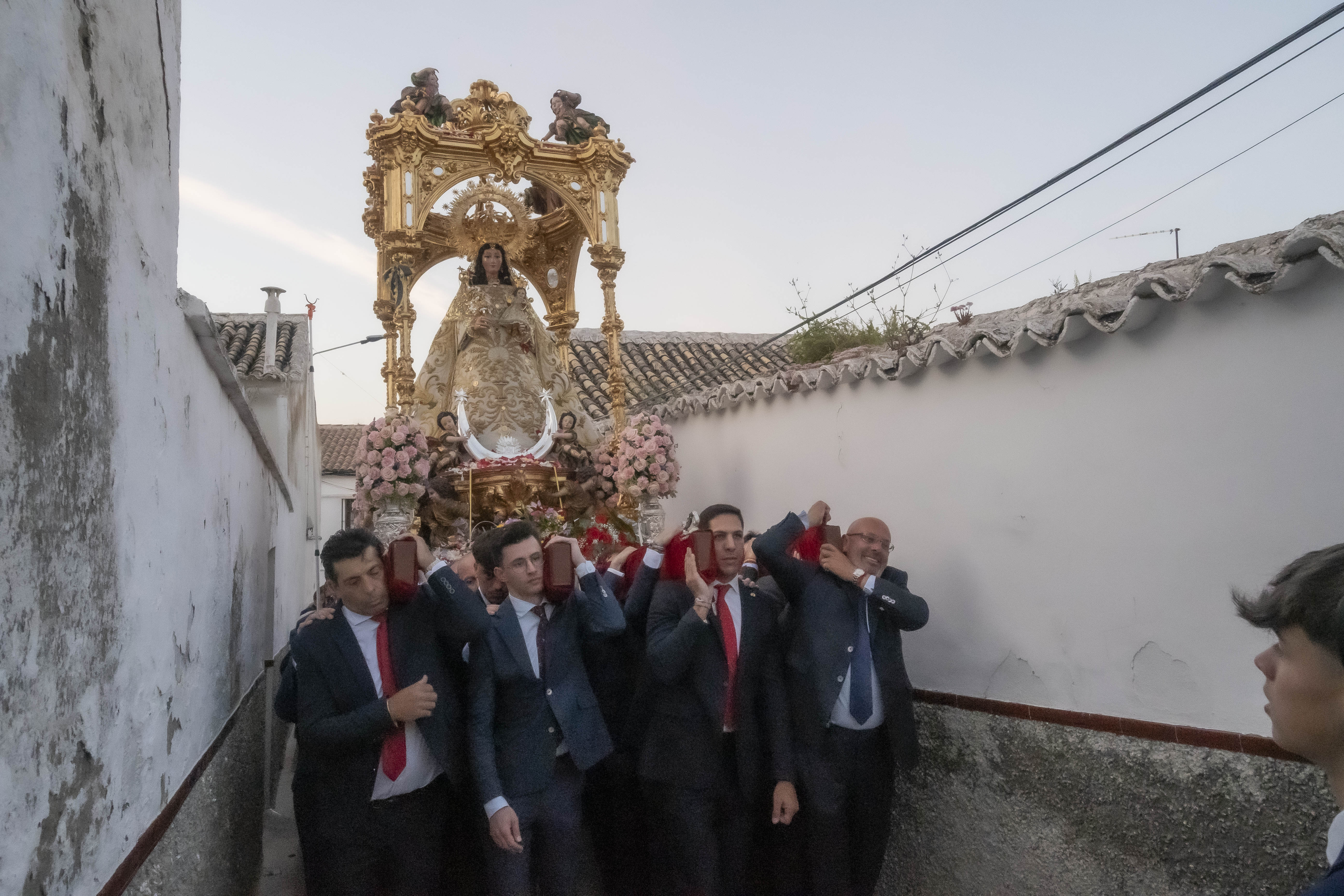 Un nuevo Domingo de Octava en Estepa con la expectación de ver a la Virgen de los Remedios en su primera procesión con su nueva condición de imagen Coronada. En la calle Roya no cabía más gente para ver pasar a la Virgen con ese pontente sol de atardecer que caracteriza este día en la fiesta grande del barrio "Churretero".