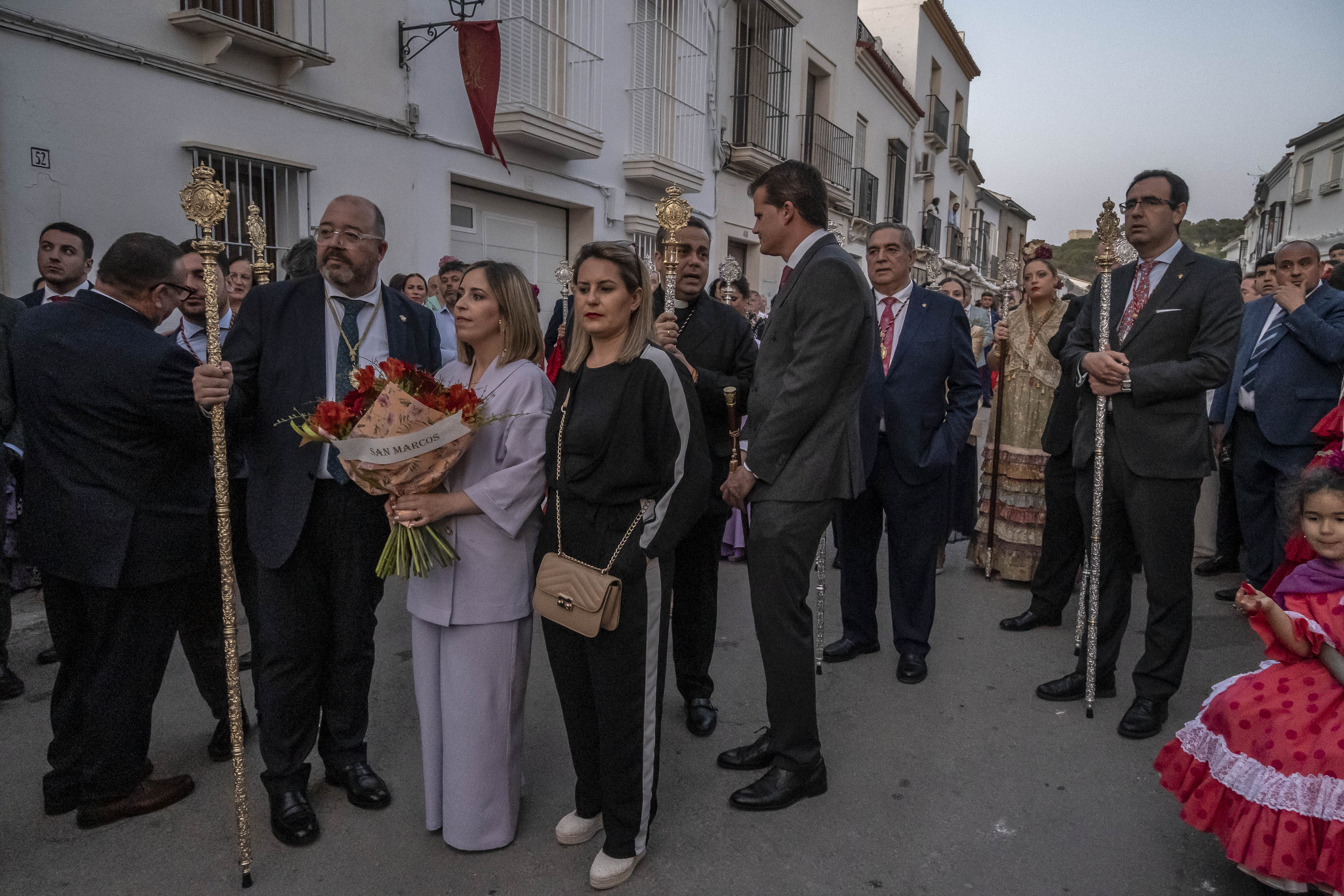 El alcalde de Estepa, Antonio Jesús Muñoz, ha acompañado a la junta directiva de la hermandad delante del paso de la Virgen, junto al hermano Mayor, Antonio J. Martín; el párroco de Santa María y San Sebastián, Manuel Ávalos Fernández y el Vicario Parroquial, Andrés Rodríguez Sánchez.
