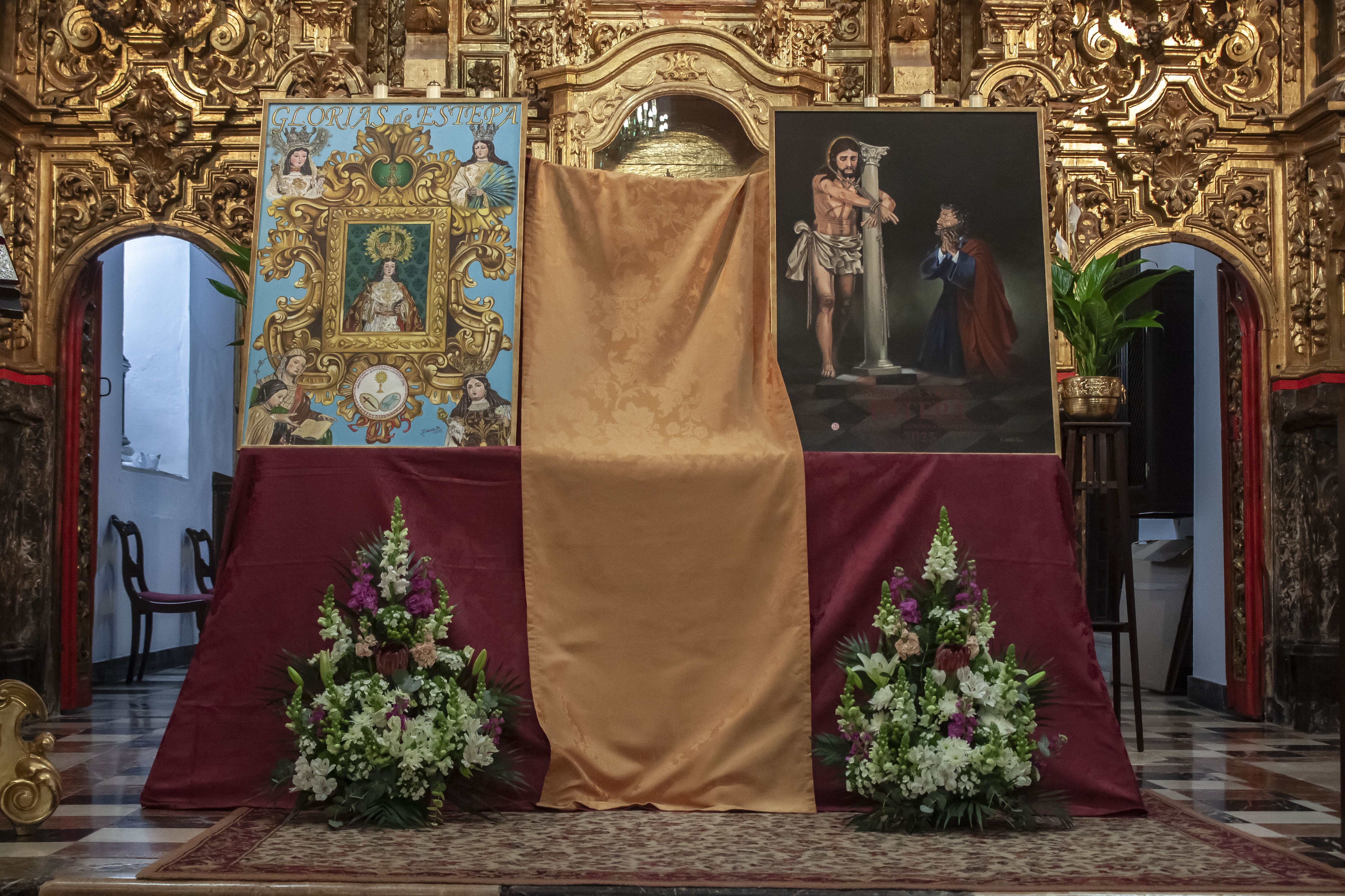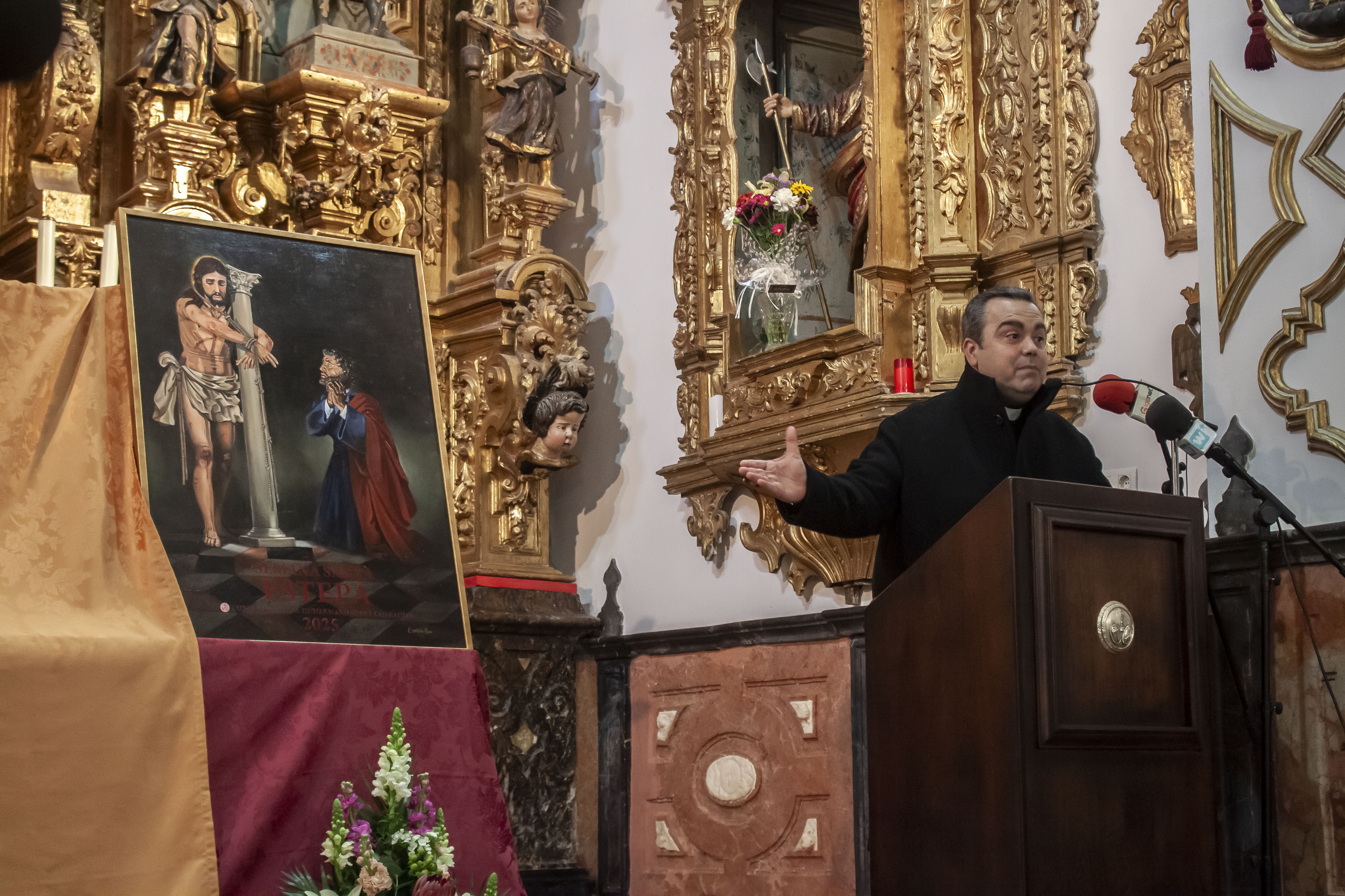 En primer lugar se ha dado a conocer el cartel anunciador de la Semana Santa 2025, cuyo autor, Eusebio Rico Ramírez, ha representado su visión cofrade de la fiesta con las imágenes de San Pedro, en clara alusión al 350º aniversario de la hermandad del mismo nombre, imagen que mira a otra de gran devoción en Estepa, como es la del Santo Cristo amarrado a la columna, titular de la hermandad de Paz y Caridad.