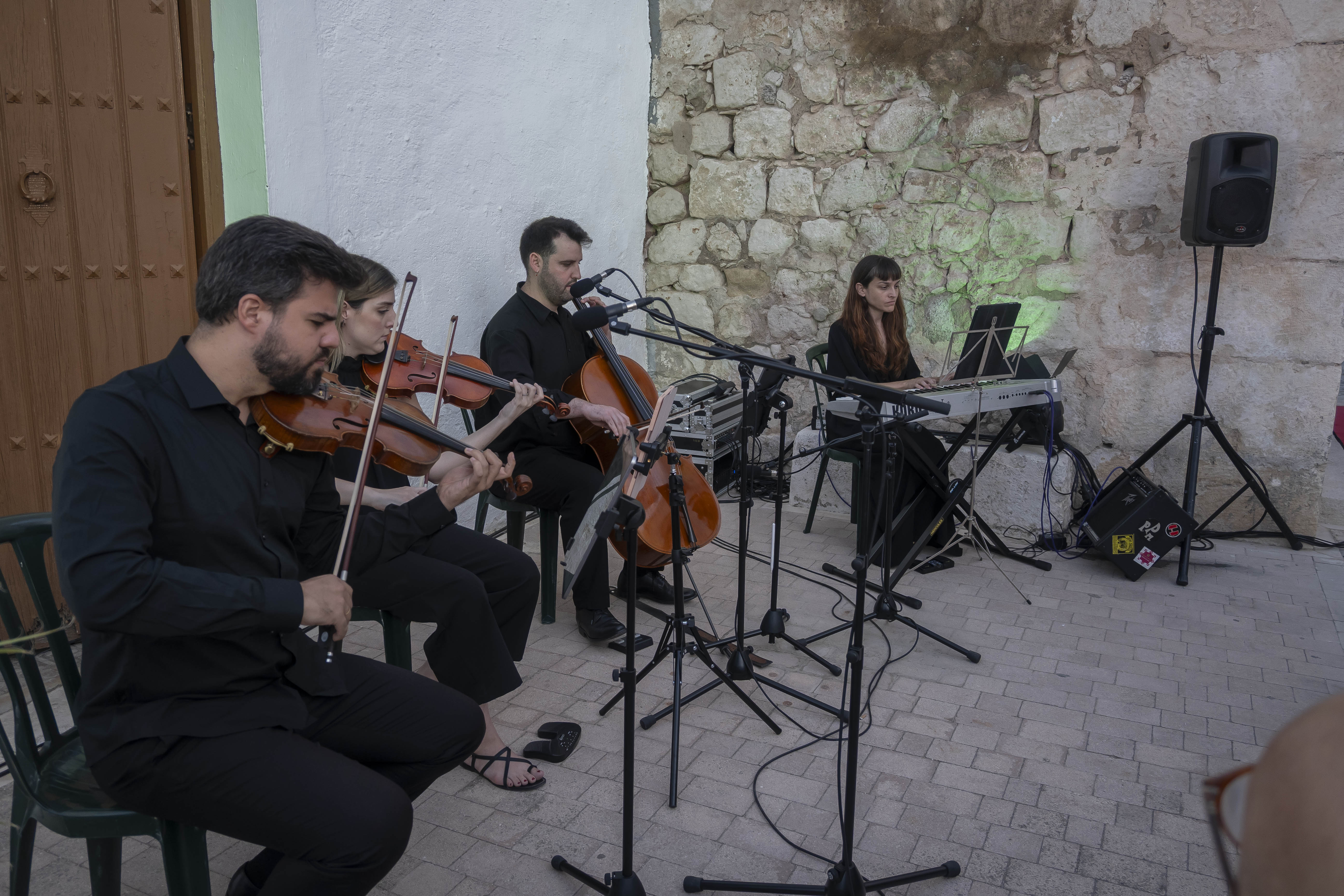 El cuarteto "Ponle Música", ha amenizado la tarde con marcas cofrades y otras piezas clásicas con violín, viola, contrabajo y teclado.