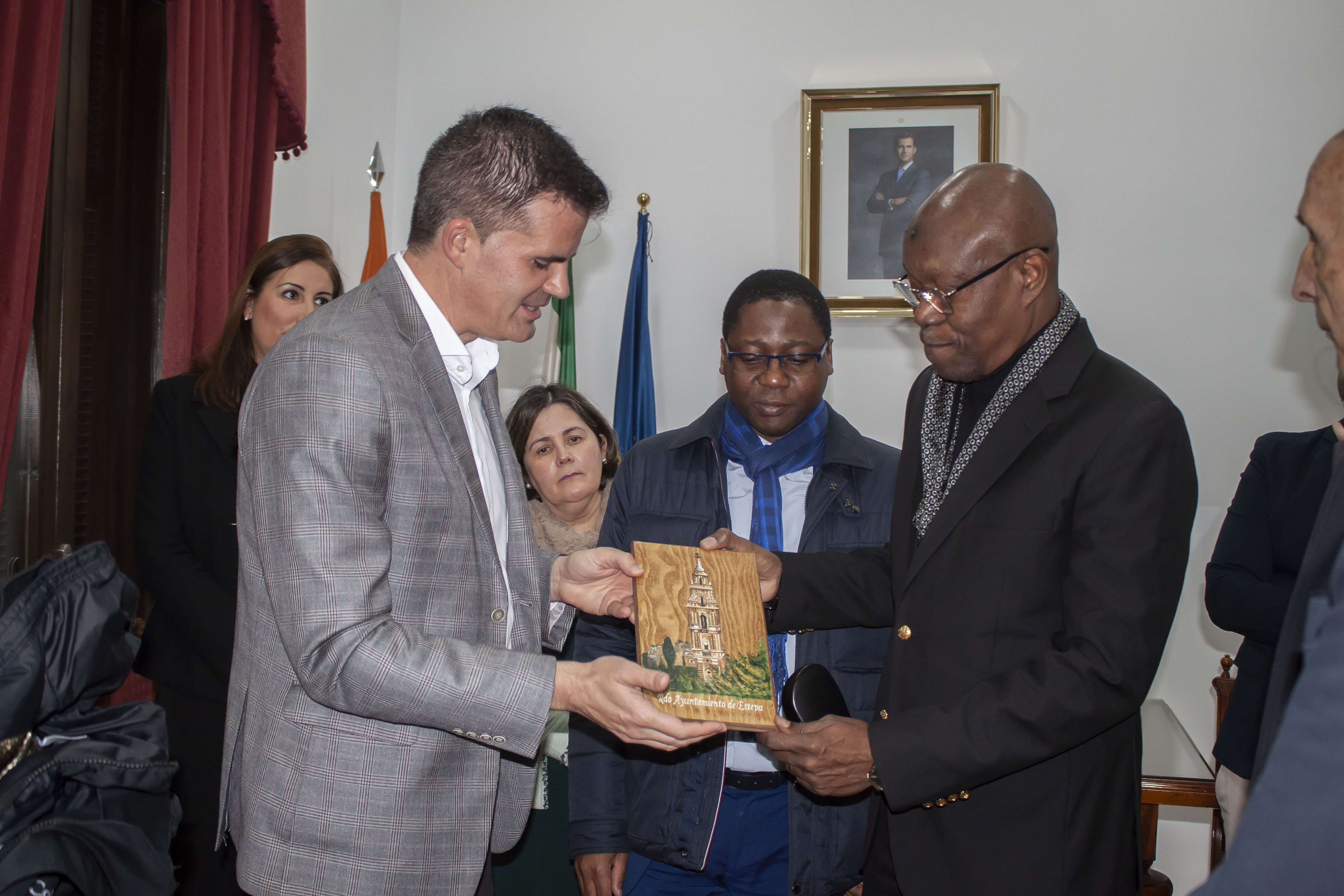 El embajador, el Ministro Consejero de la República de Costa de Marfil, Clément Gnahe, y el responsable del Servicio Económico y Comercial, Mamadou Kone, fueron acompañados en todo momento por la concejala de Patrimonio, Ascen Castillo y los concejales, David Gamito, Teresa Migueles Haro. La visita fue realizada por las técnicas de turismo, Carmen María Barrionuevo y María José Amador.