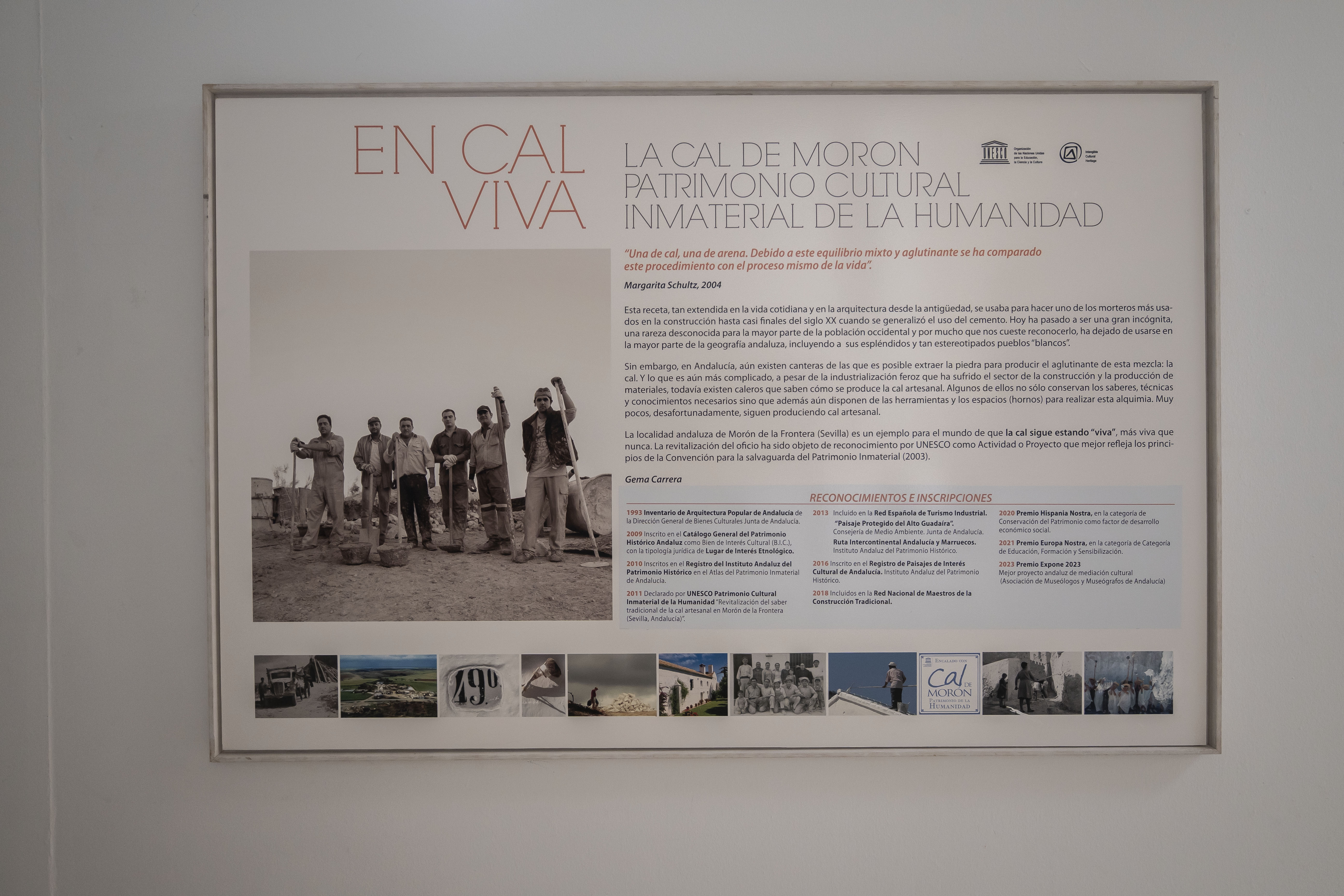 El autor de las fotografías es Manuel Gil, y su muestra constituye una expresión antropológica de la tradición de la cal en Morón de la Frontera. Morón y Estepa son dos de los únicos municipios donde aún subsiste la producción de cal.