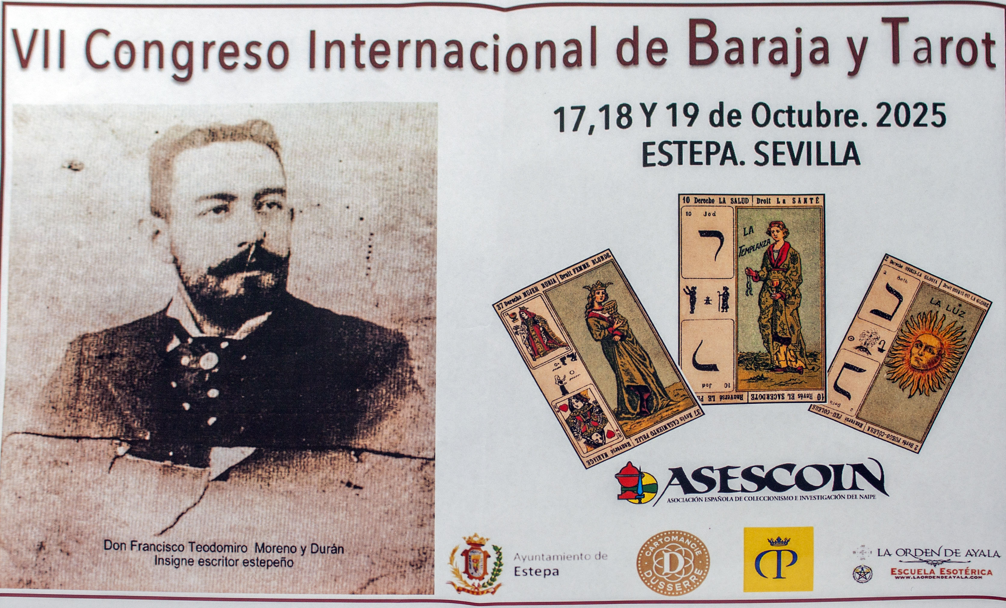 Durante el acto, se han dado a conocer todos los detalles de este congreso, que se presenta como una cita internacional imprescindible para estudiosos y amantes del tarot, los naipes y el mundo simbólico de las barajas. Una de las grandes novedades de esta edición será la atención especial que se dedicará a la figura del estepeño Francisco Teodomiro Moreno y Durán, conocido como “El Bachiller de Estepa”, autor de la que se considera la primera baraja de tarot española. Escritor prolífico, Moreno y Durán es también autor de obras como Académicos en cuadrilla, Los Jesuitas y el Padre Mir y Los Secretos de los Naipes.