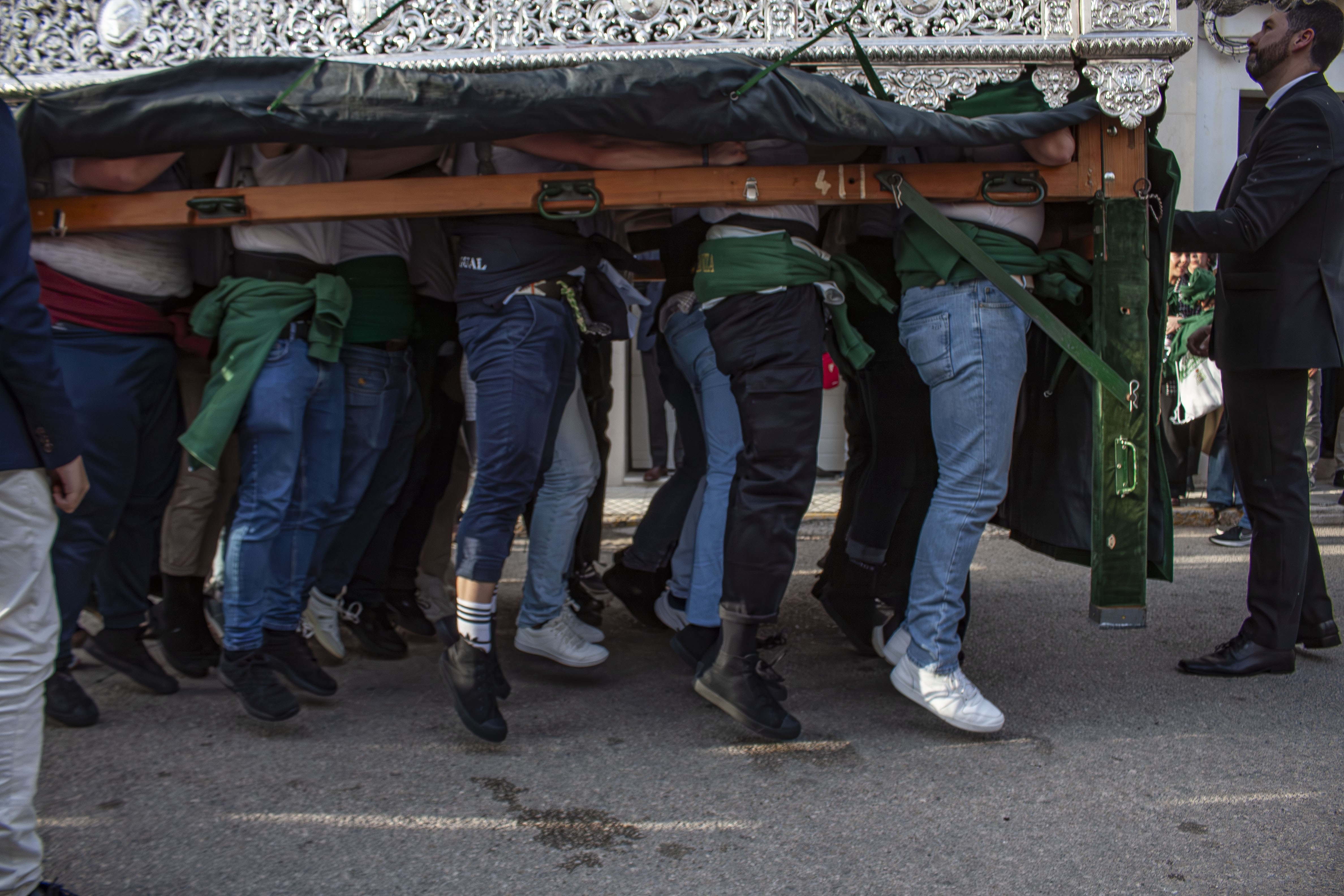 Pasos: Dos. 40 costaleros lleva el paso de Misterio y 30 costaleros calza el palio.