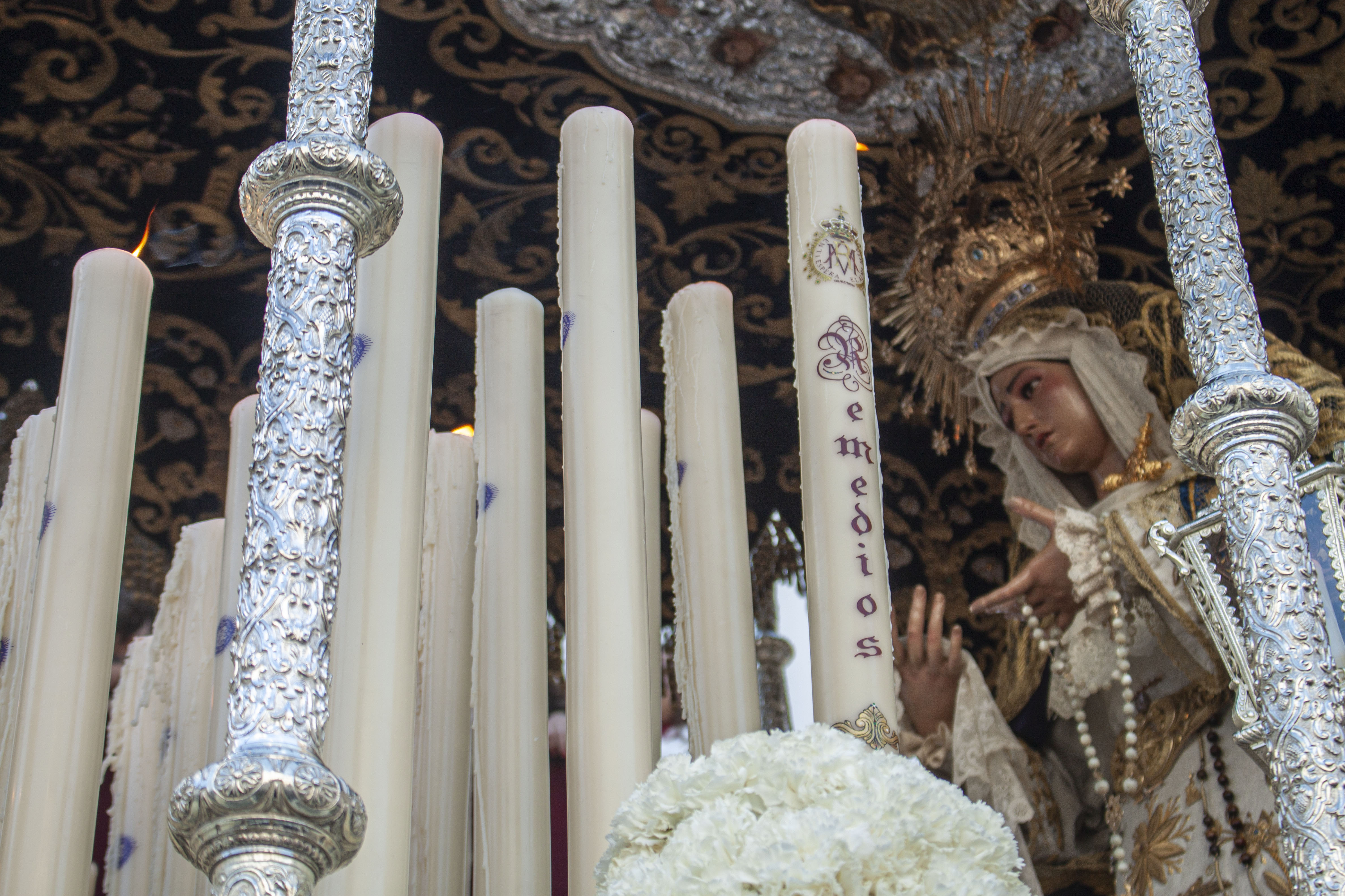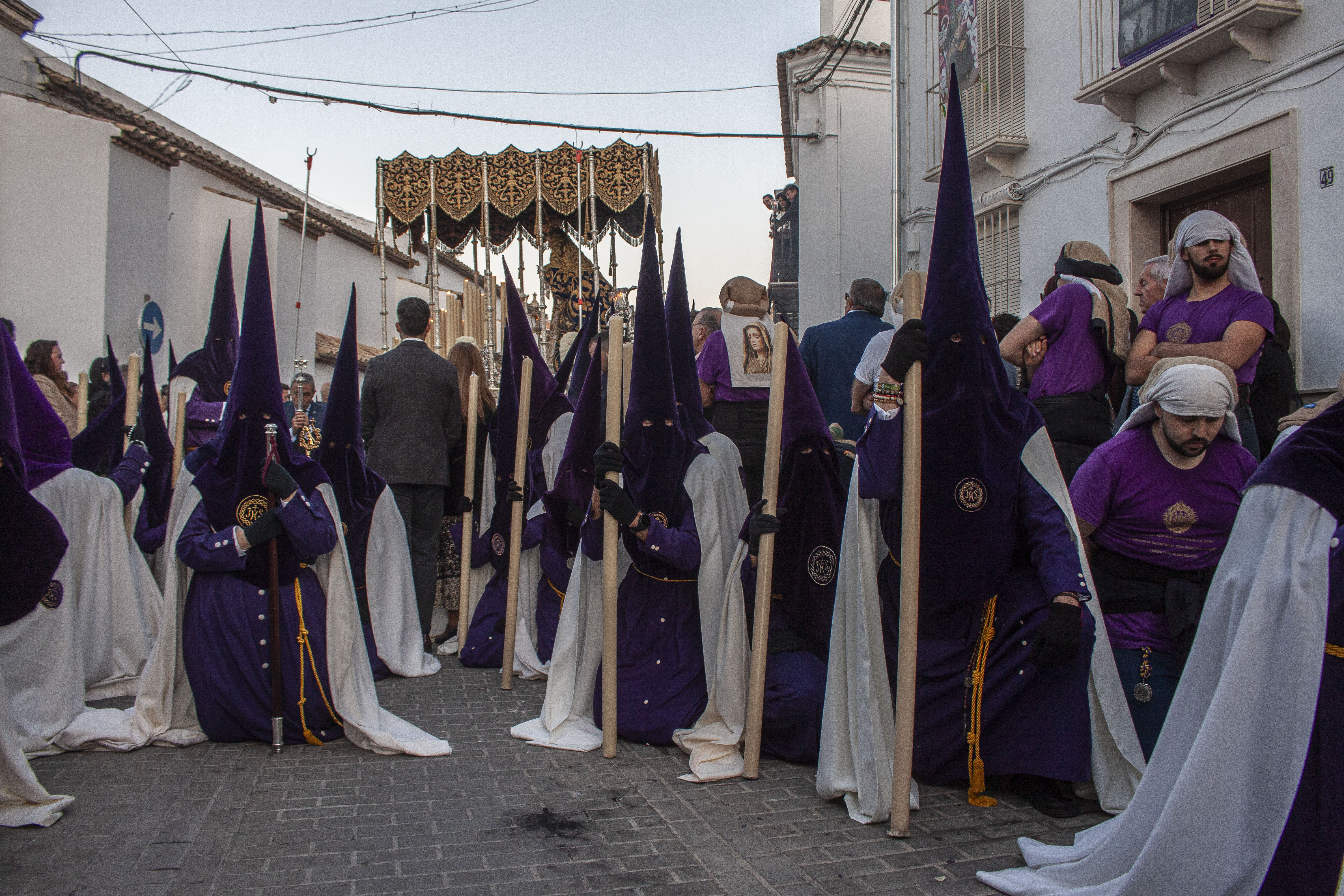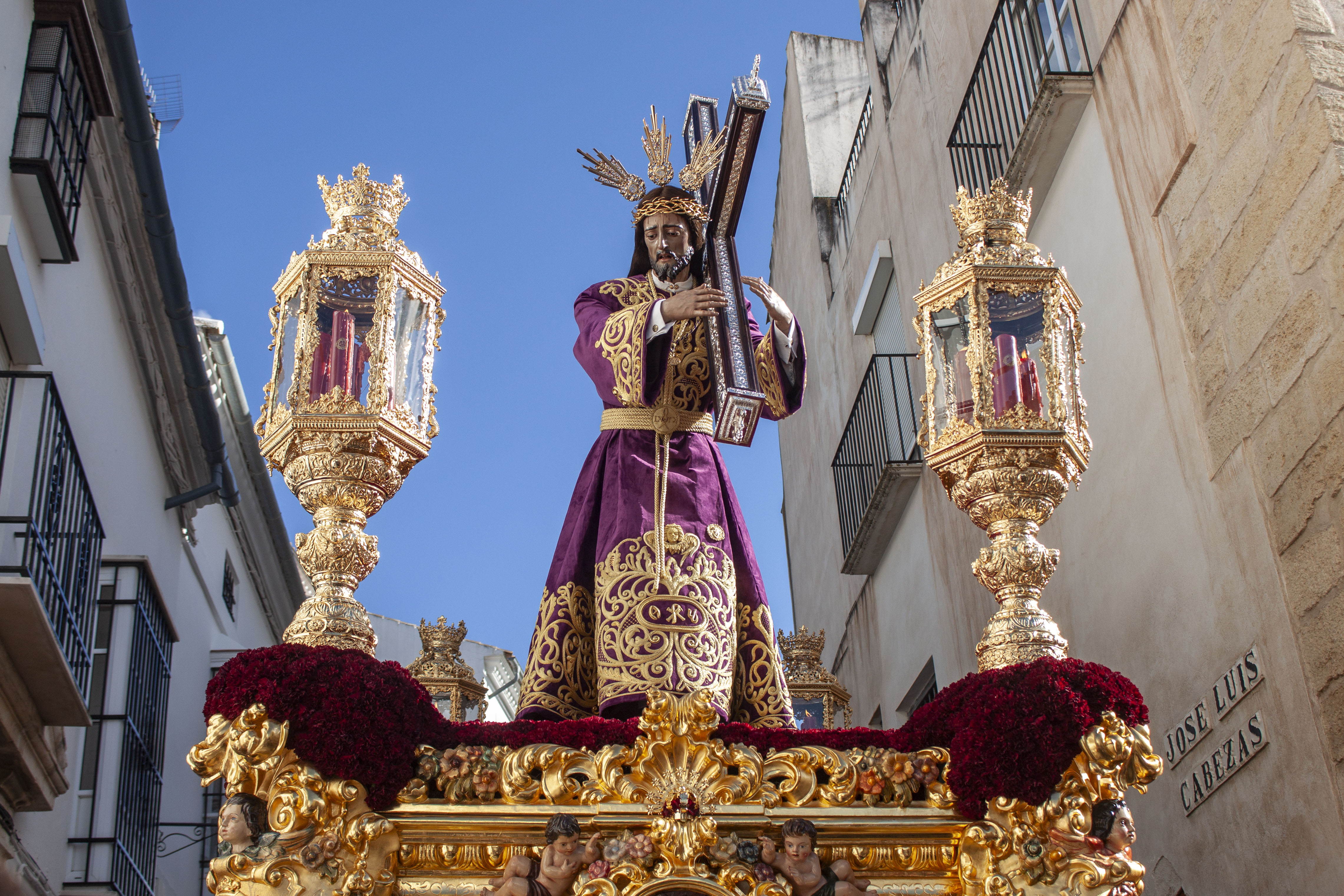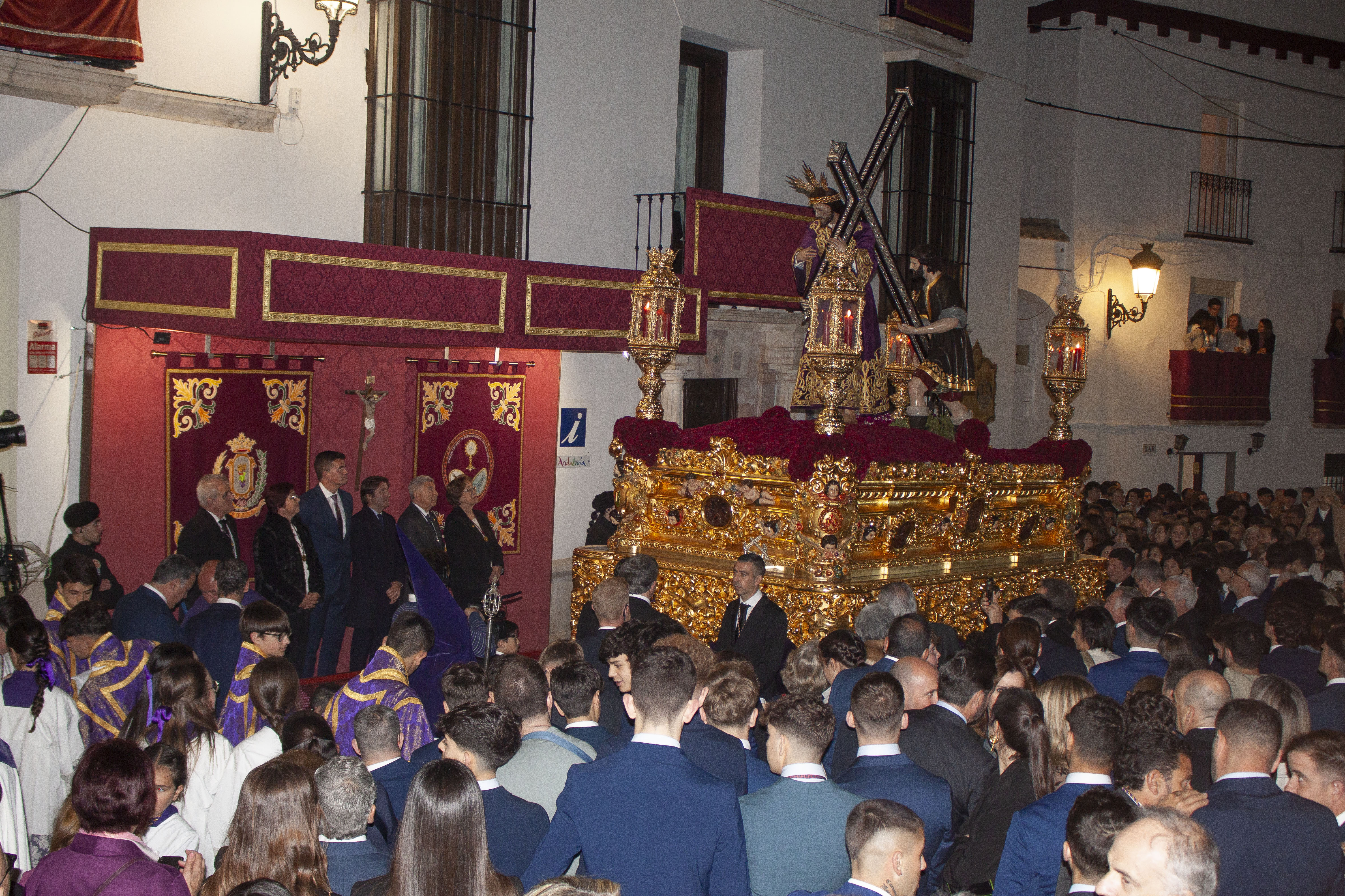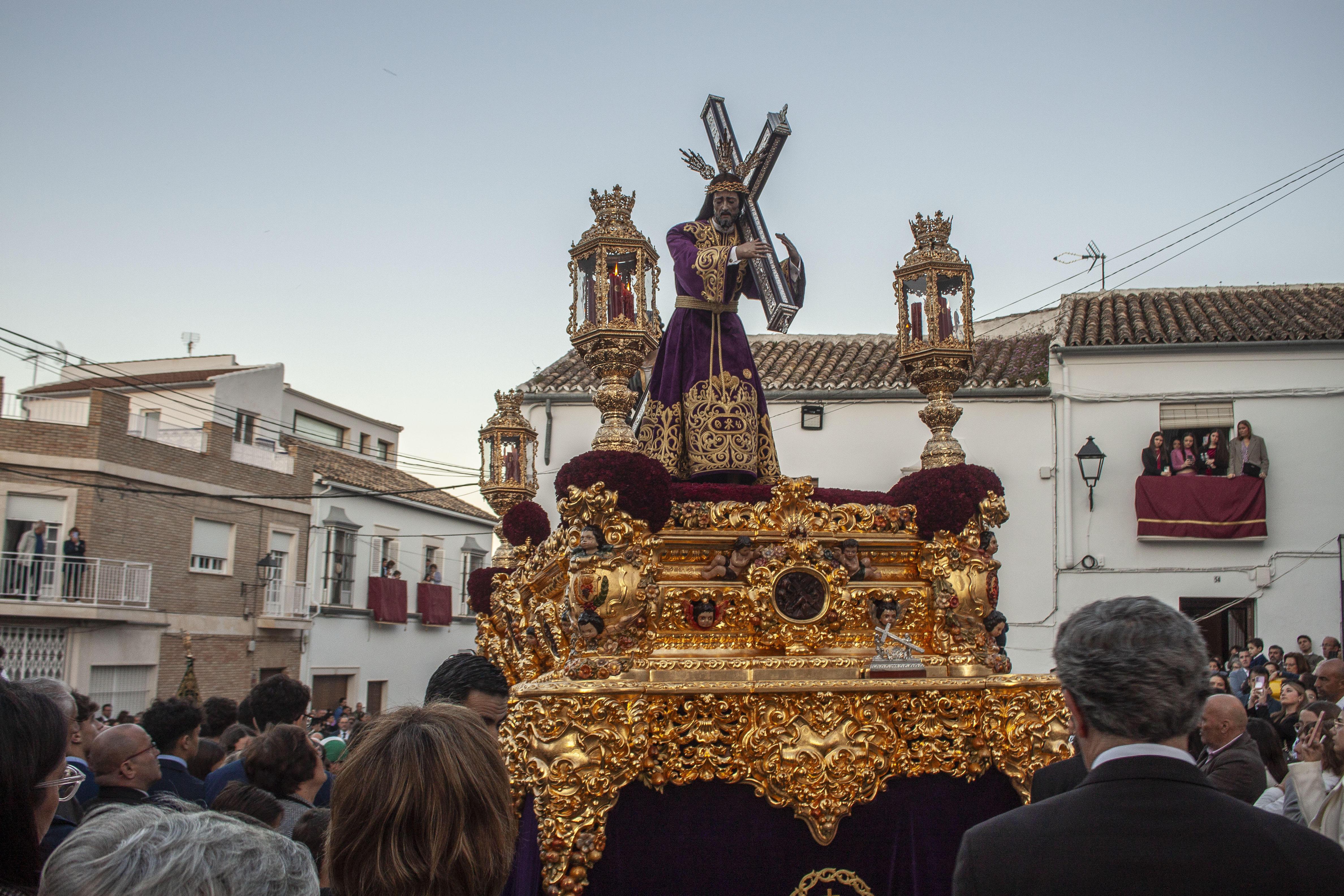 Pasos: Dos. El paso de Jesús es llevado por 35 costaleros, mientras que el paso de la Virgen de los Dolores calza 30 hombres.