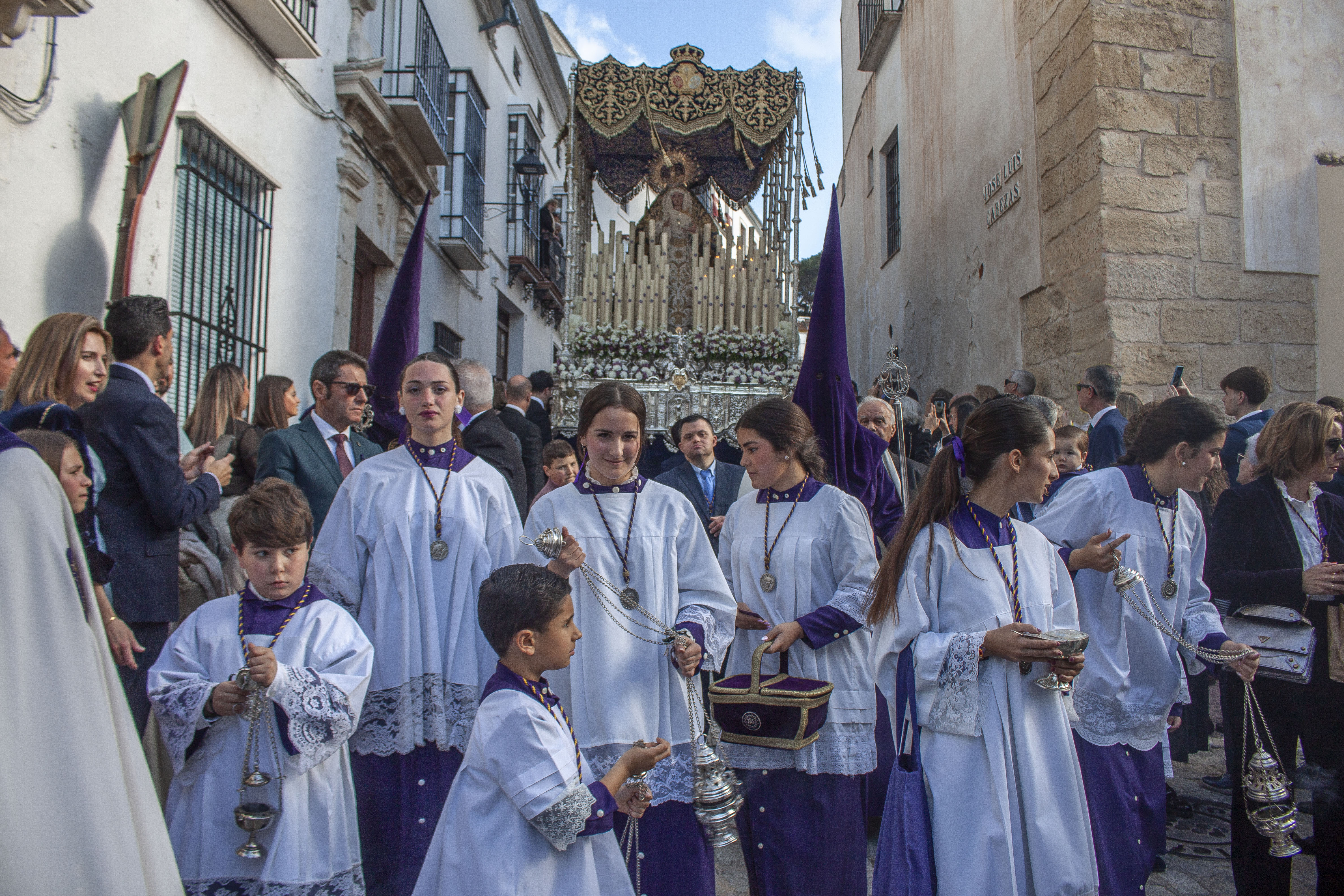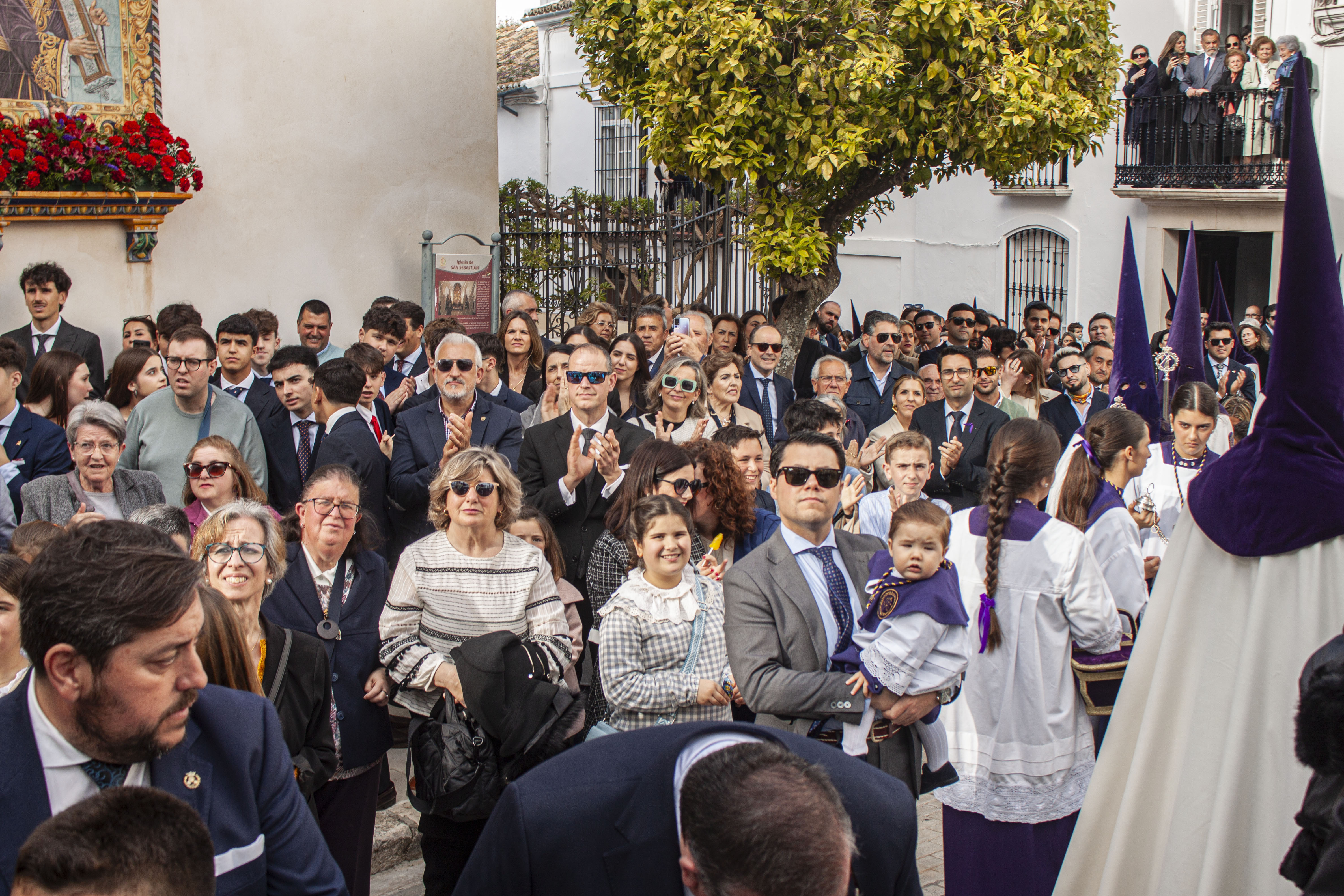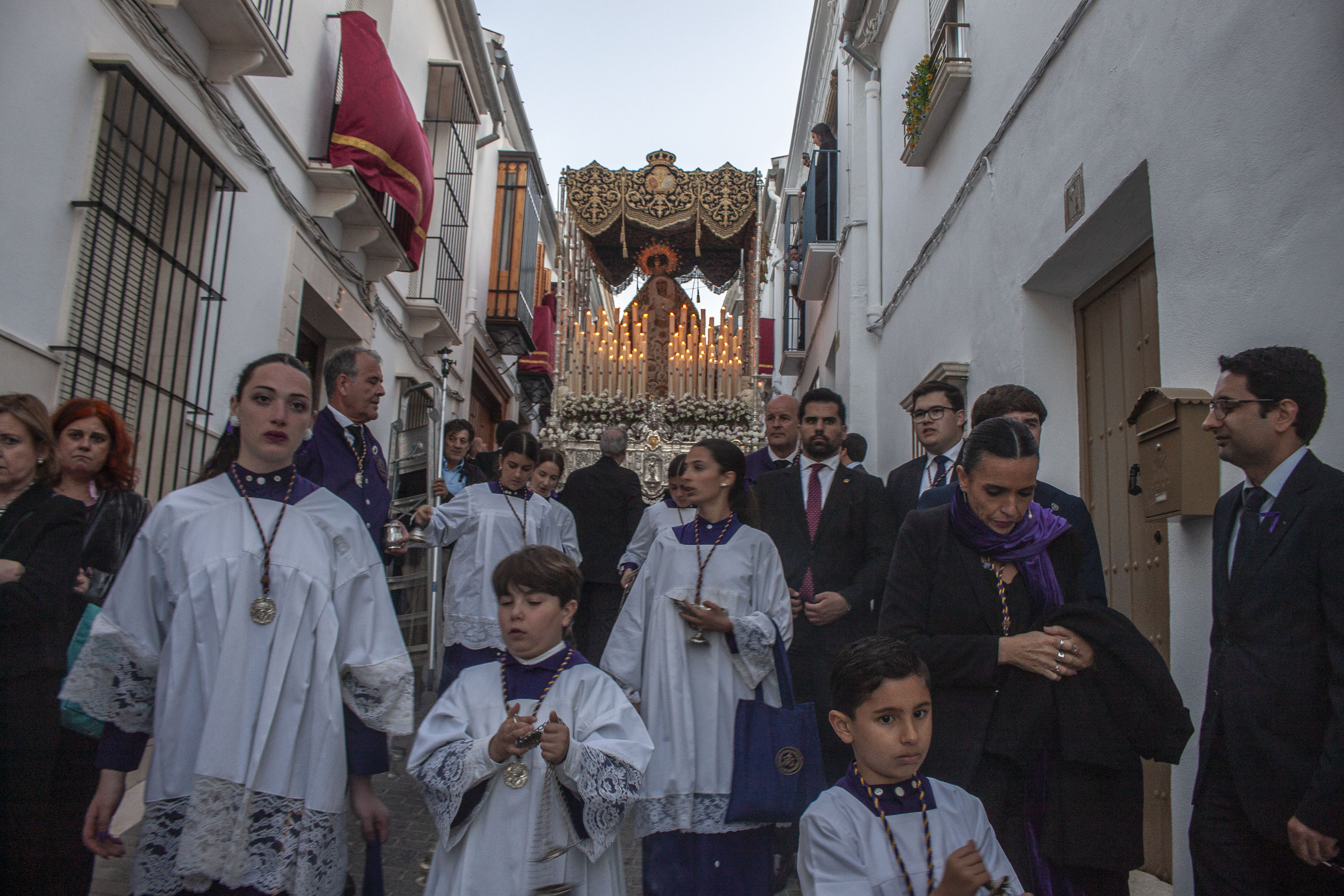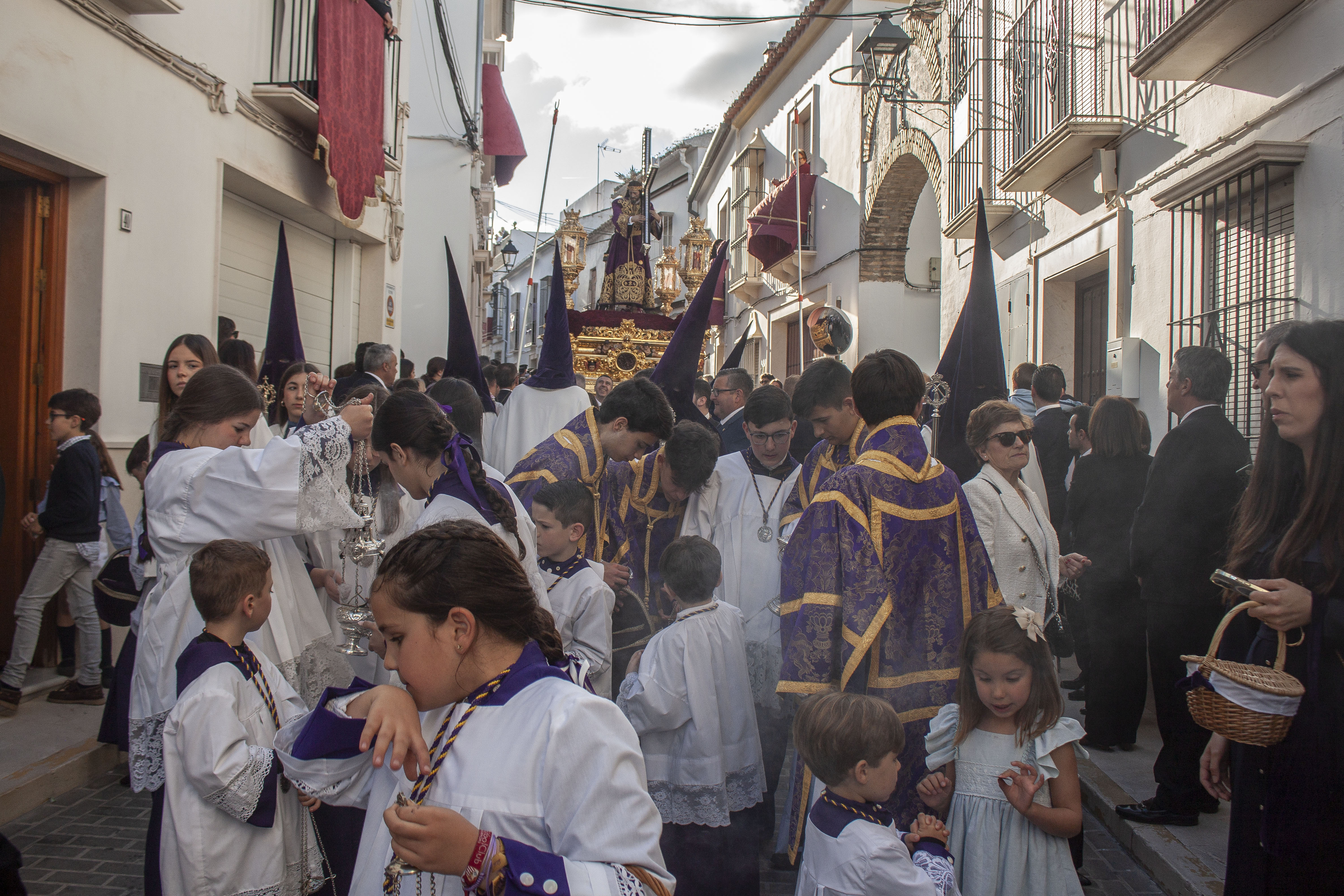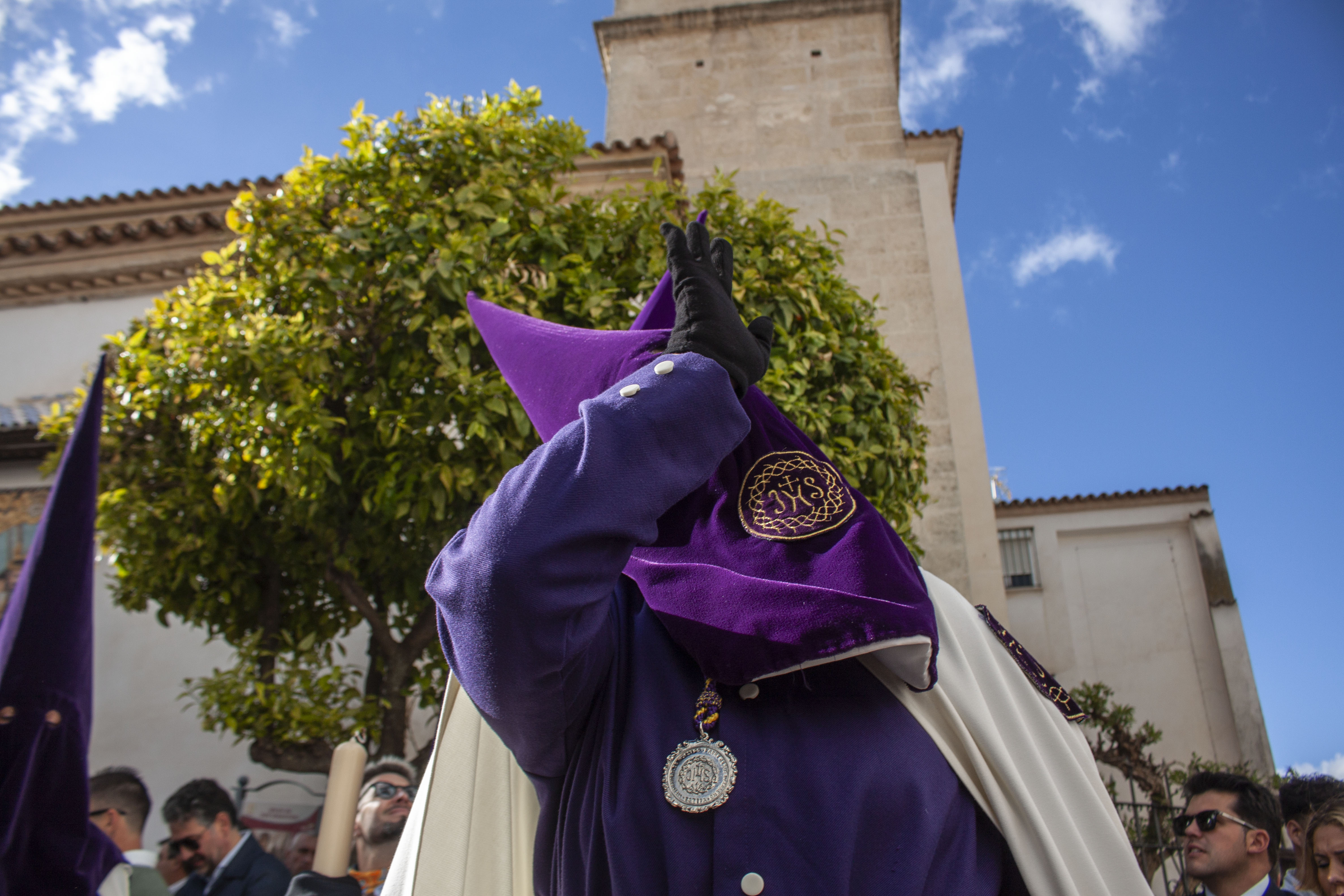 Pasos: Dos. El paso de Jesús es llevado por 35 costaleros, mientras que el paso de la Virgen de los Dolores calza 30 hombres.