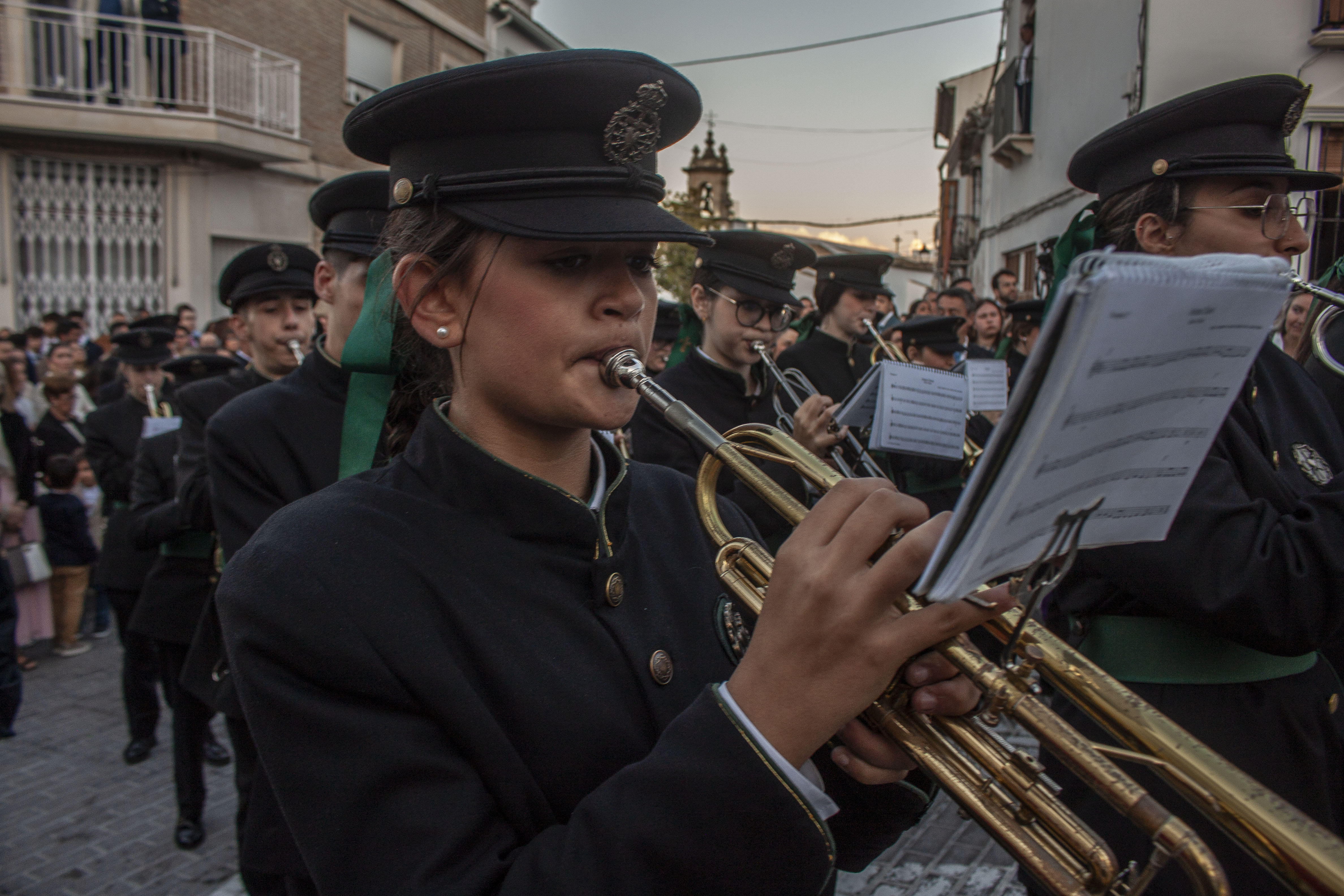 Música: Agrupación Musical Vera Cruz de Campillos (Málaga) tras el paso de Jesús. Asociación Cultural Banda de Música Villa de Osuna en el Palio.