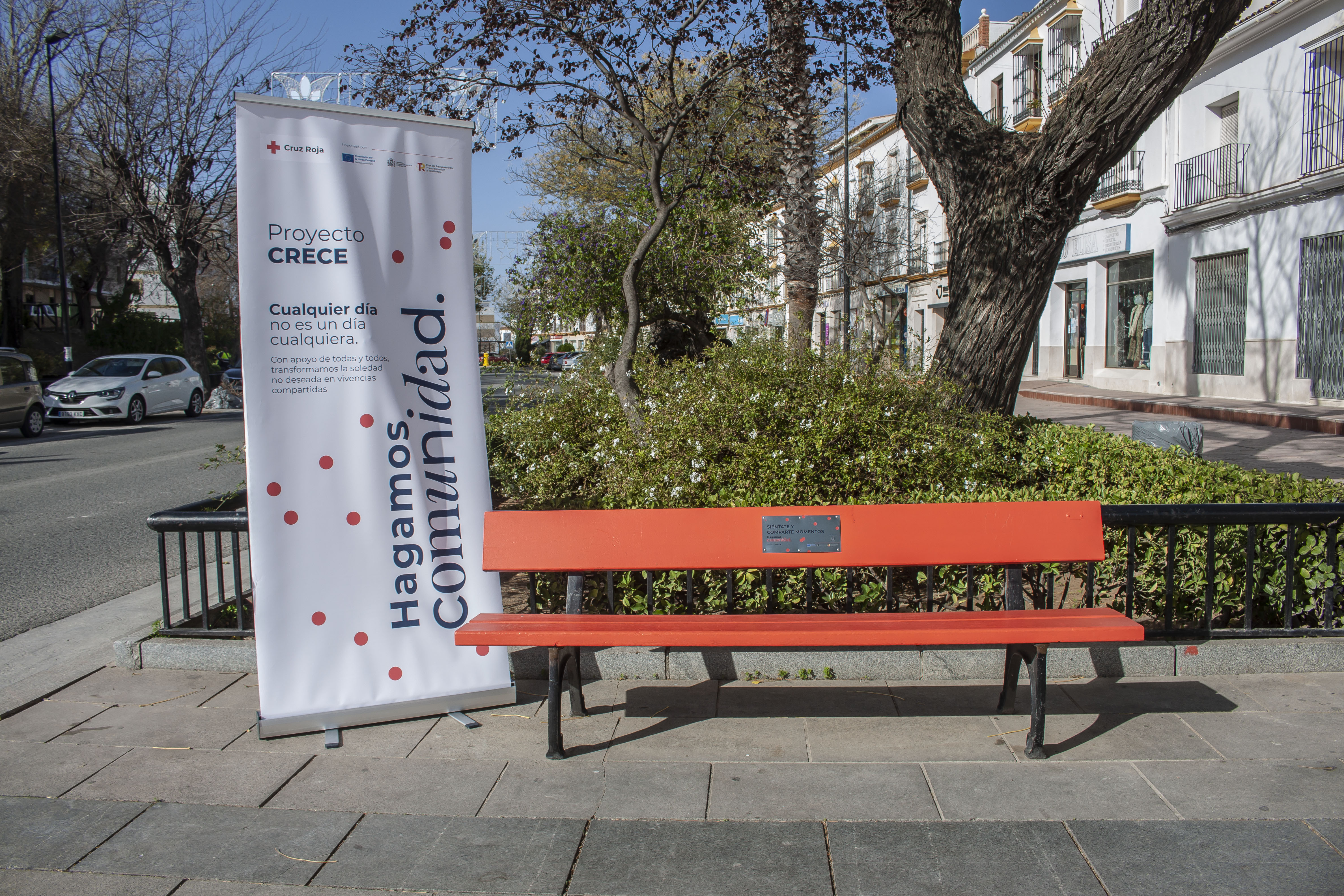 Como símbolo de este proyecto se ha instalado un banco para sentarse en plena avenida de Andalucía. El banco lleva colocada una placa con el mensaje: SIÉNTATE Y COMPARTE MOMENTOS -HAGAMOS COMUNIDAD.