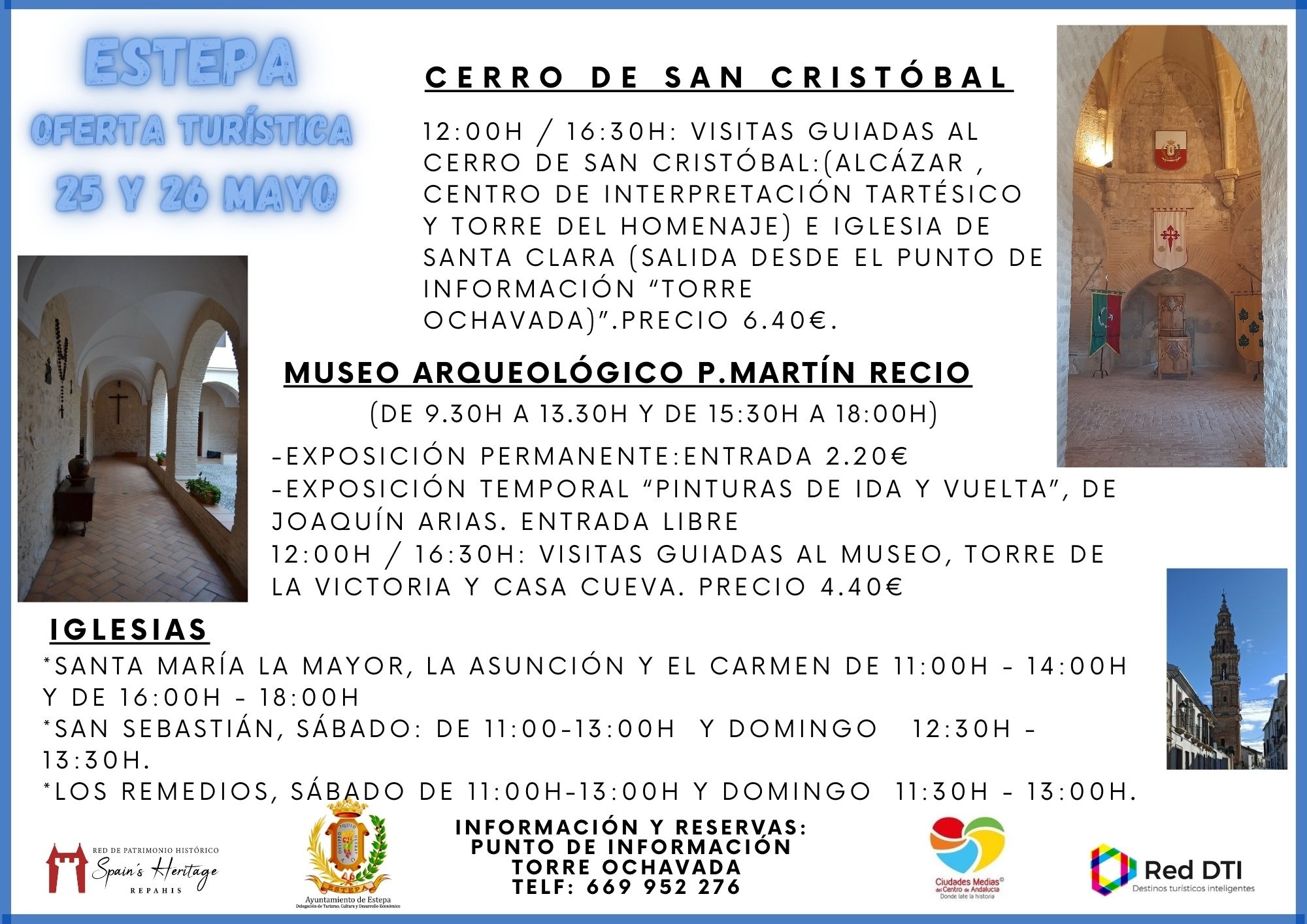 12:00h / 16:30H: Visitas guiadas al Cerro de San Cristóbal: (Alcázar , Centro de Interpretación Tartésico y Torre del Homenaje) e Iglesia de Santa Clara.