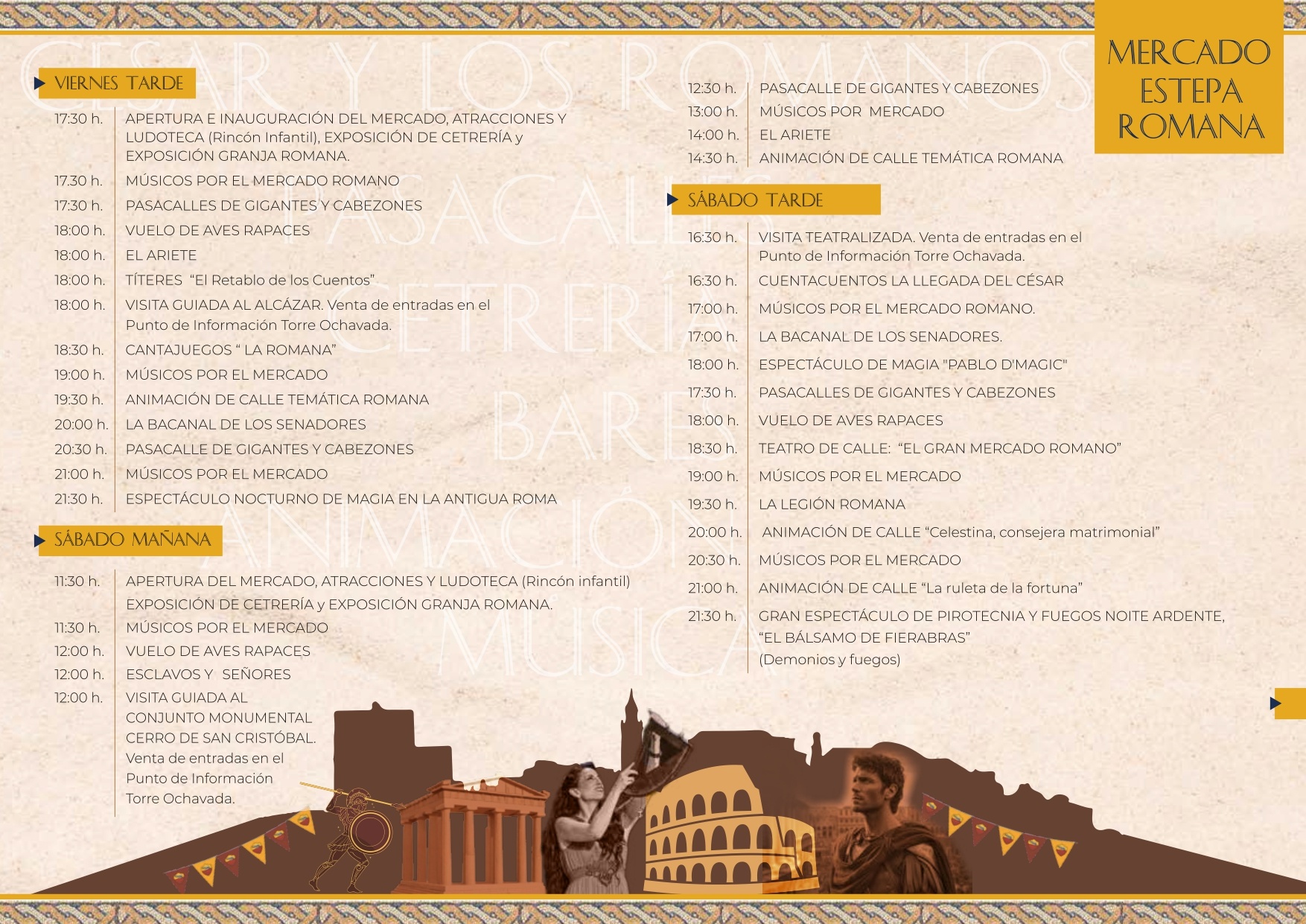 Desde la Delegación de Turismo, Cultura y Desarrollo Económico se ha organizado un mercado romano del 18 al 20 de octubre de 2024, en un enclave privilegiado como es el Cerro de San Cristóbal.