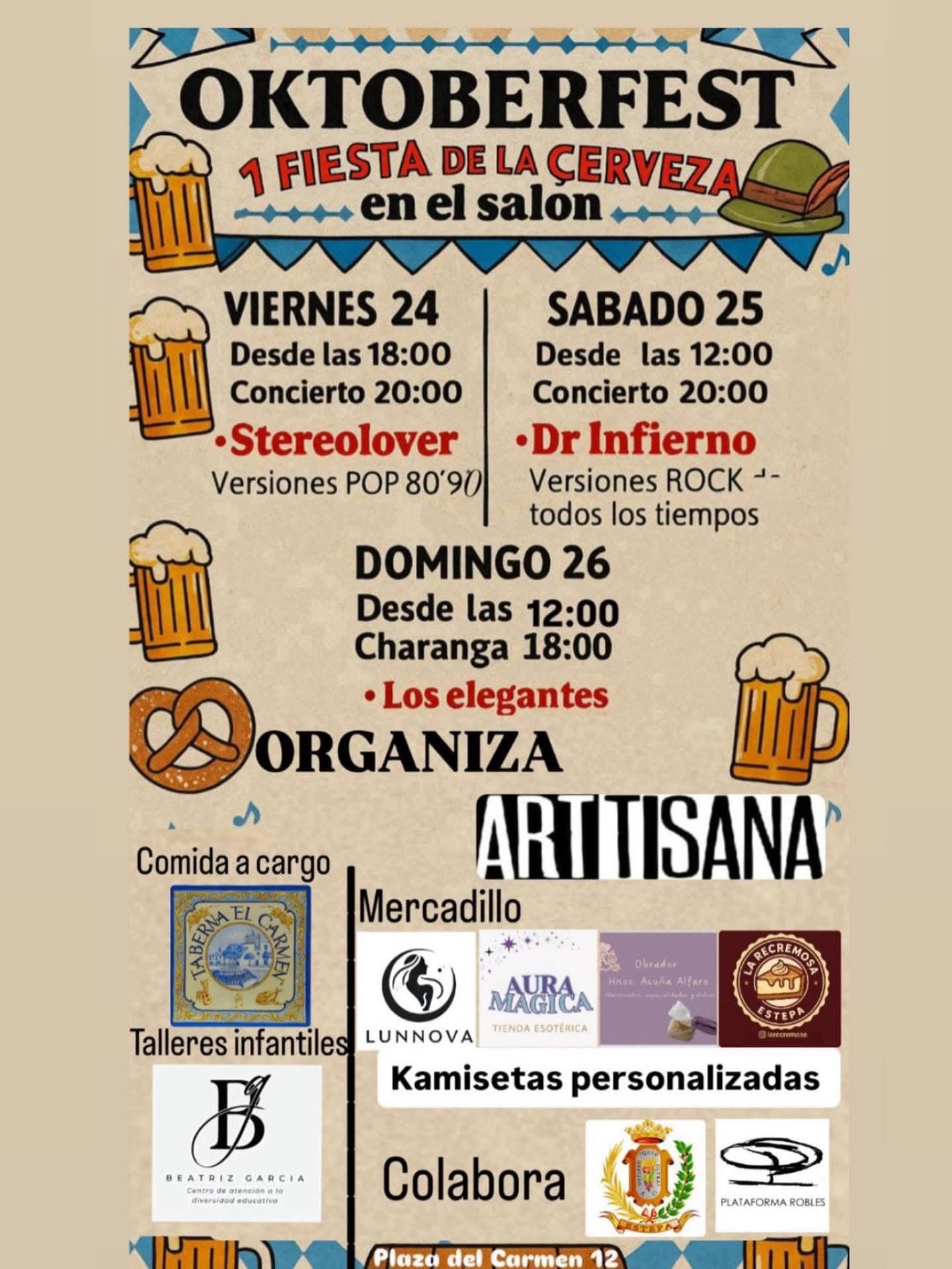 Viernes, 24 de octubre - 18 h. Fiesta de la Cerveza - 20 h. Concierto de Stereolover