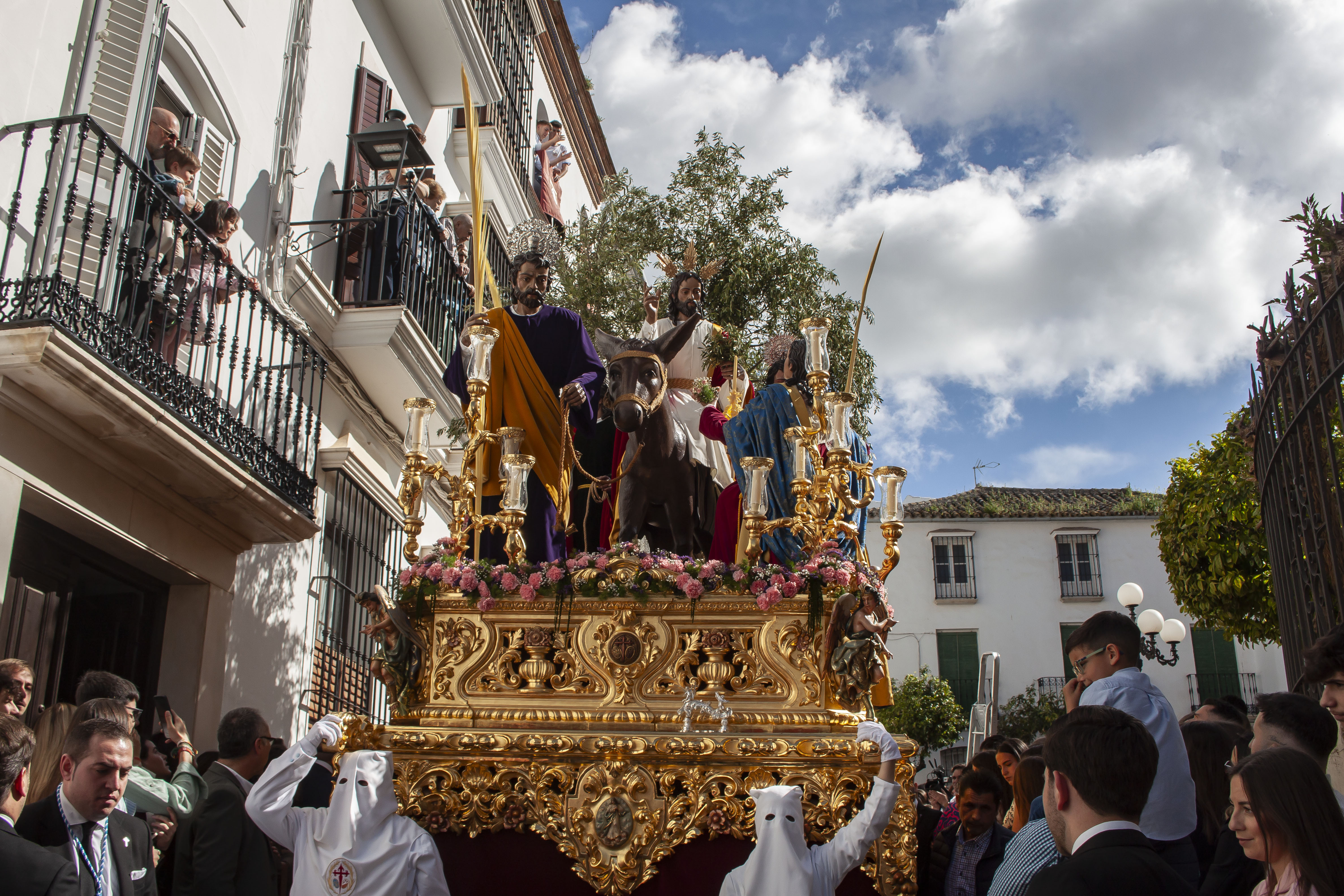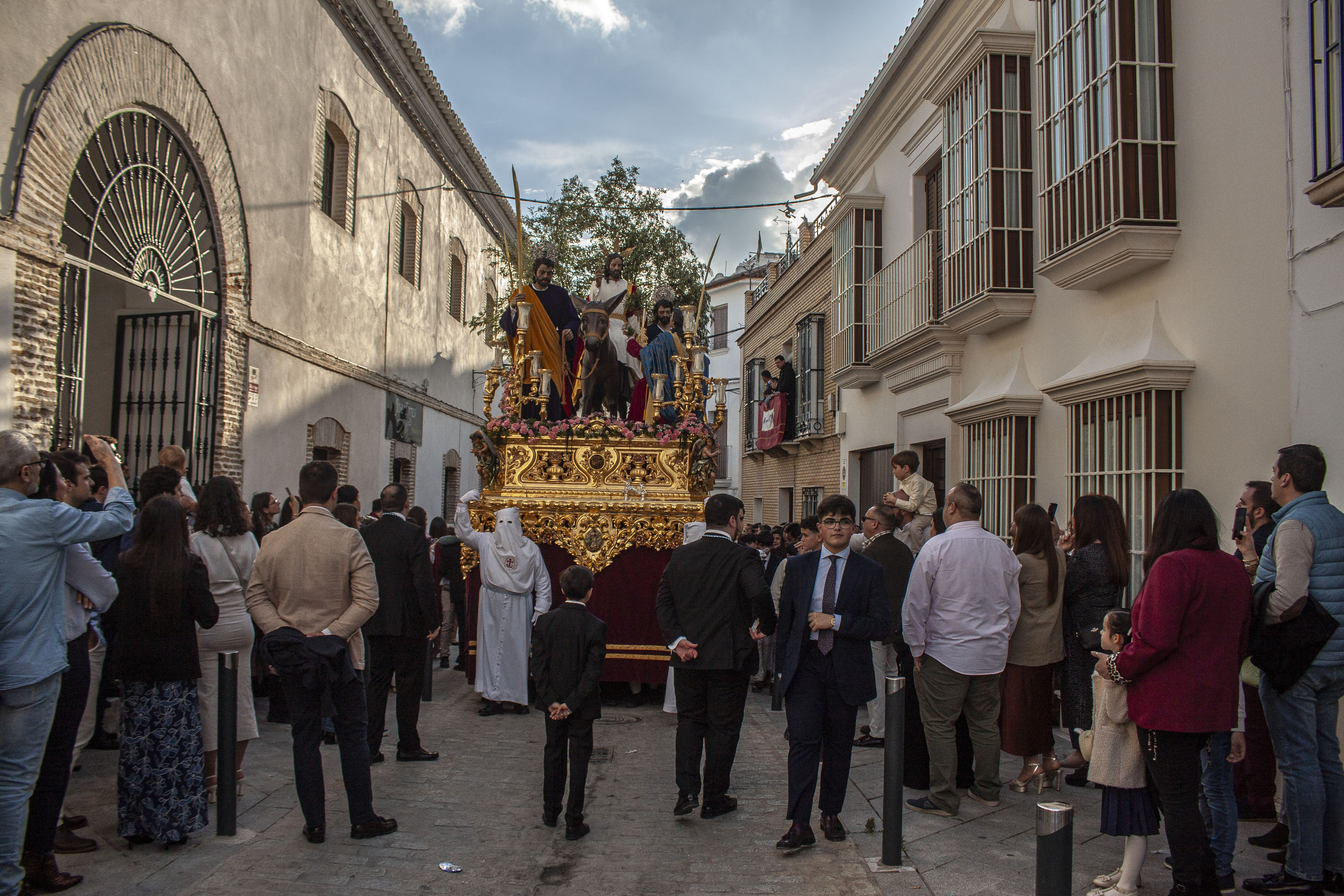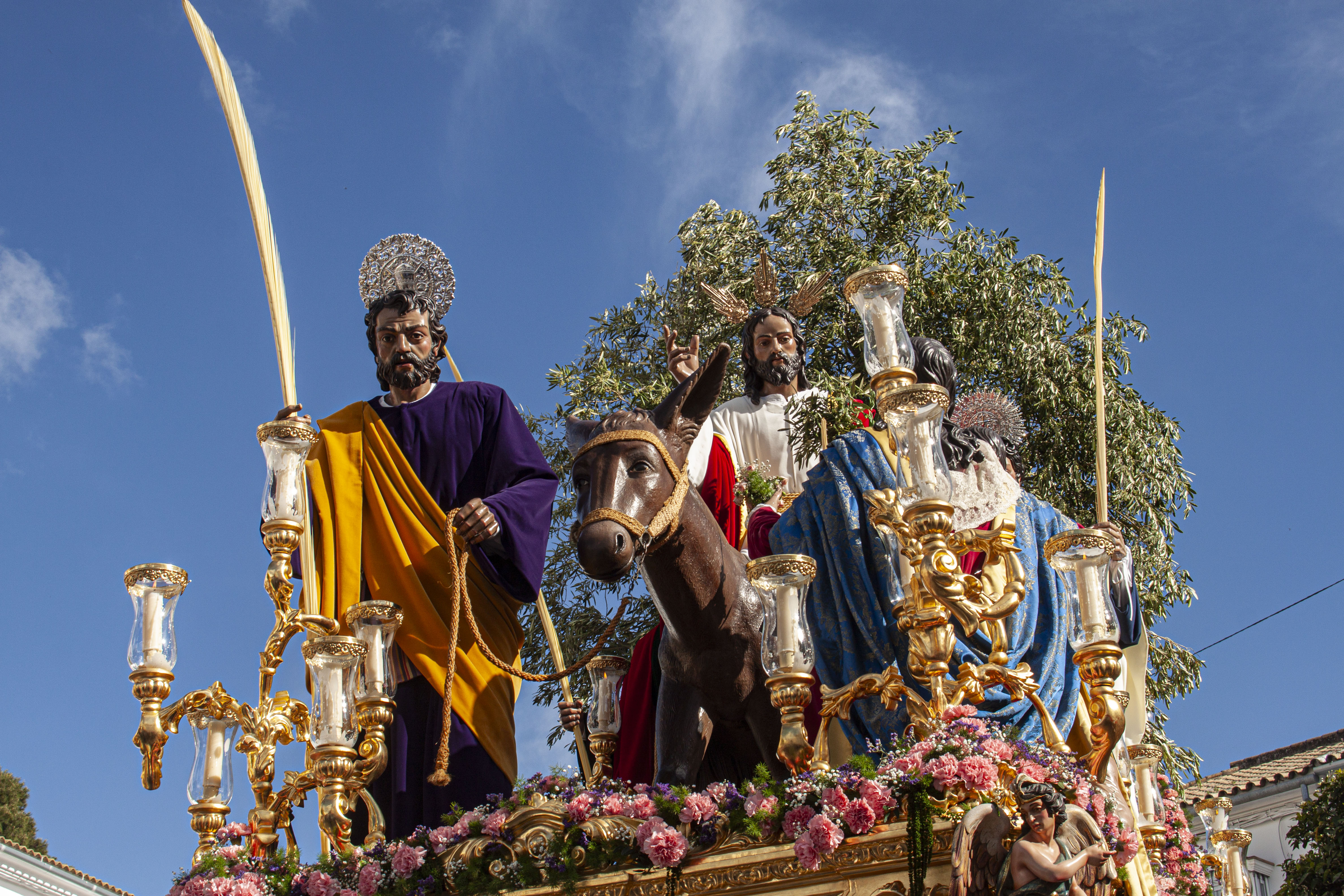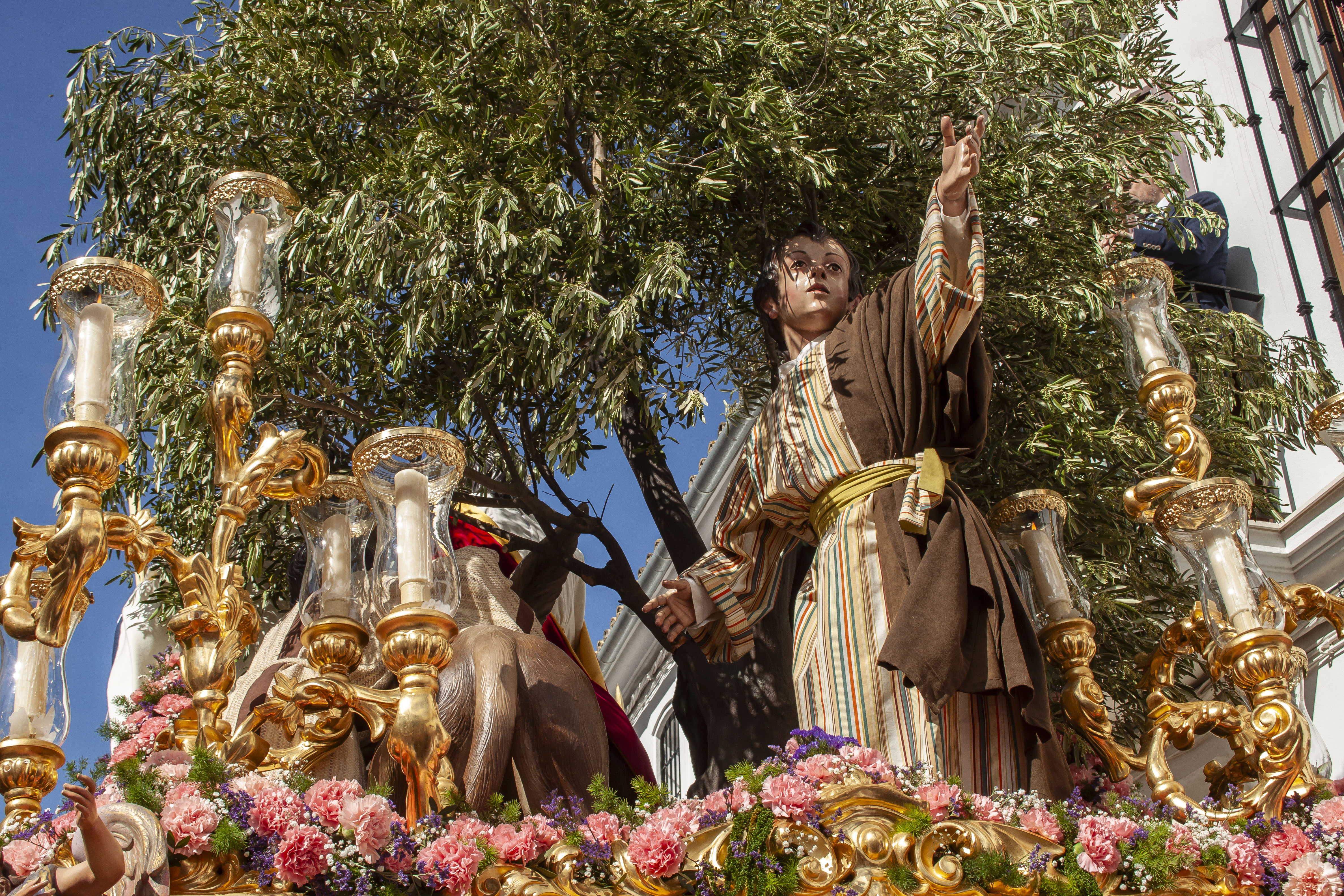 Pasos: Uno. 35 costaleros llevan el paso de la Borriquita