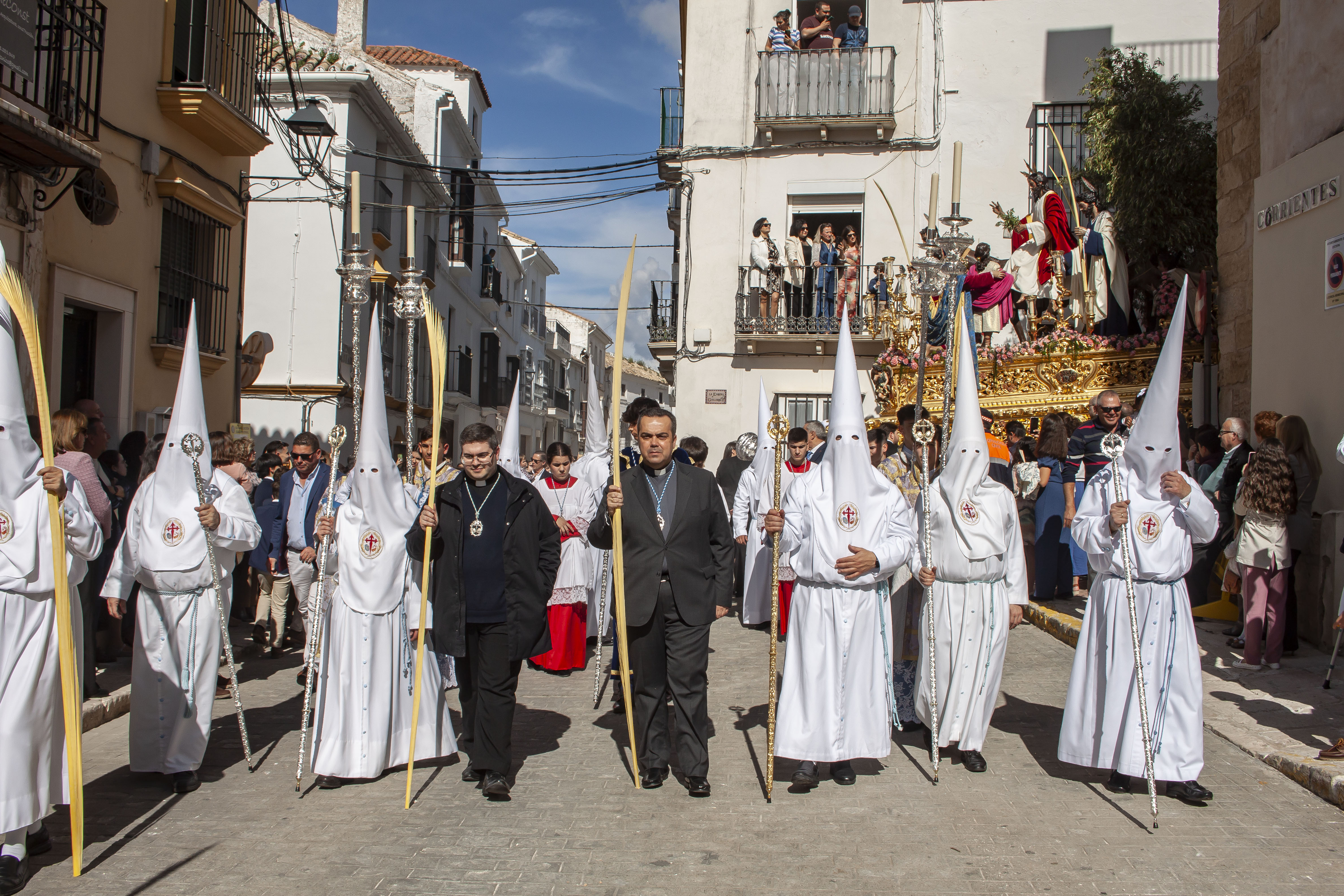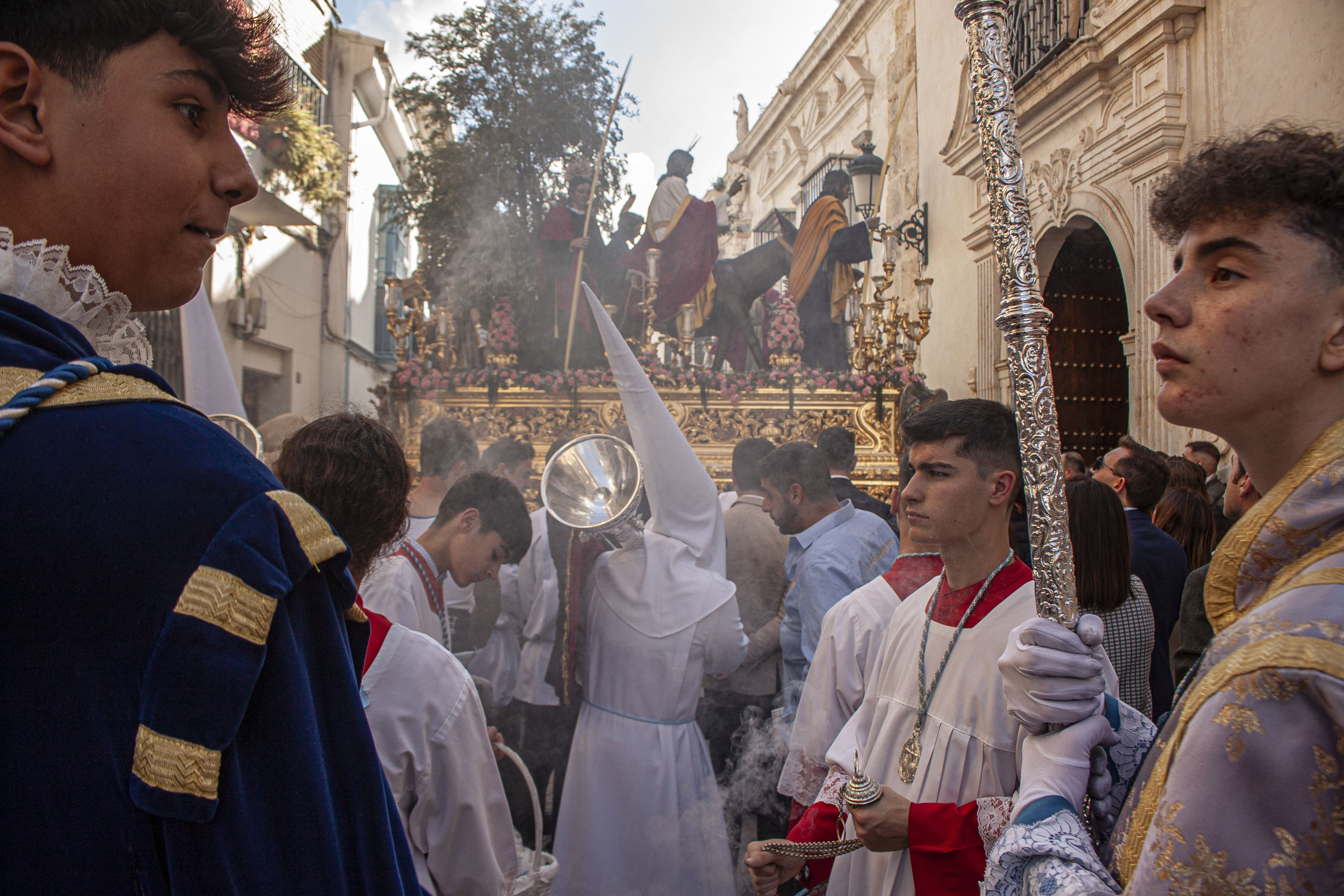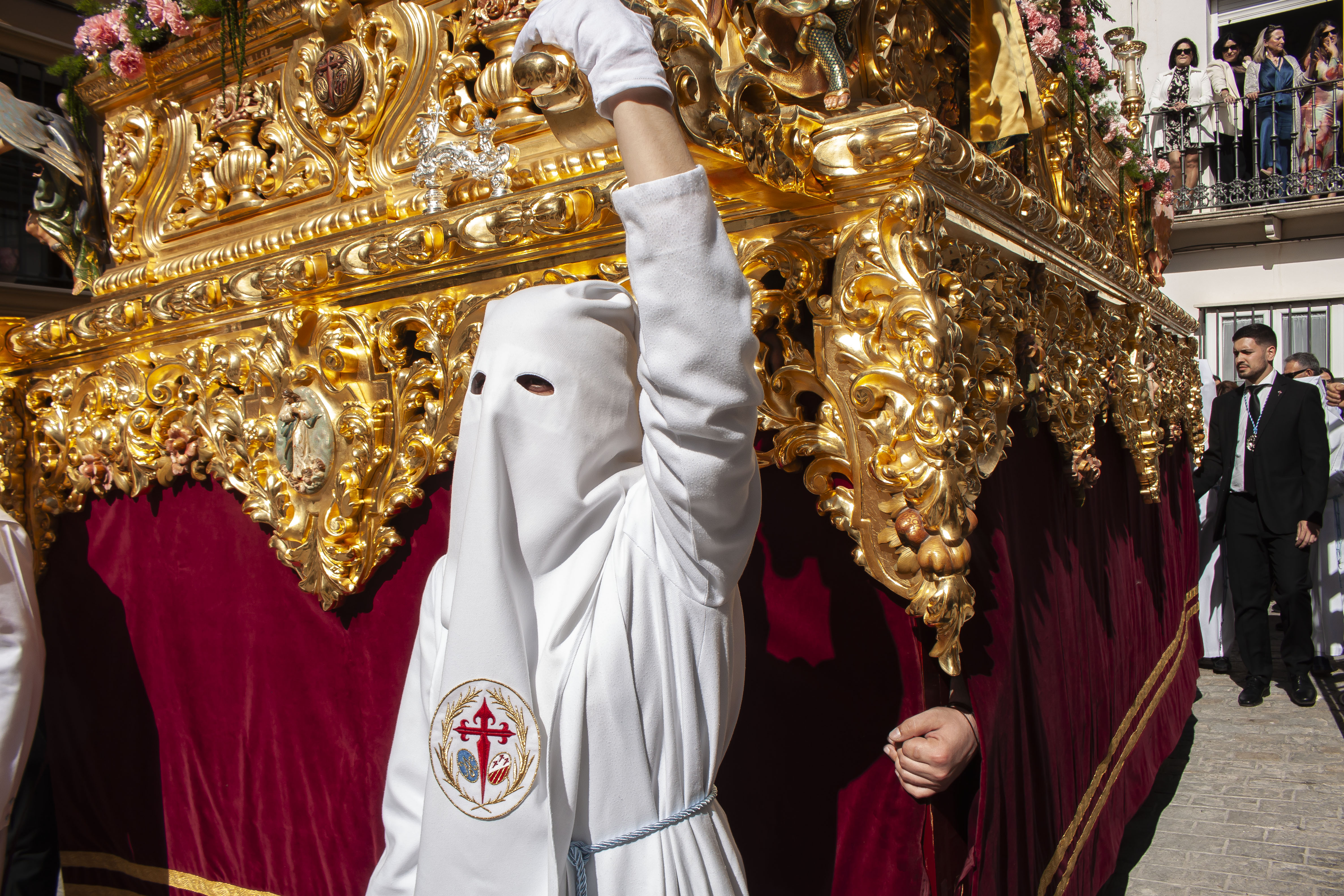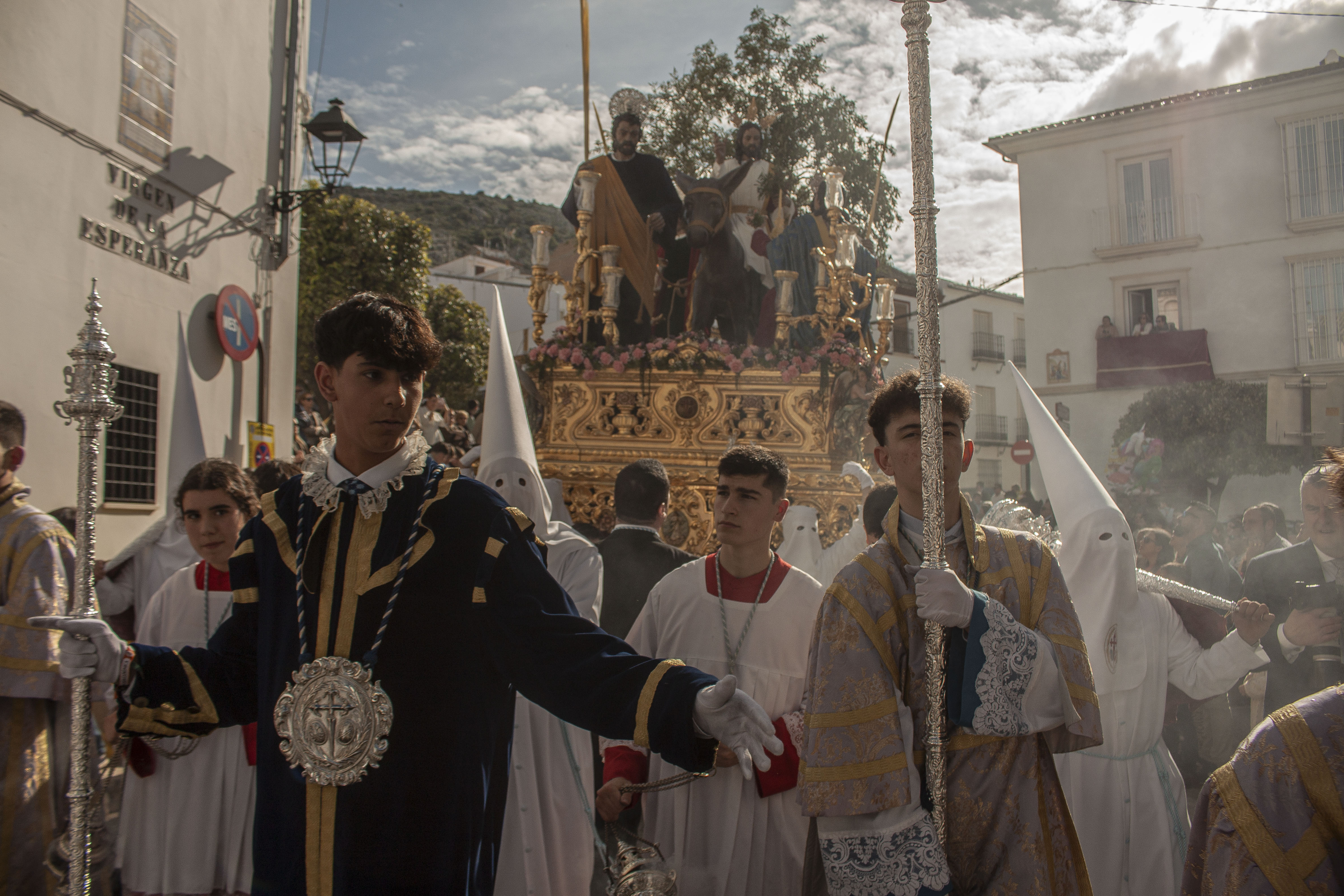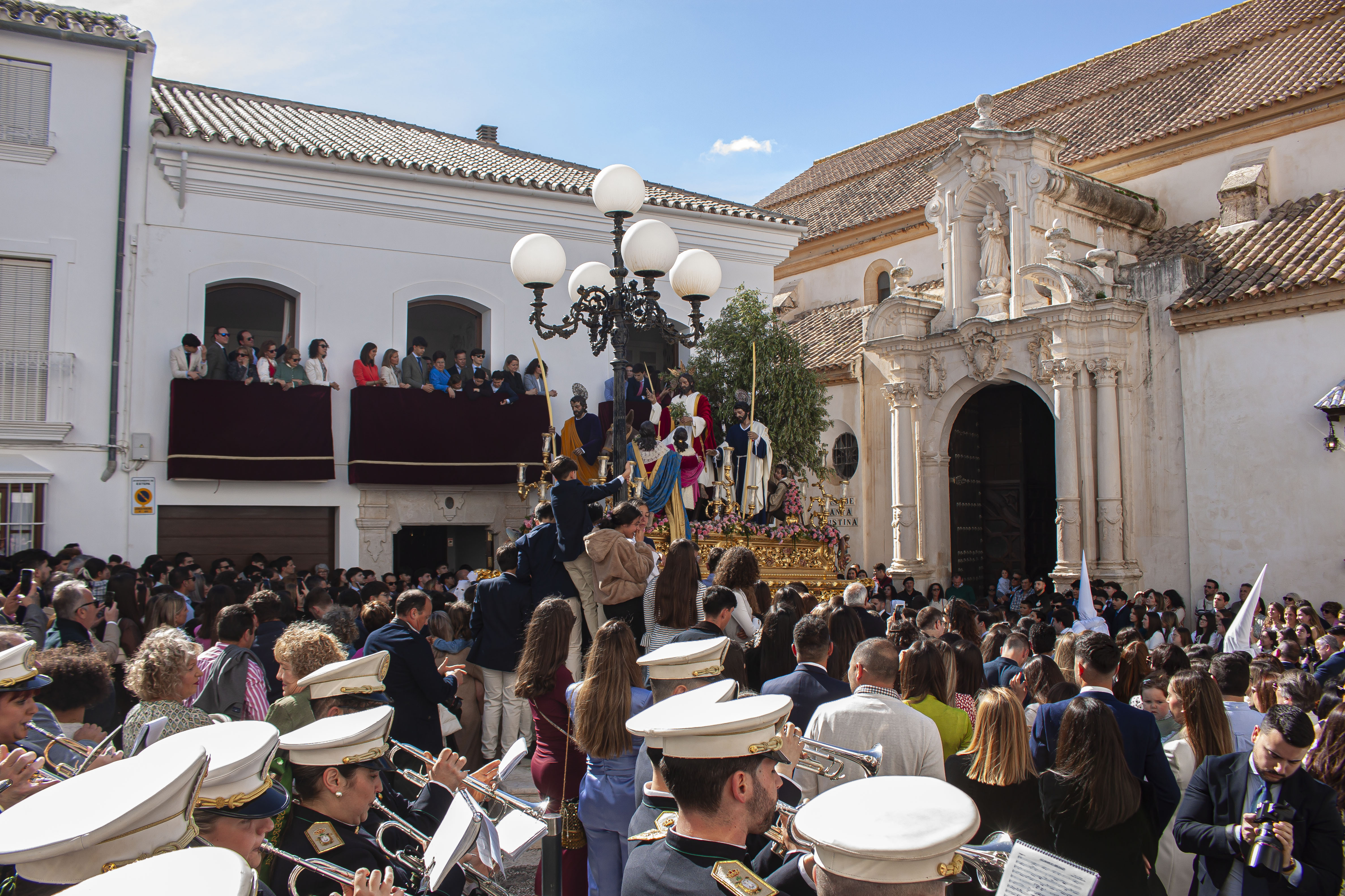 Pasos: Uno. 35 costaleros llevan el paso de la Borriquita
