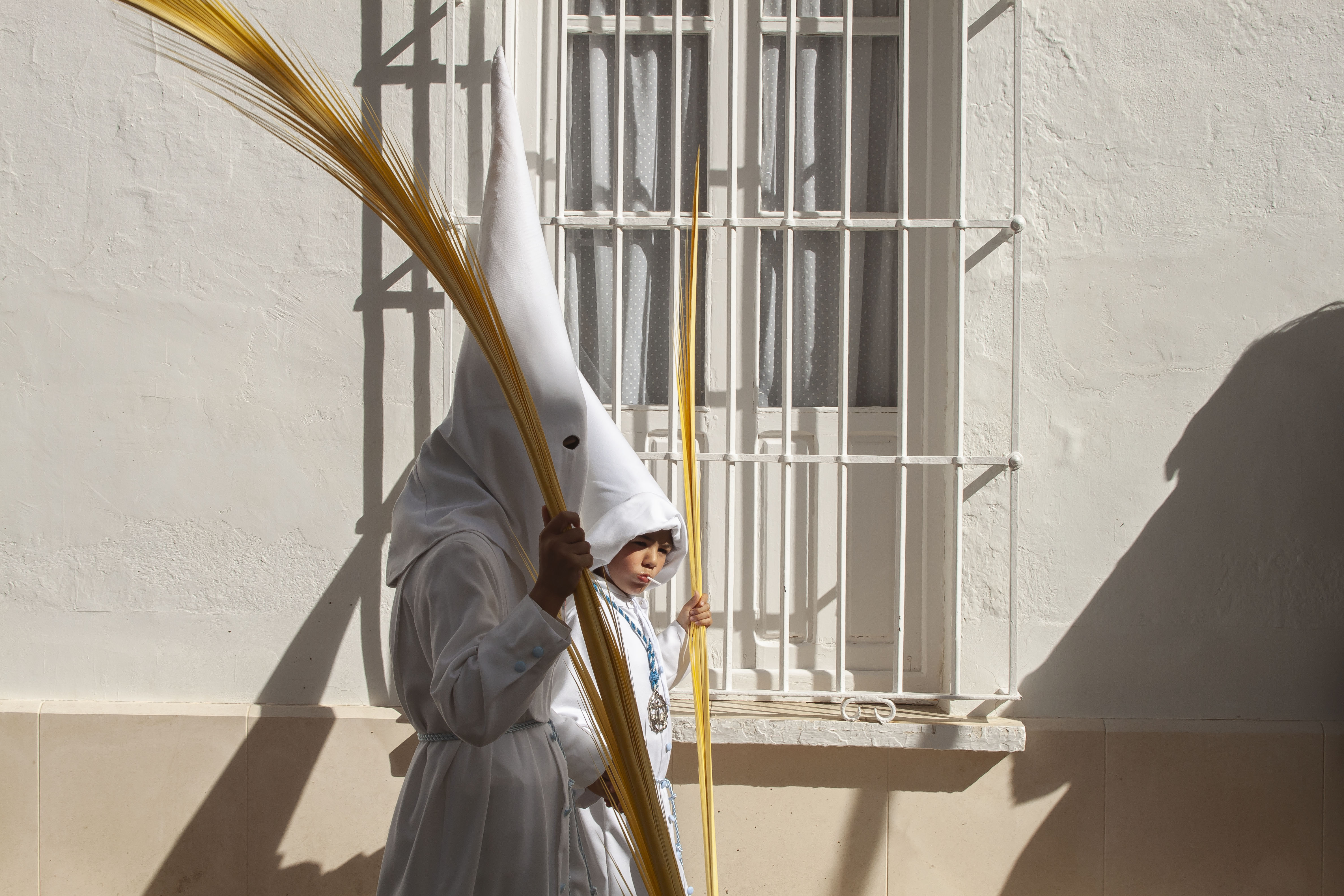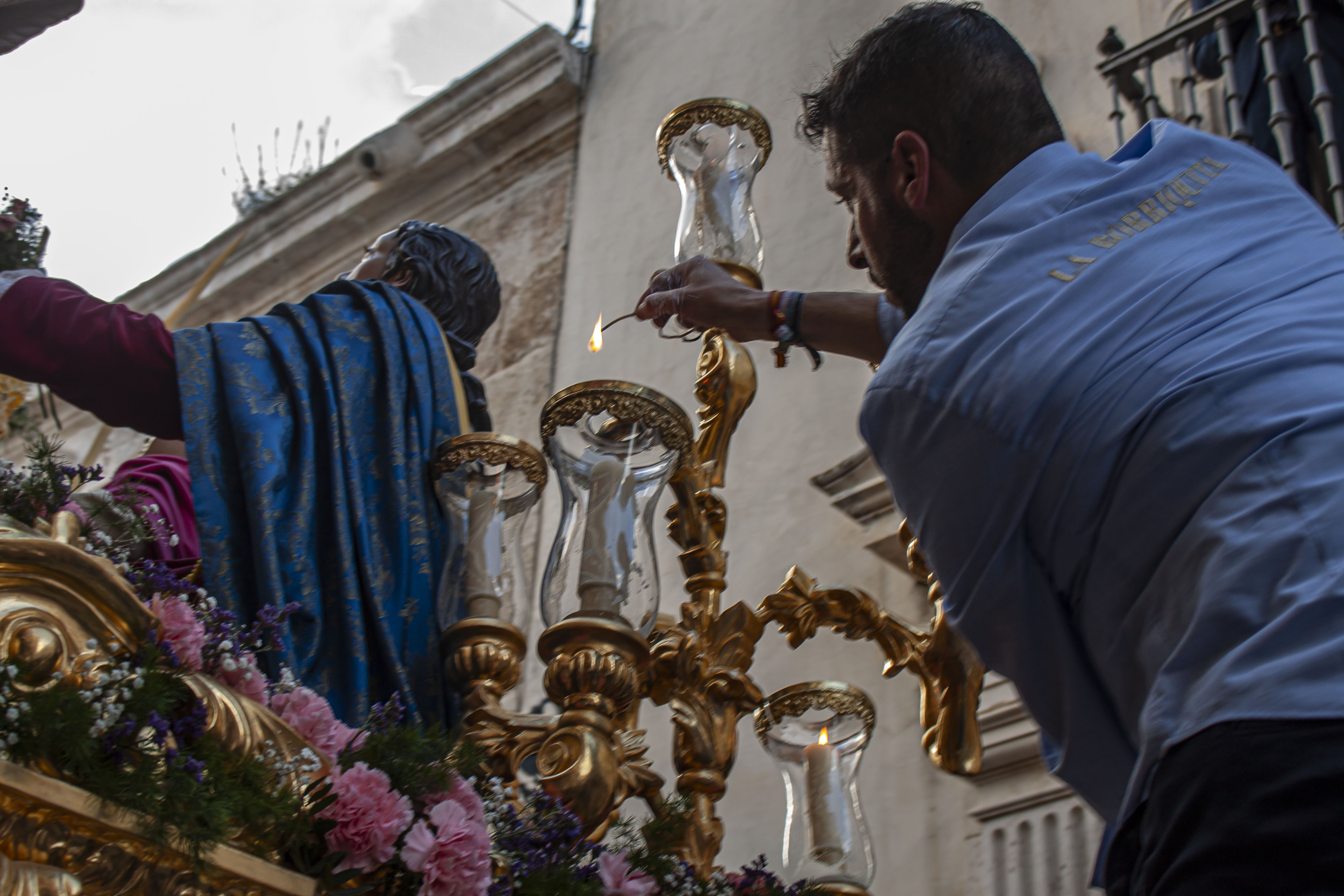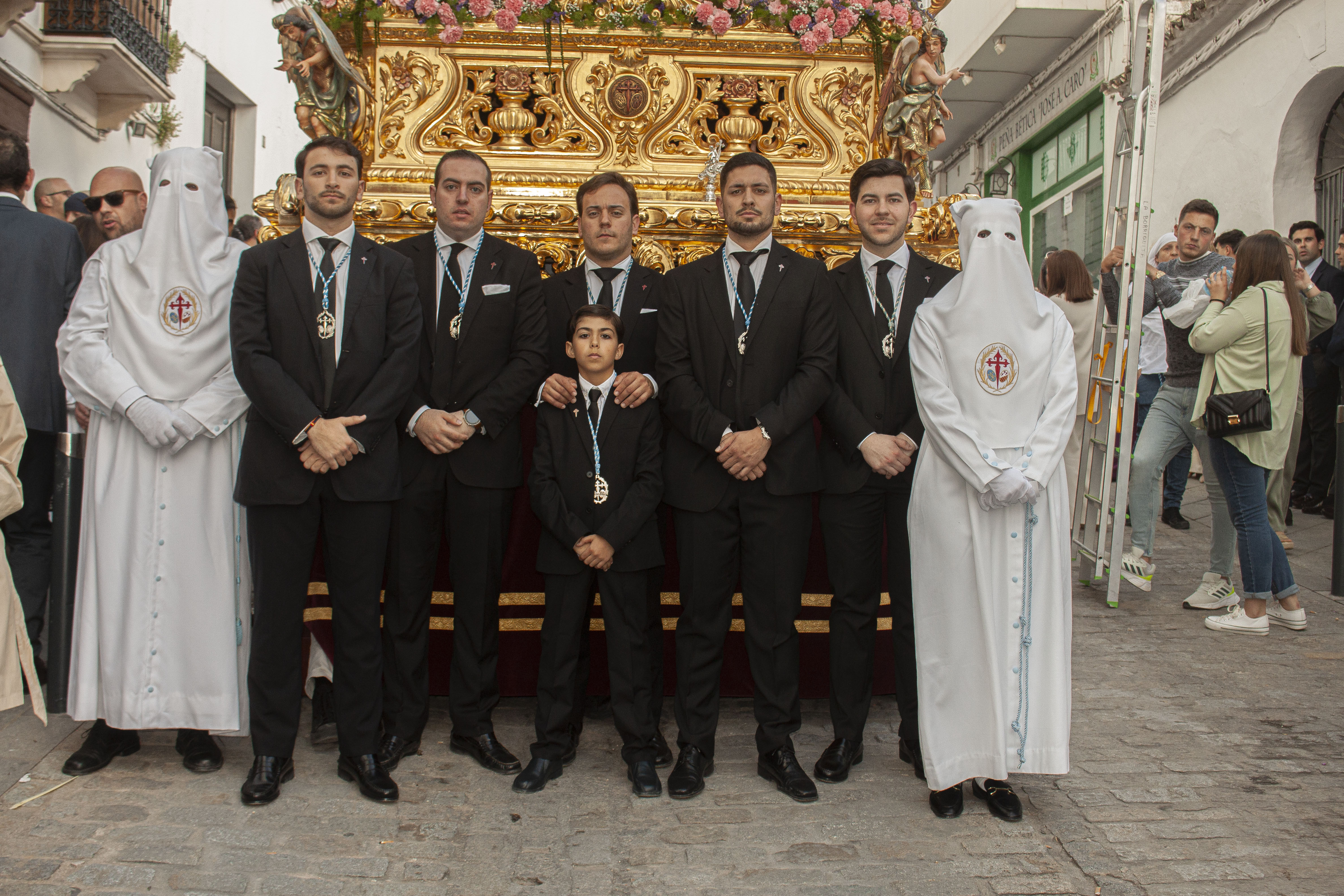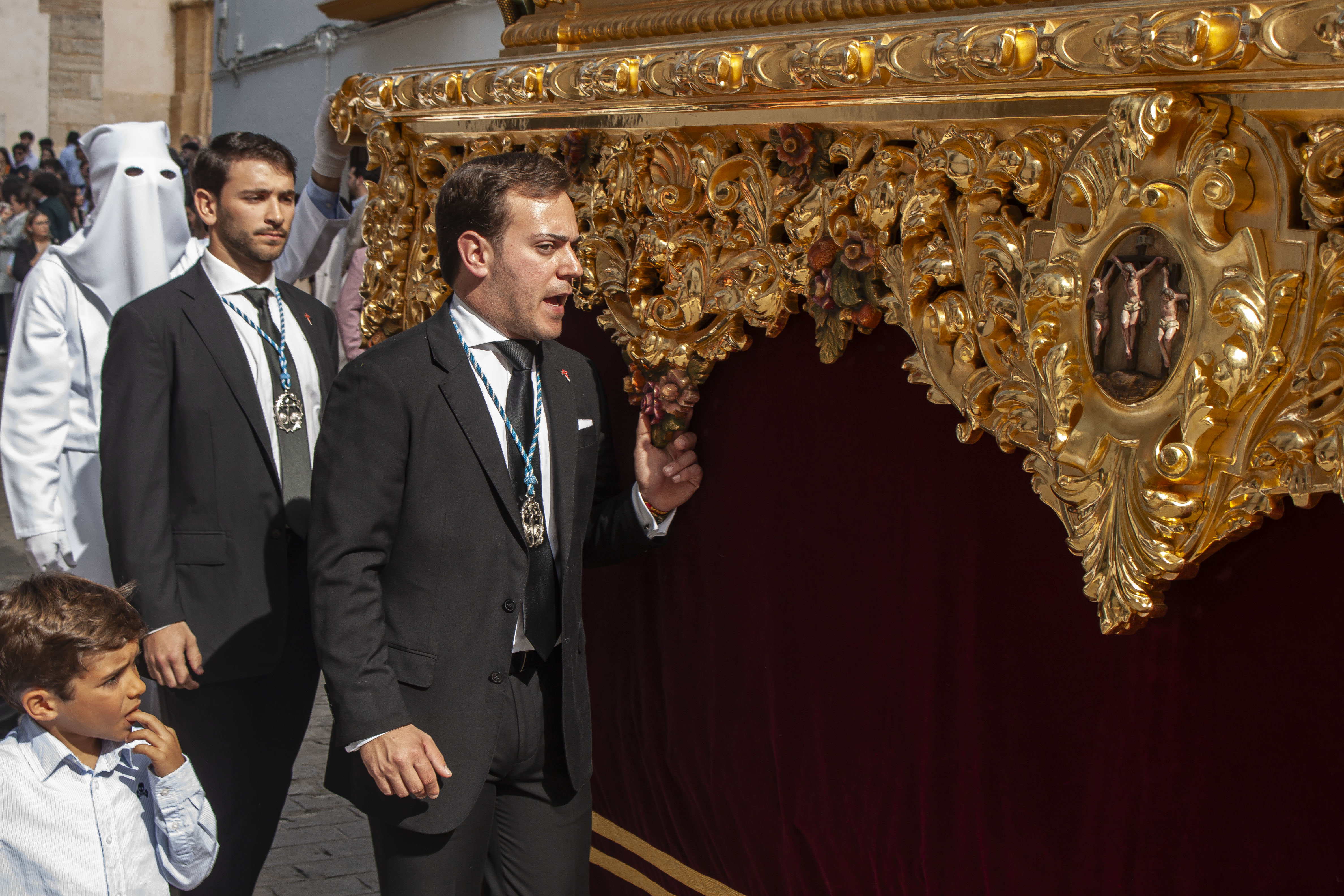 Pasos: Uno. 35 costaleros llevan el paso de la Borriquita
