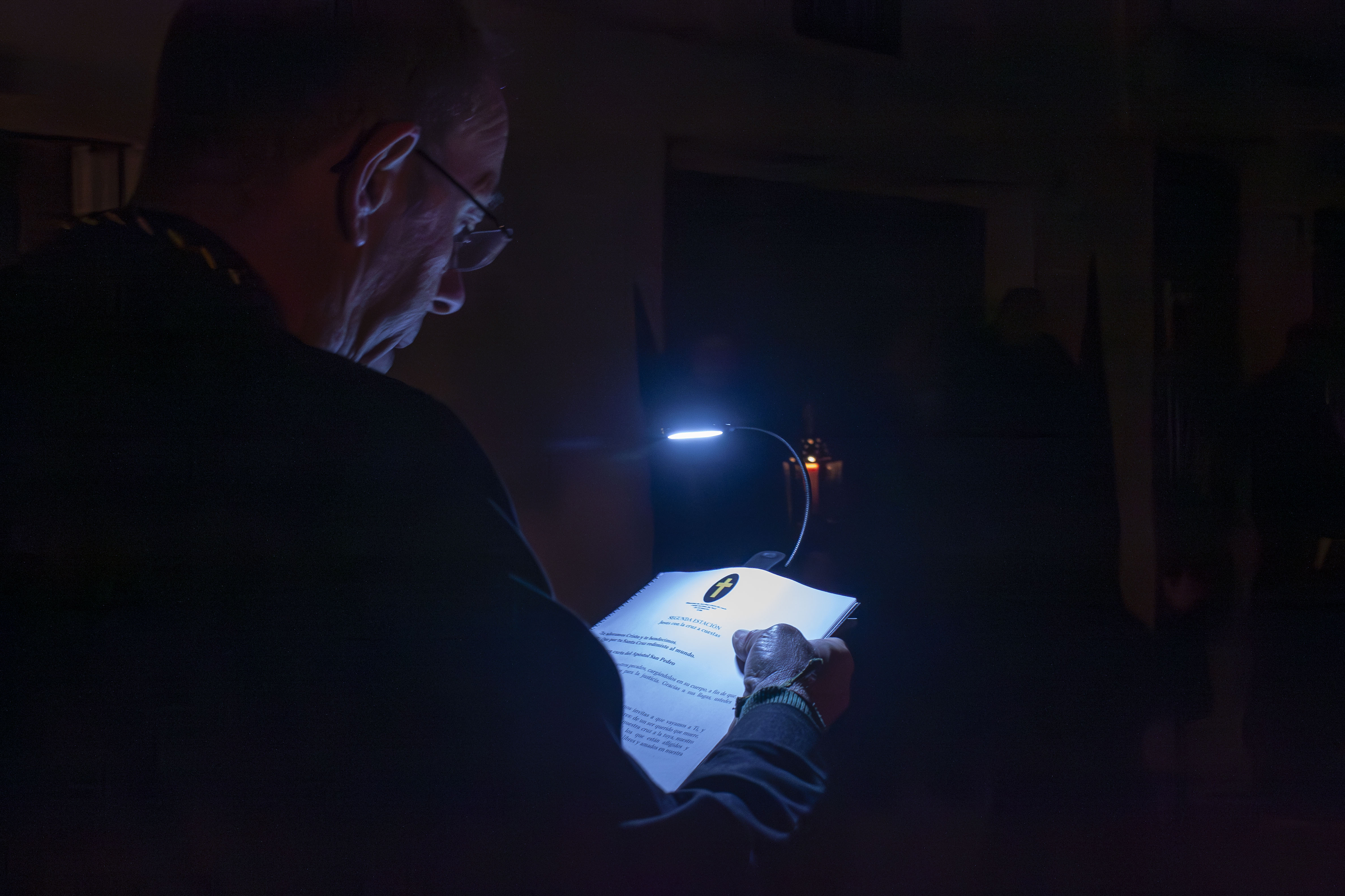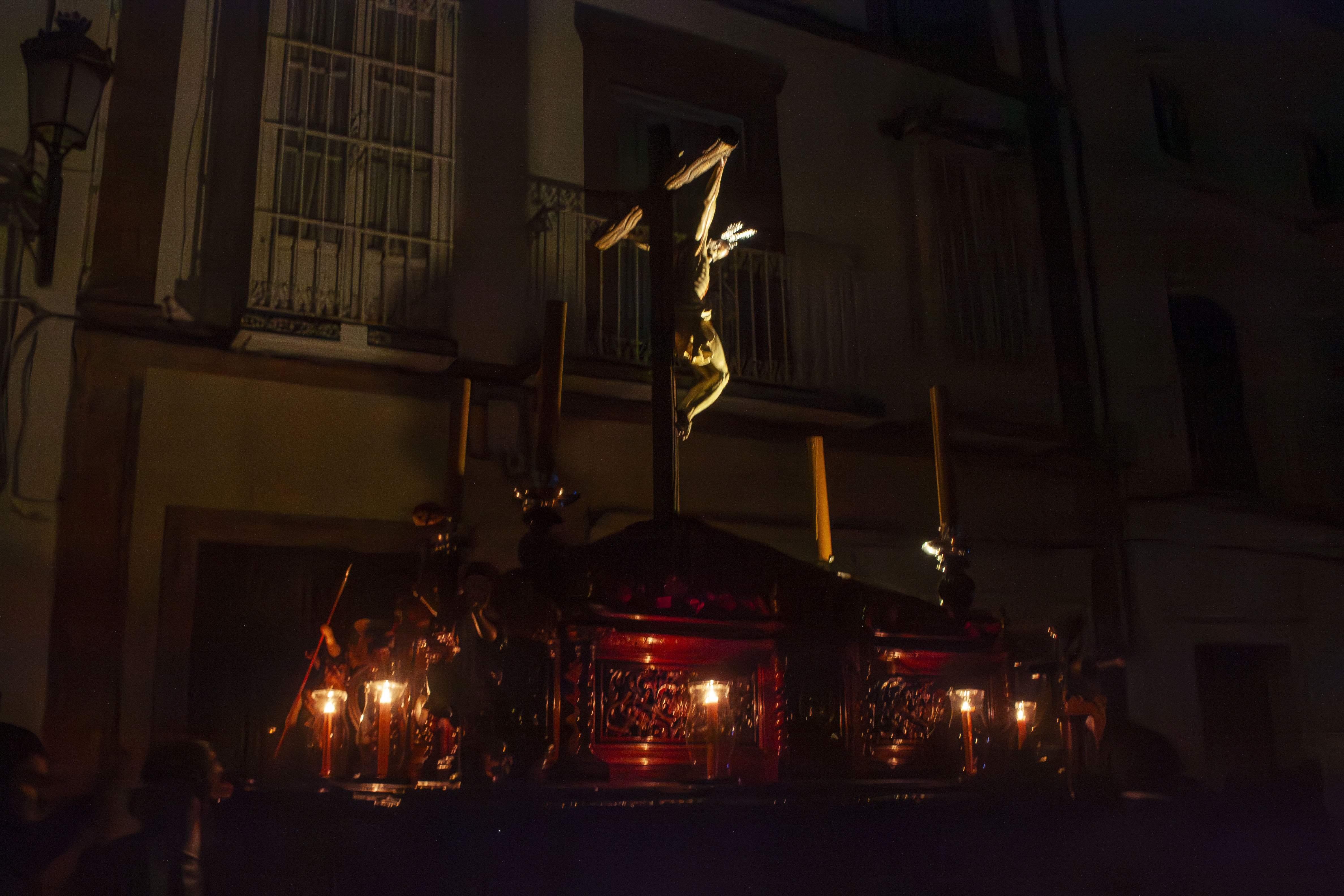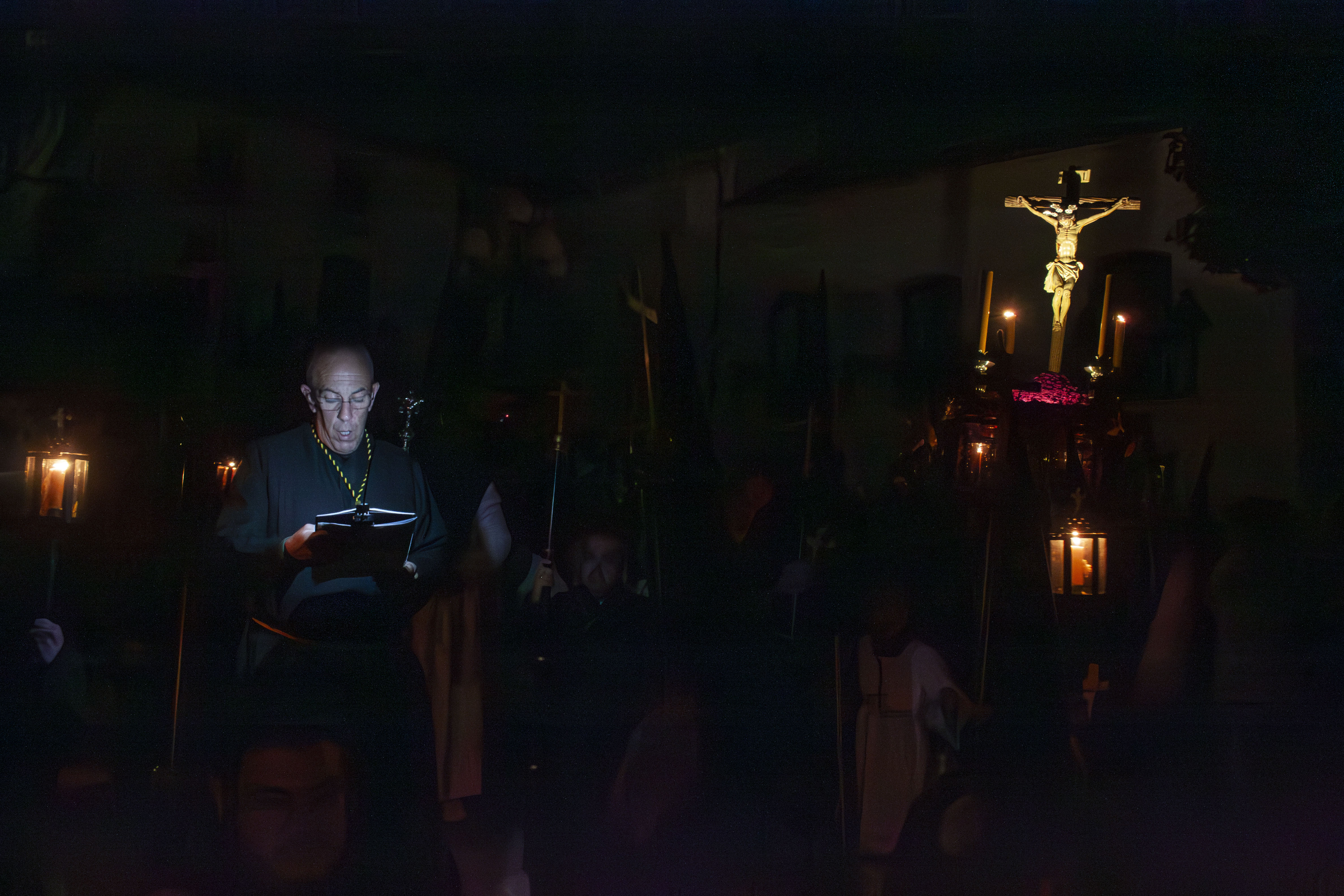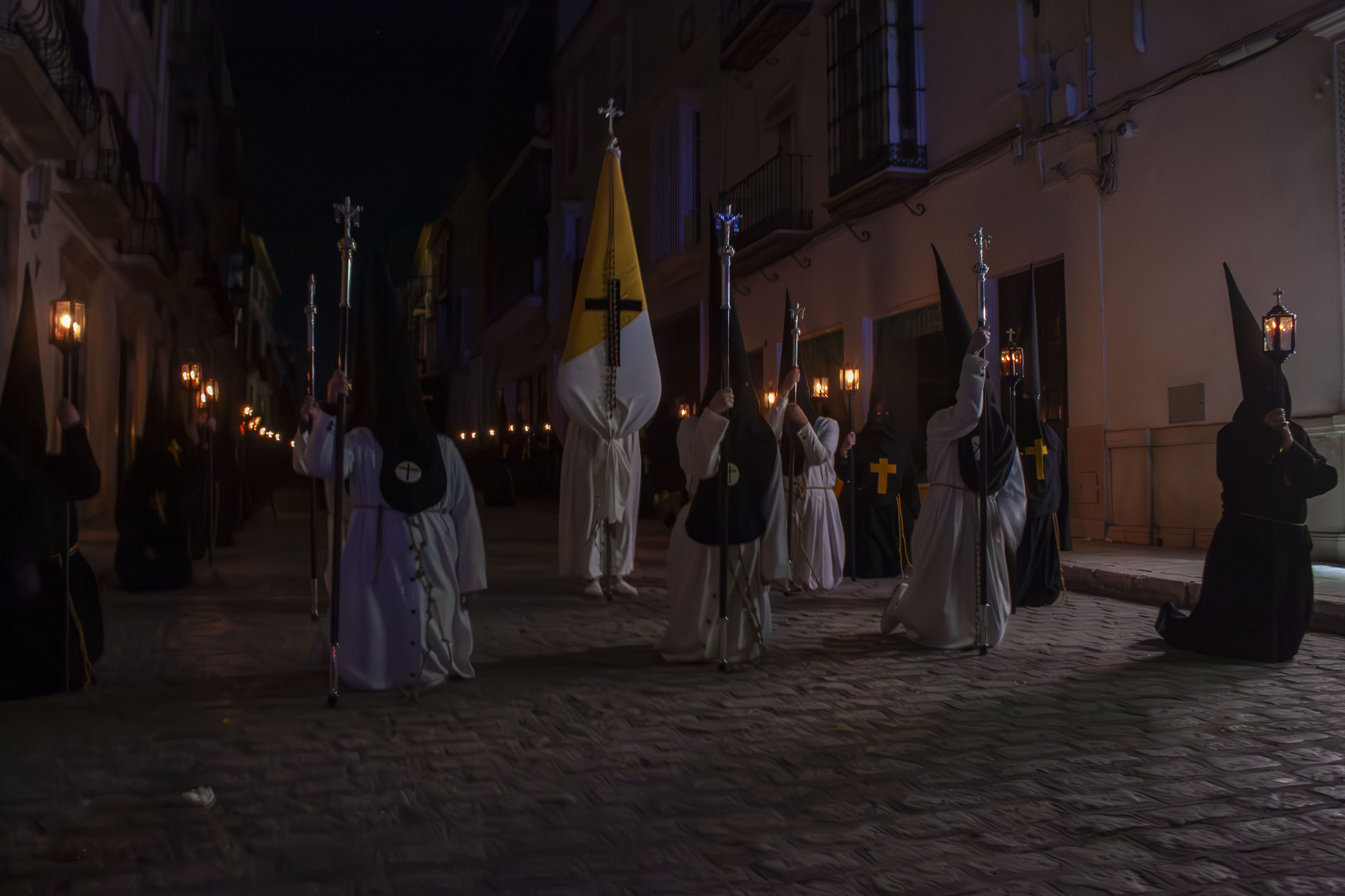 Música: No lleva. El discurrir de la cofradía lo marca el sonido de un ronco tambor.