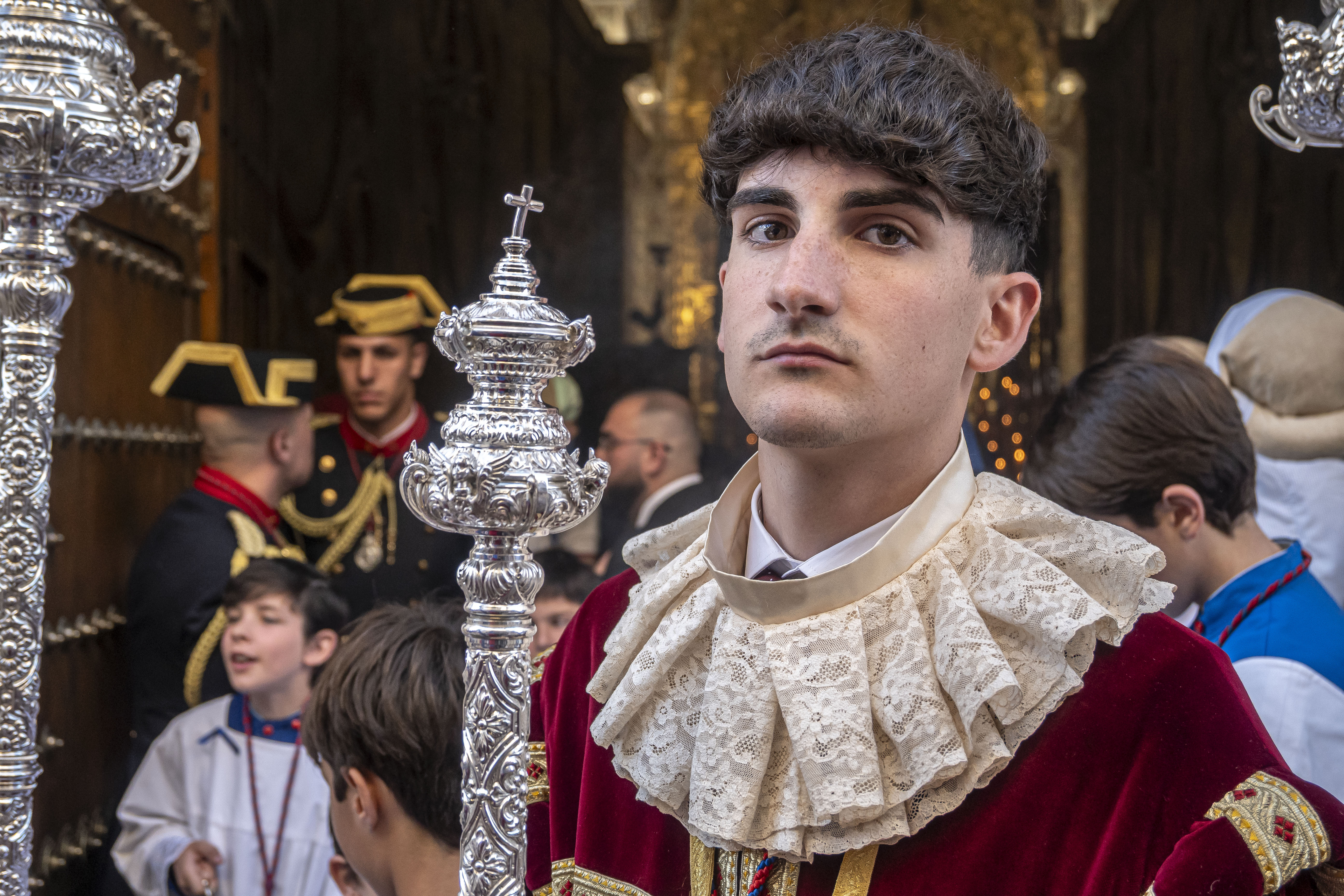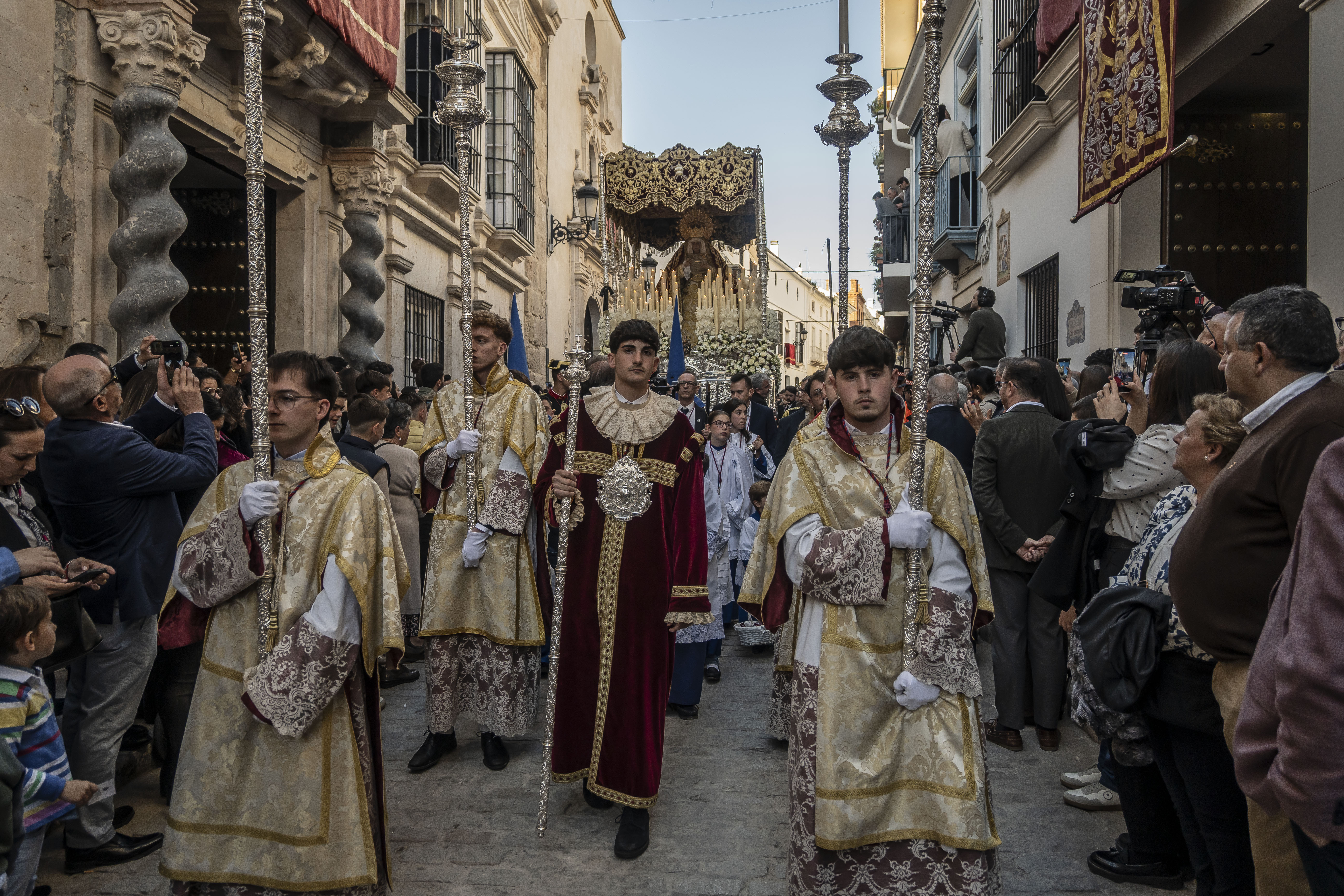 Capataces: Francisco Muñoz Sánchez y Antonio Jesús Marín Fernández en San Pedro. Antonio Borrego González y Jesús Rodríguez Rodríguez en el palio.