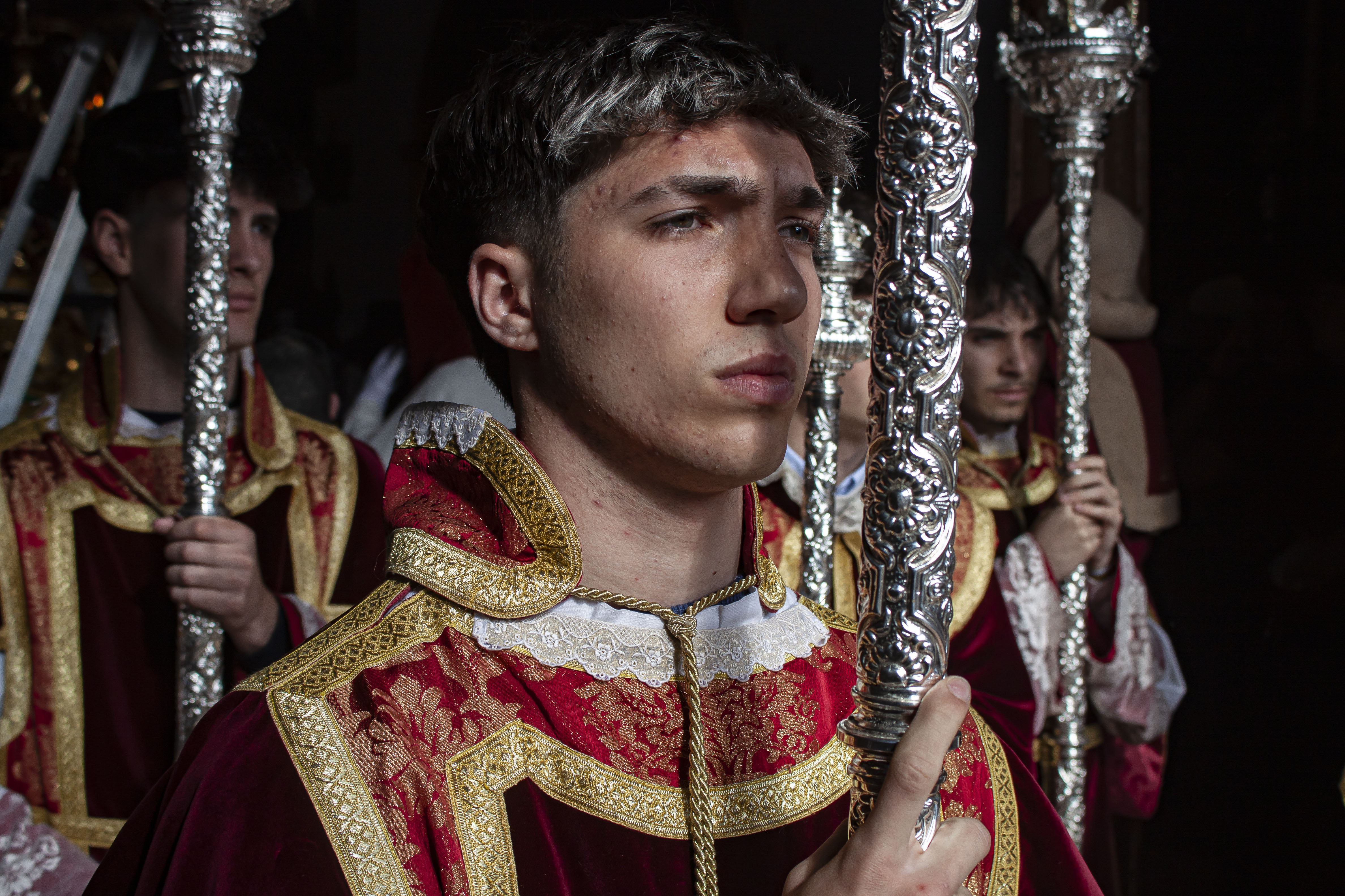 Pasos: Dos. El Dulce Nombre calza 35 costaleros y el palio de la Virgen de la Paz, que es llevado por 30 costaleros.