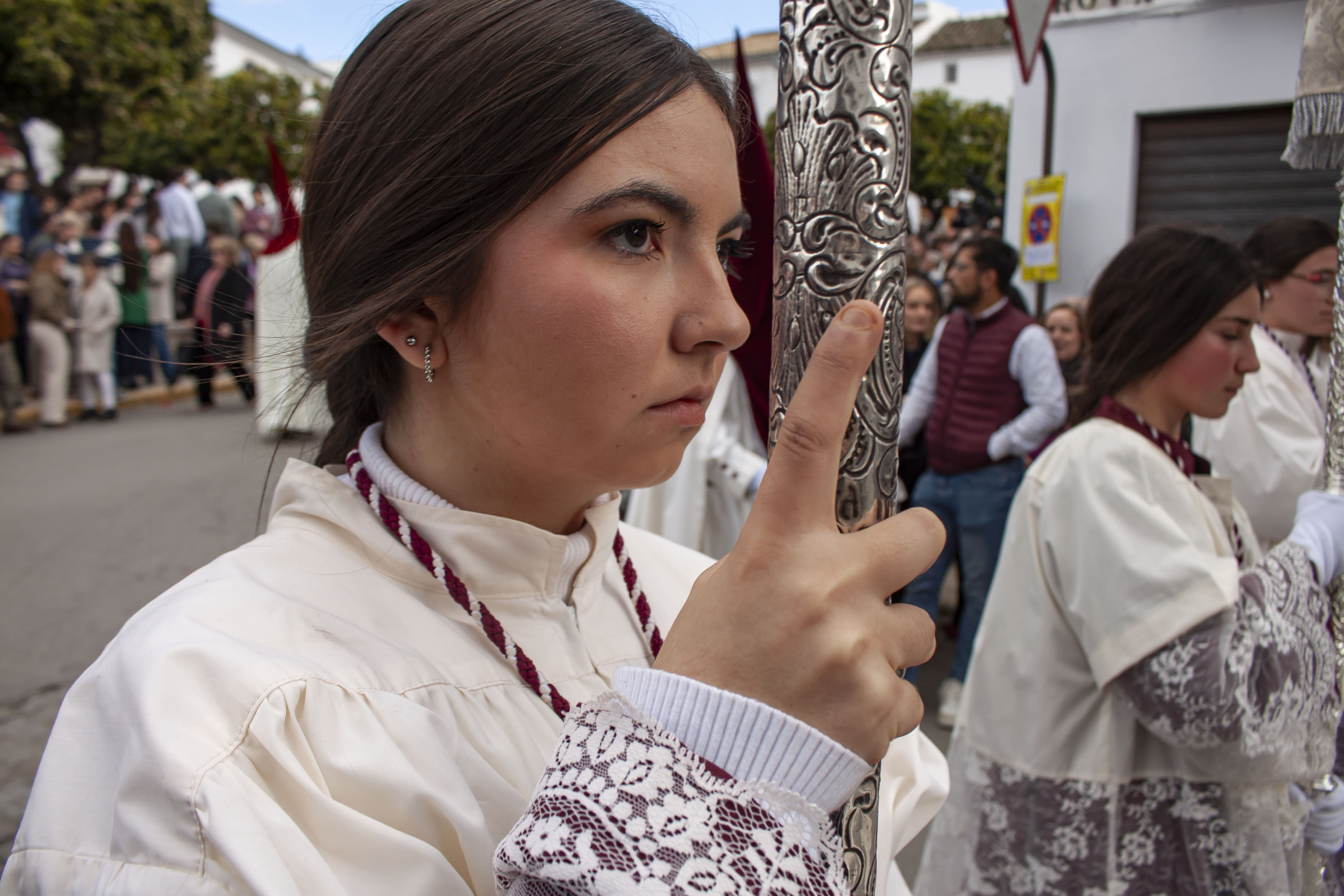 Música: Agrupación Musical Dulce Nombre de Jesús, propia de la Hermandad, tras el paso de Misterio. El palio es acompañado por la Banda de Música de Estepa (BAME).