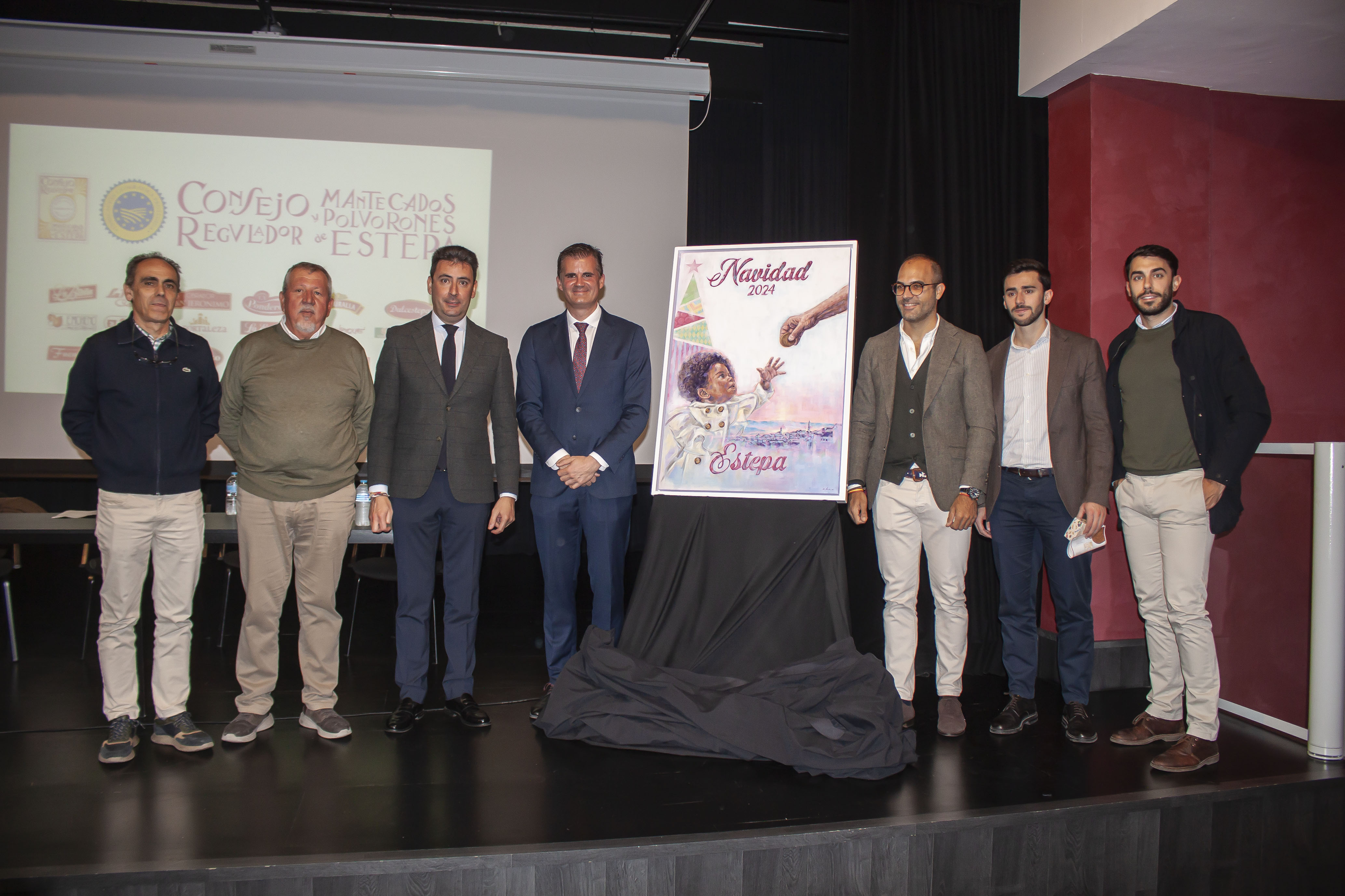 La presentación tuvo lugar en La Casa de la Cultura de Estepa, donde autoridades locales se dieron cita para conocer la propuesta que acompañará las celebraciones navideñas de este año. En este caso, el acto ha sido dirigido por Carmen Prados y en el que estuvo presente el alcalde de Estepa, Antonio Jesús Muñoz Quirós, José María Fernández, presidente del consejo Regulador de la doble IGP “Mantecados de Estepa” y “Polvorones de Estepa” y el propio cartelista, Marcos Moreno.