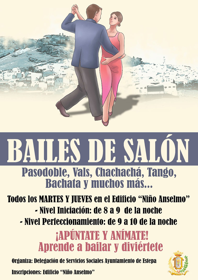 La delegación de Servicios Sociales del Ayuntamiento de Estepa organiza un taller de bailes de salón, donde podrás aprender a moverte al ritmo de bachata, cha cha cha, tango y muchos más.