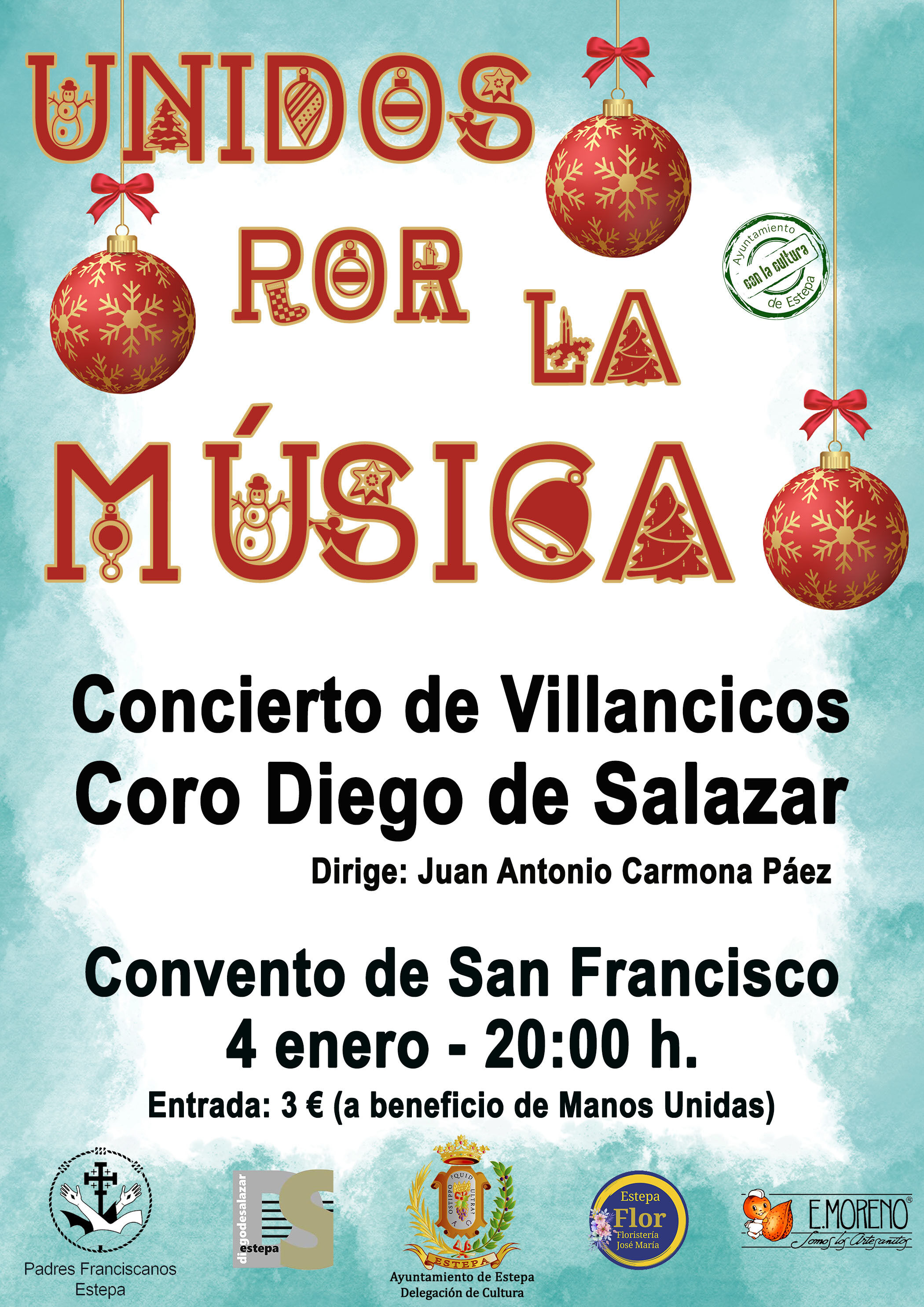 Como viene siendo habitual por estas fechas, desde la Delegación de Cultura, junto con Manos Unidas de Estepa y el Coro “Diego de Salazar”, organizan un concierto de Navidad en la iglesia del convento de San Francisco.
