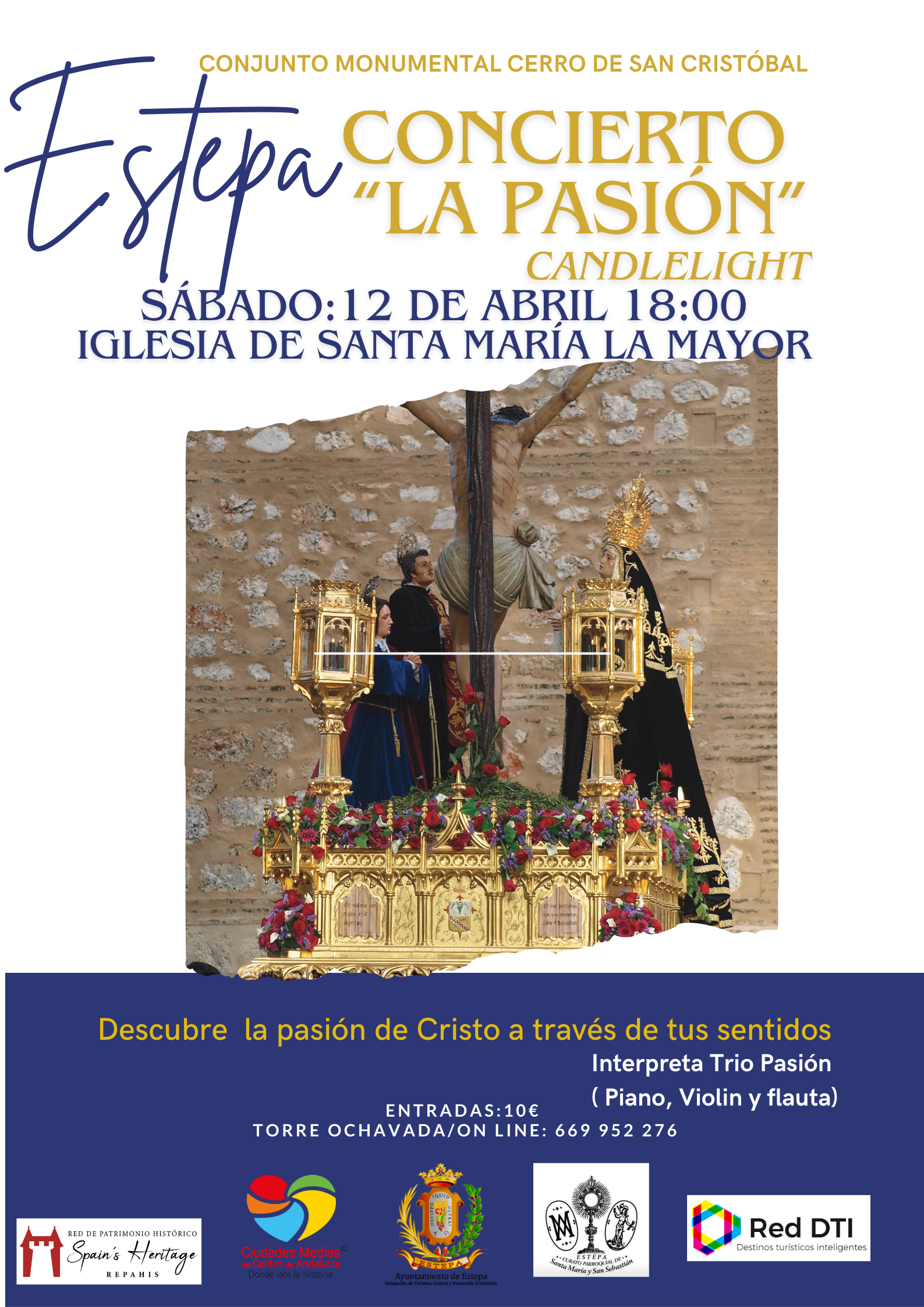 Descubre la Pasión de Cristo a través de la música y los aromas de ésta celebración religiosa que desborda todos los sentidos. En un lugar único, la iglesia de Santa María a la luz de las velas, descubre la pasión a través de todos tus sentidos . Un Concierto íntimo, a través de las notas musicales del piano, violín y flauta , recordarás y sentirás la pasión de Cristo a través de tus sentidos y recuerdos.