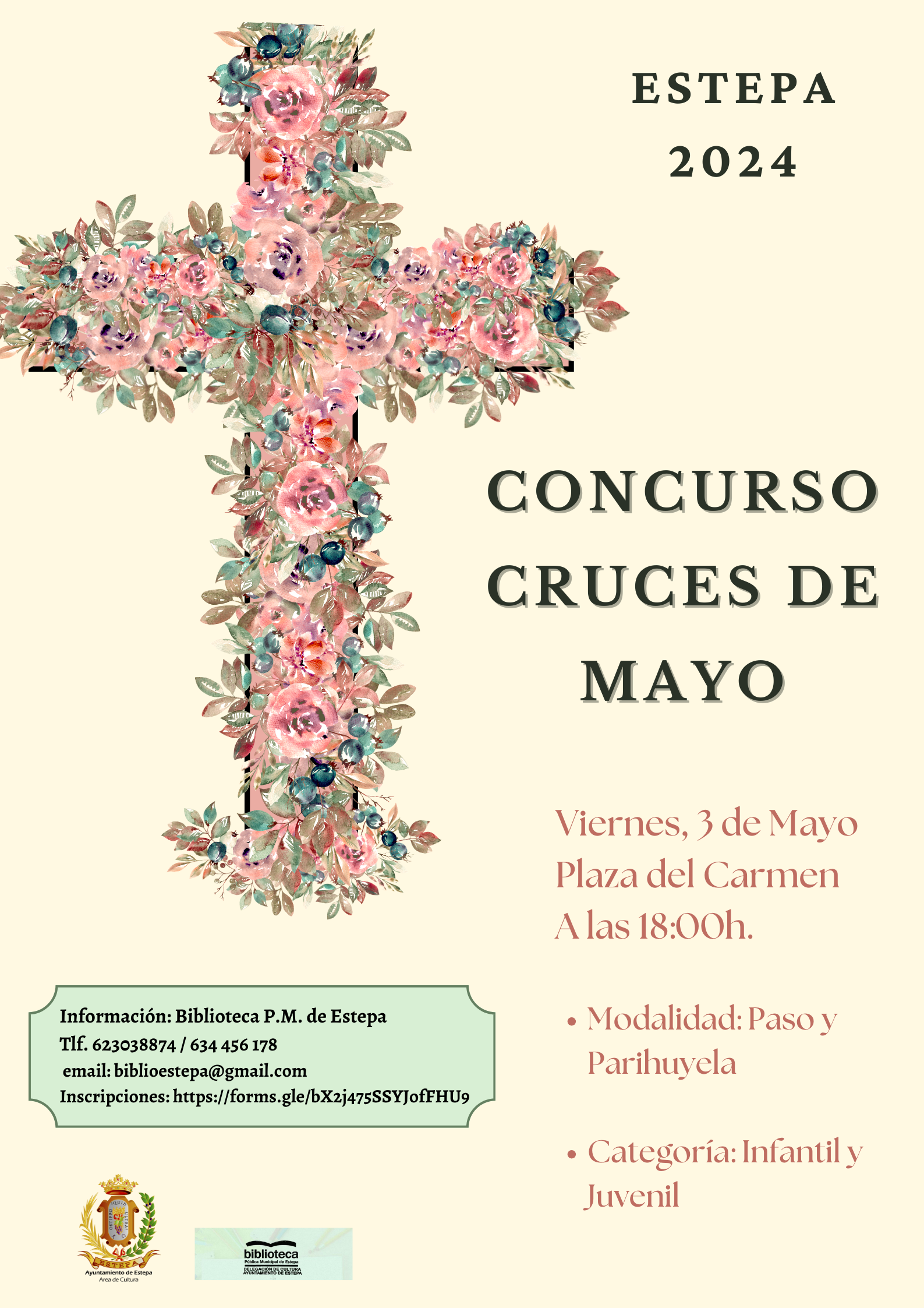 Como todos los años, se acerca el mes de mayo y desde la Delegación de Turismo, Cultura y Desarrollo Económico del Ilmo. Ayuntamiento de Estepa, estamos organizando el Concurso Cruces de Mayo 2024, para celebrar la fiesta “El Día de la Santa Cruz”, en la plaza del Carmen de nuestra ciudad.