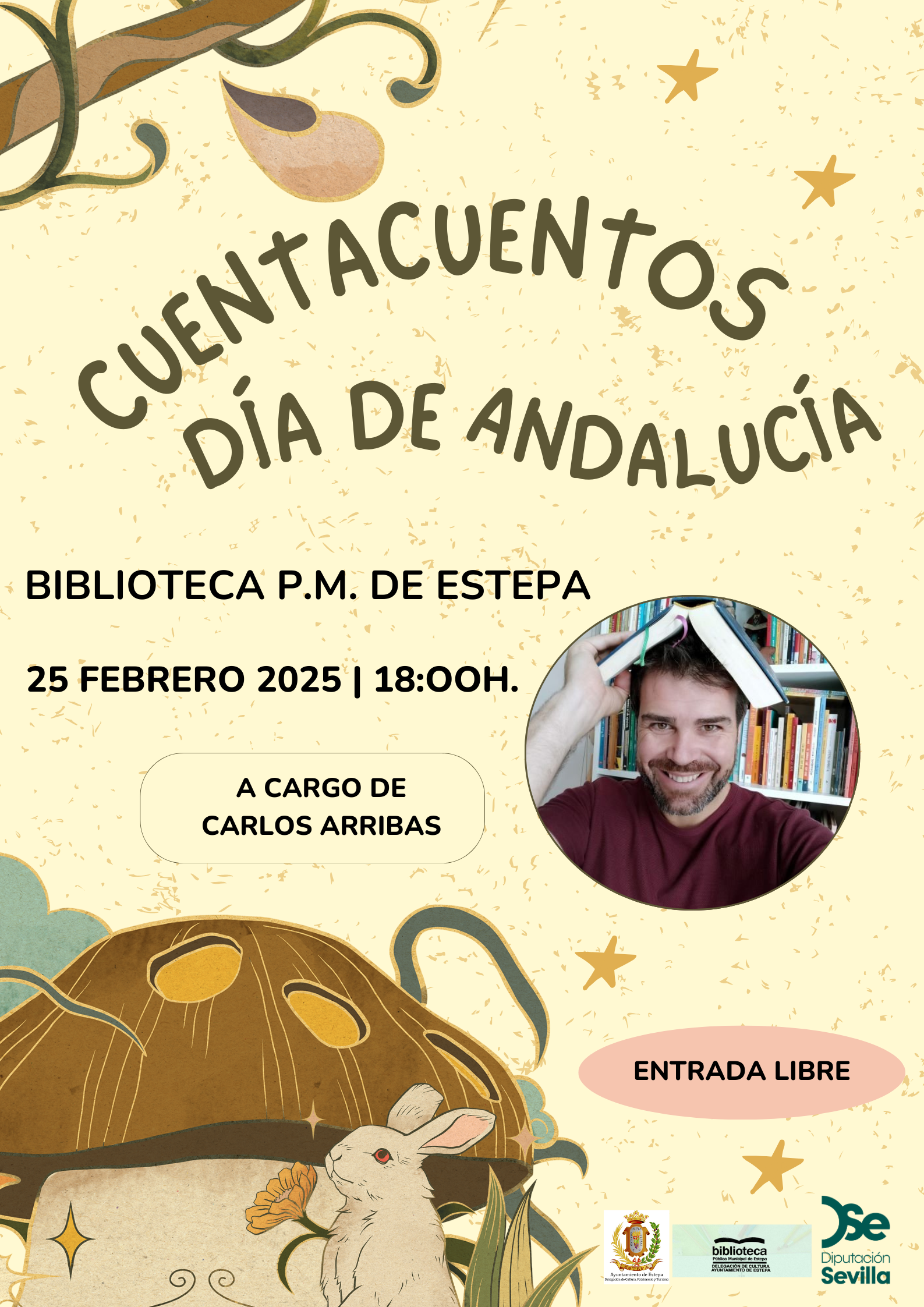 Desde la Delegación de Cultura – Biblioteca del Ayuntamiento de Estepa, con motivo del Día de Andalucía, hemos organizado en nuestra Biblioteca, una actividad de animación a la lectura infantil Cuentacuentos “Día de Andalucía”, a cargo de Carlos Arribas, donde nos contará cuentos y relatos de tradición oral y popular de nuestra comunidad, incluyendo también álbumes ilustrados de autores y autoras de Andalucía.