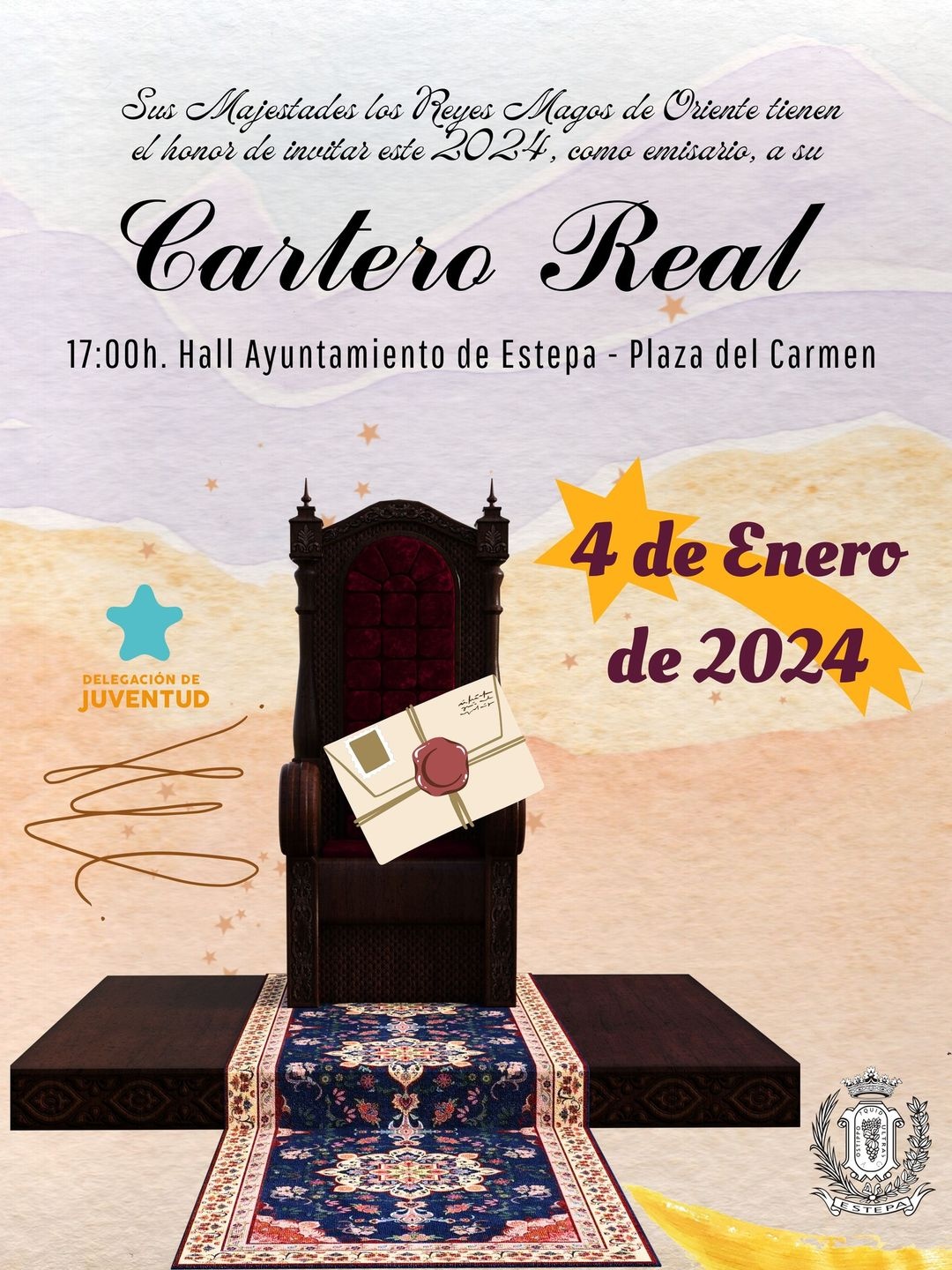 EL mensajero de SSMM Los Reyes Magos de Oriente, y Cartero Real, se encuentra desde las cinco de la tarde de hoy jueves 4 de enero, recogiendo la carta de aquellos niños y niñas de Estepa que aún no han enviado sus peticiones.