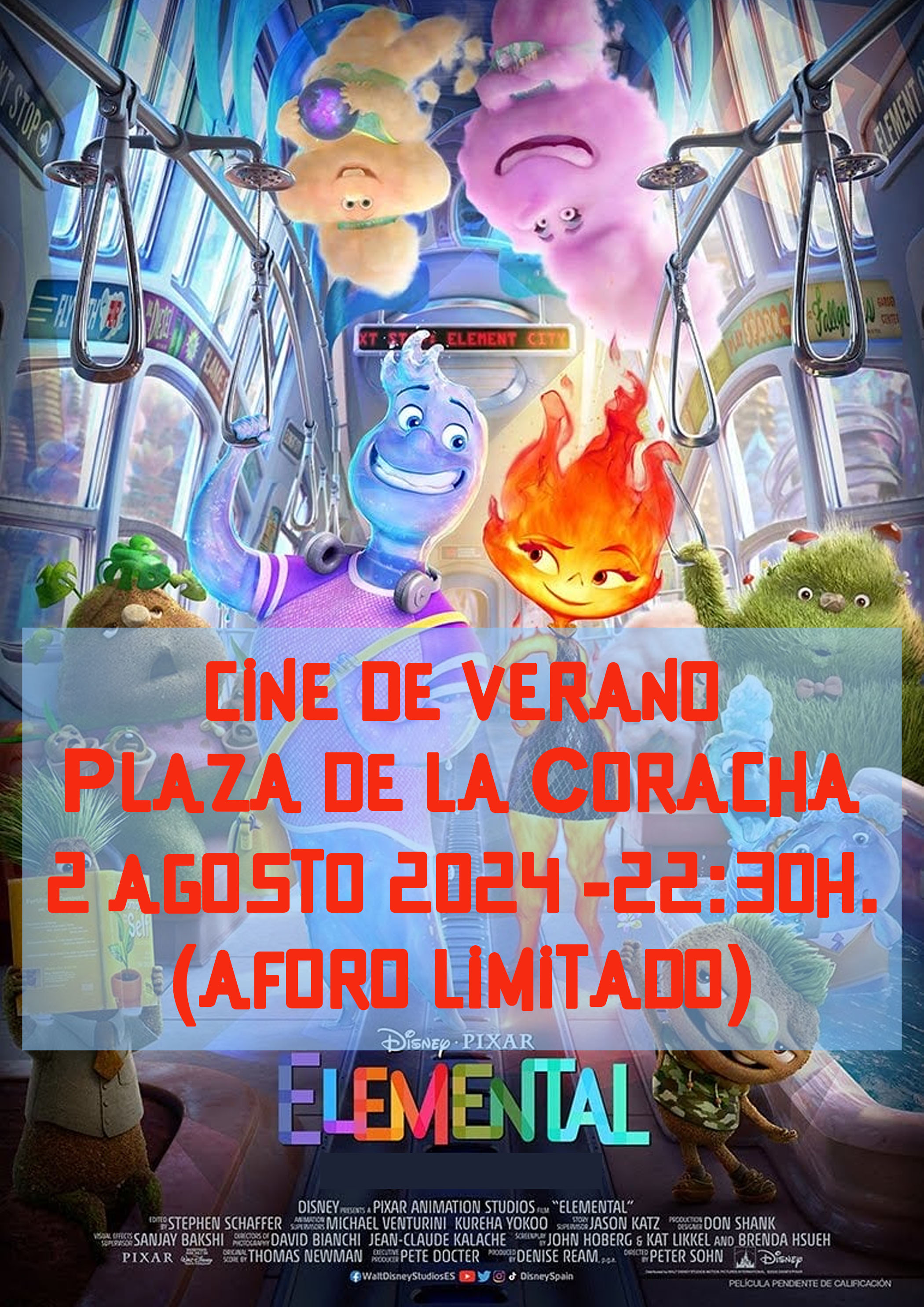 Como en años anteriores, la Delegación de Cultura del Ayuntamiento de Estepa cuenta en su programación del Verano Cultural con una noche de cine. Os traemos la película “Elemental”, de Disney y Pixar, es un largometraje original ambientado en Ciudad Elemento, donde conviven habitantes de fuego, agua, tierra y aire. La protagonista de la historia es Candela, una joven fuerte, ingeniosa y con carácter, cuya amistad con un chico divertido, sensible y tranquilo, llamado Nilo, cambia su perspectiva sobre el mundo en el que viven.