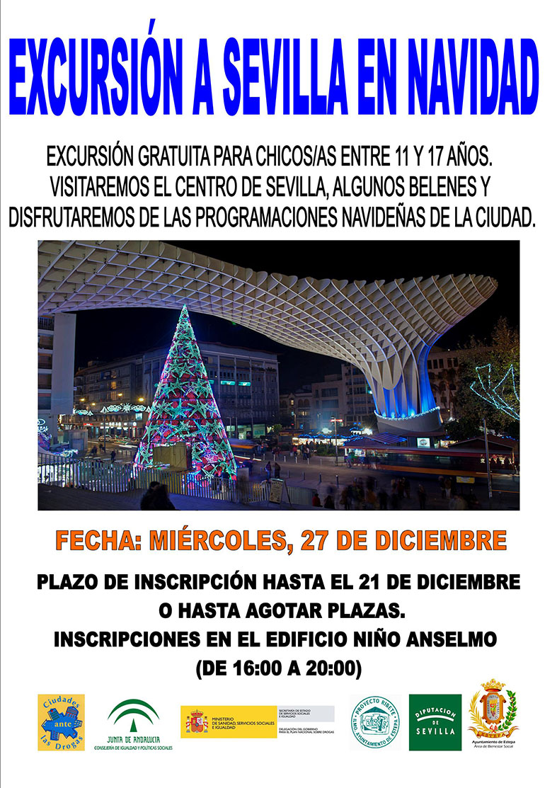 Excursión organizada por Ribete y Ciudades ante las Drogas para el próximo día 27 de Diciembre. Dirigida para chicos y chicas entre 11 y 17 años. El coste es gratuito y la salida es a las 11:00 del Edificio Niño Anselmo.