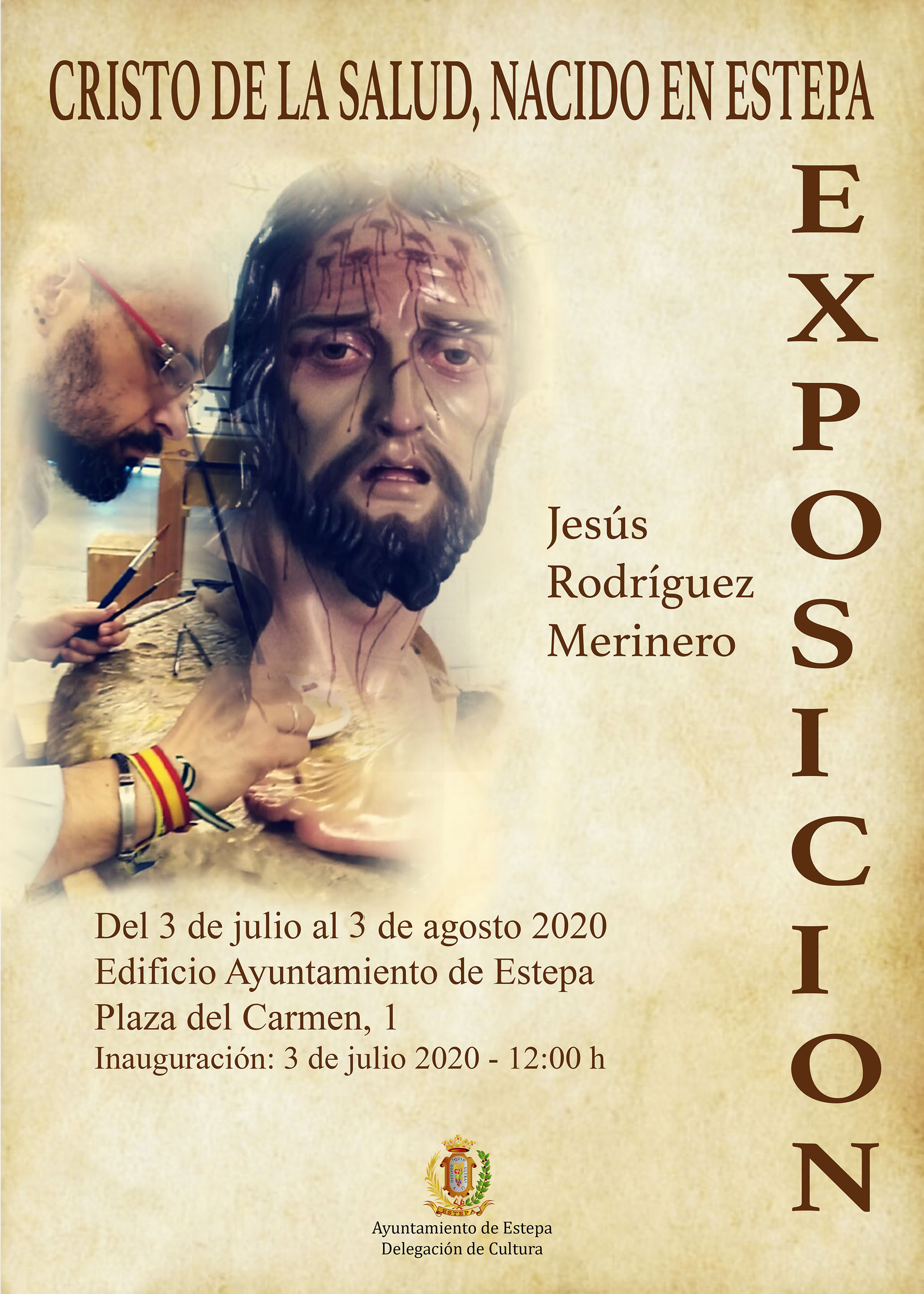 Jesús Rodríguez Merinero, (Estepa, 1980) imaginero estepeño con más de 25 años de experiencia en su trabajo expone su última obra: El Cristo de la Salud. La talla del Cristo se pondrá contemplar en el hall del Ayuntamiento desde el 3 de julio al 3 de agosto.