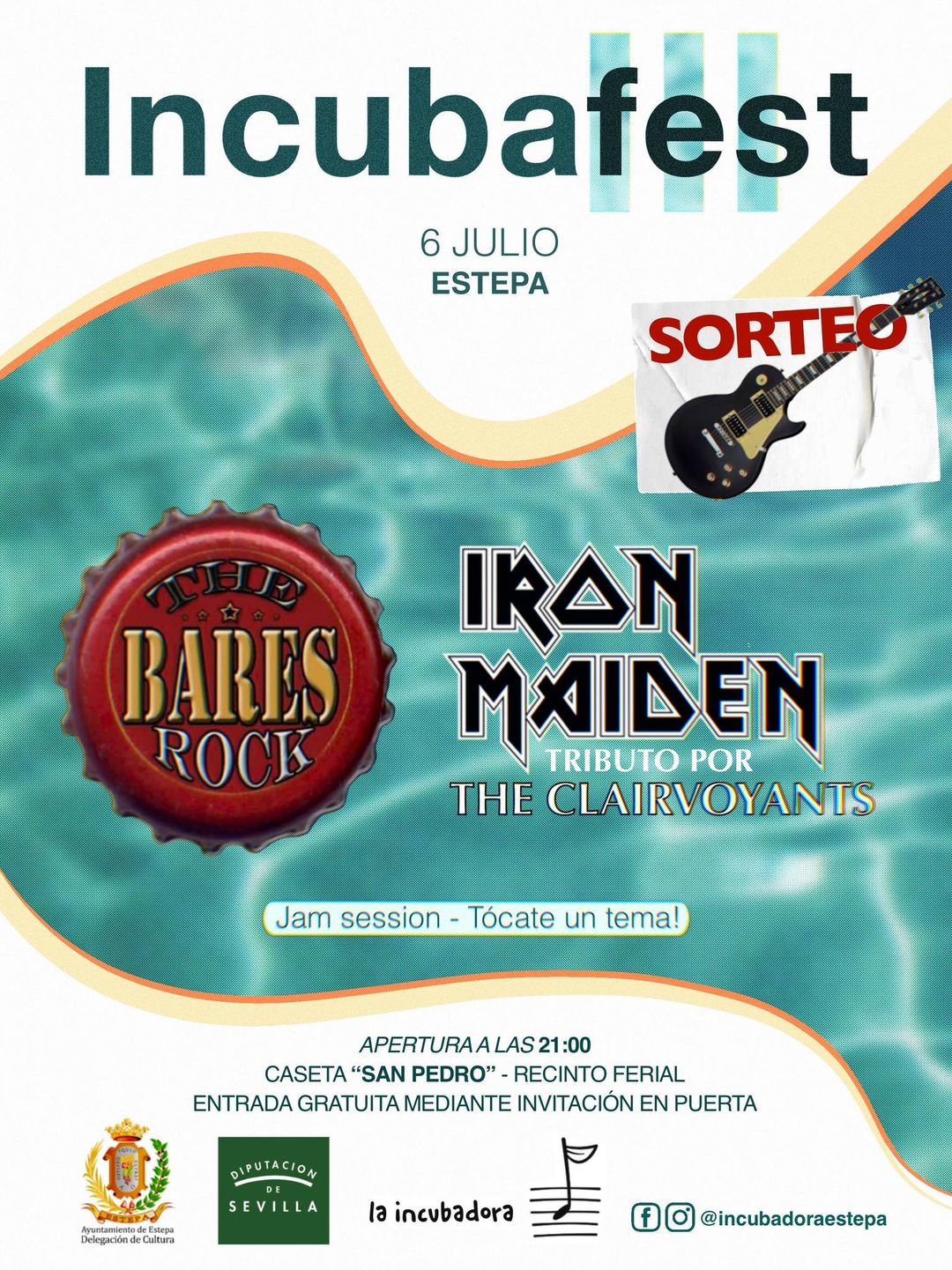 La Asociación Cultural La Incubadora, sigue contribuyendo altruistamente al desarrollo musical de la comarca de Estepa, presentando el próximo 6 de Julio el III Incubafest, donde tienen cabida numerosos artistas locales. Entrada gratuita mediante invitación en puerta, en la caseta de San Pedro (recinto ferial) el 6 de julio de 2024 a las 21:00.