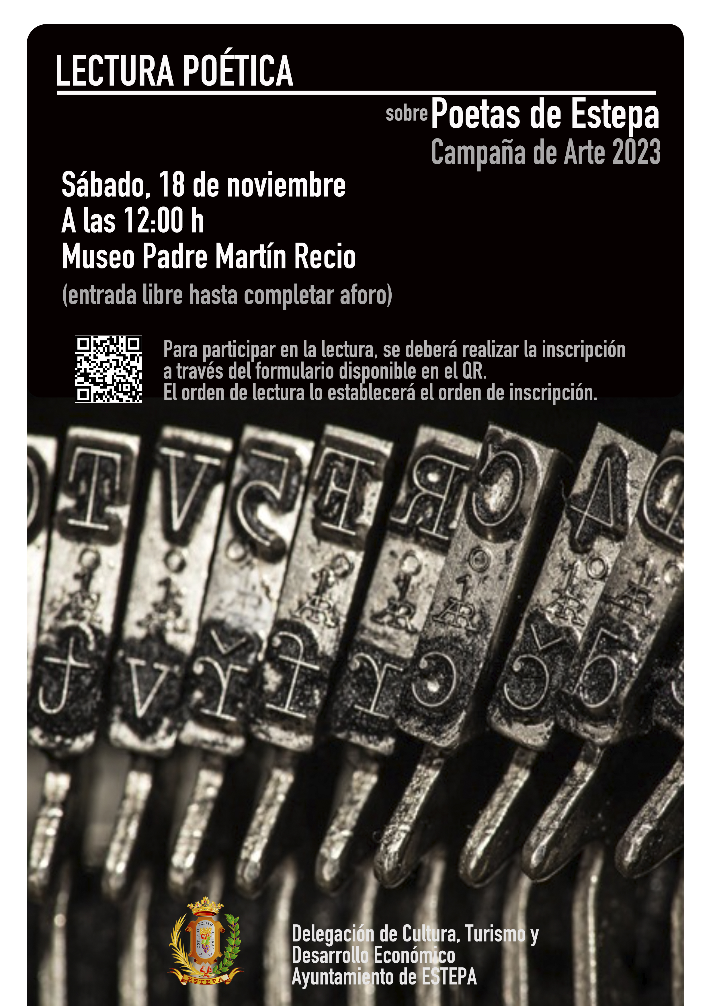 De la mano de la Delegación de Cultura, Turismo y Desarrollo Económico, os traemos una ocasión única en la que leer y escuchar los versos de cuna estepeña, en un contexto creativo, cultural y artístico incomparable.